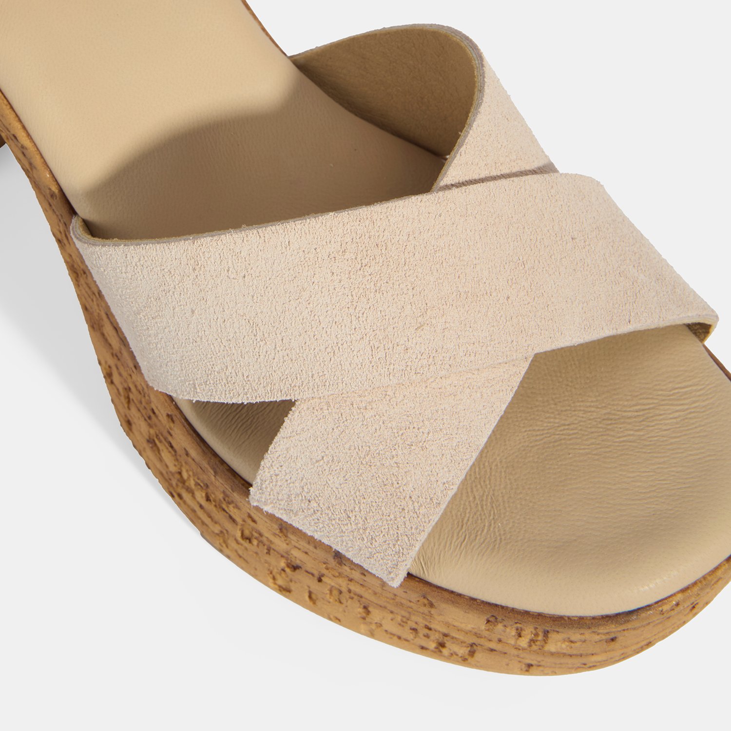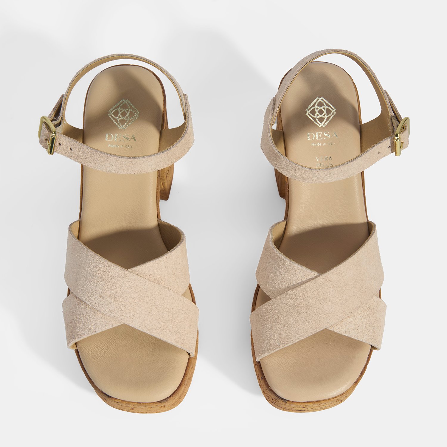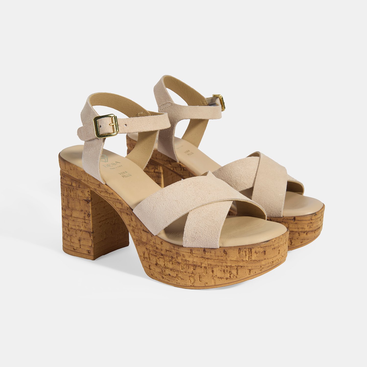 Kadın Bej Ayarlanabilir Tokalı Topuklu Süet Sandalet
