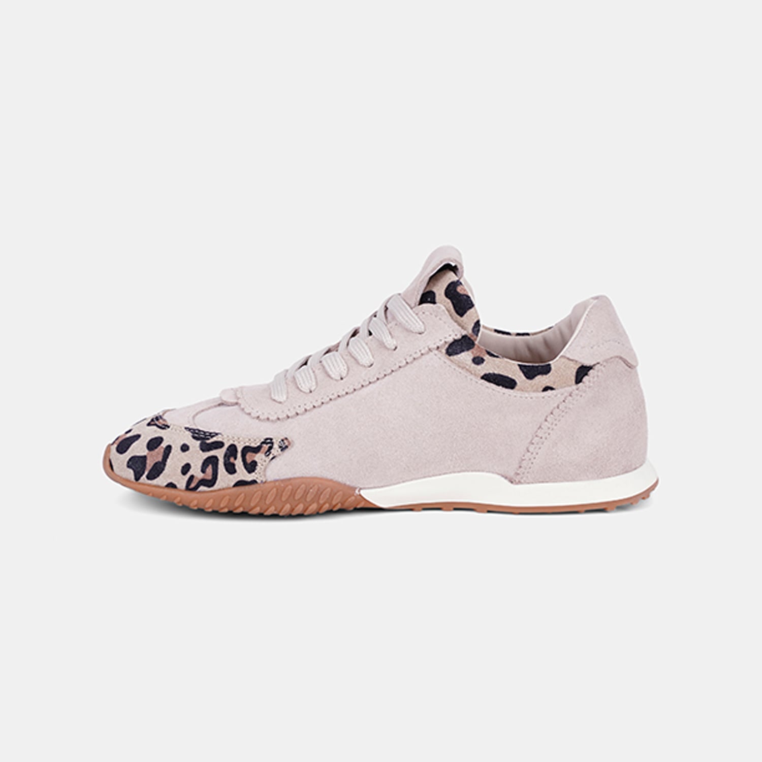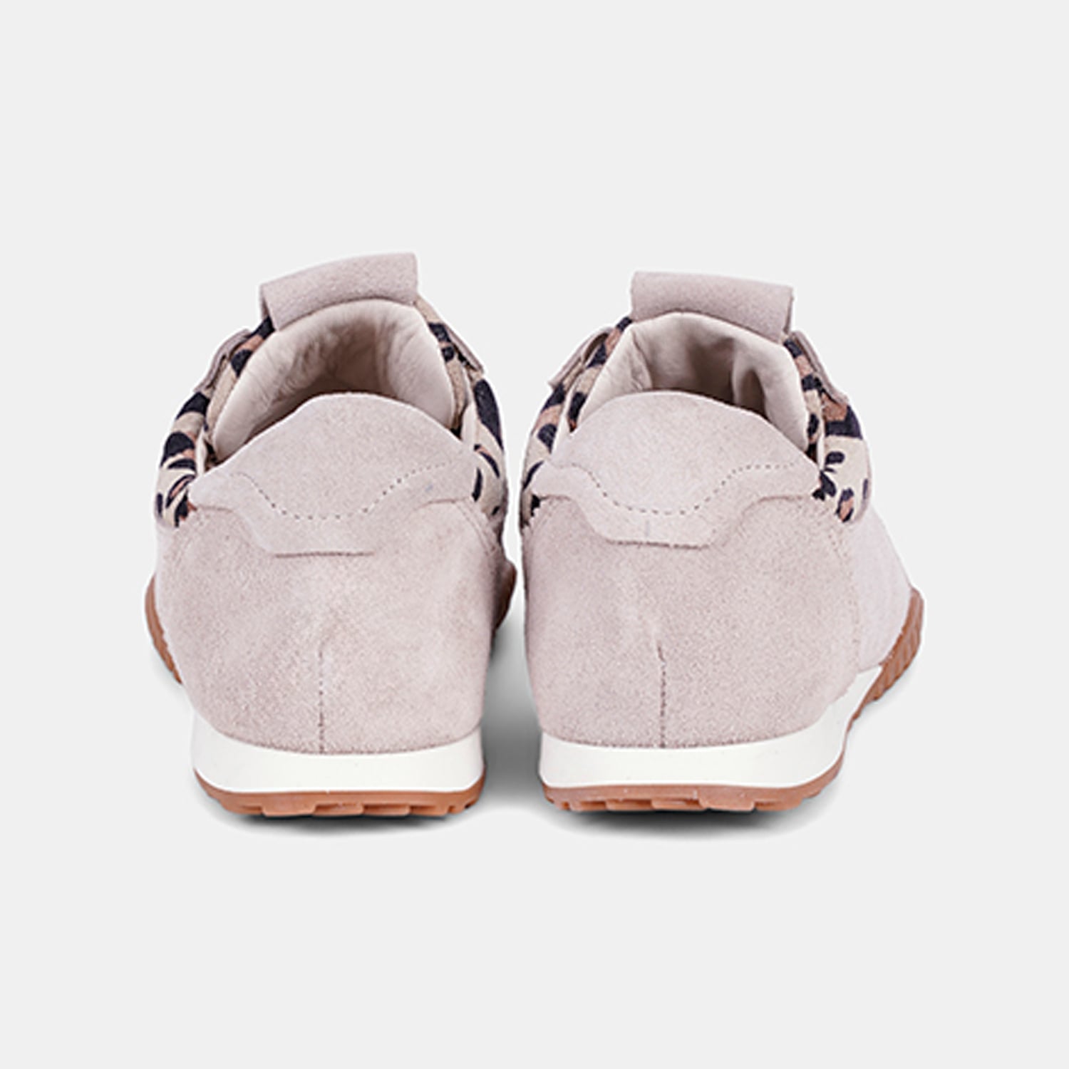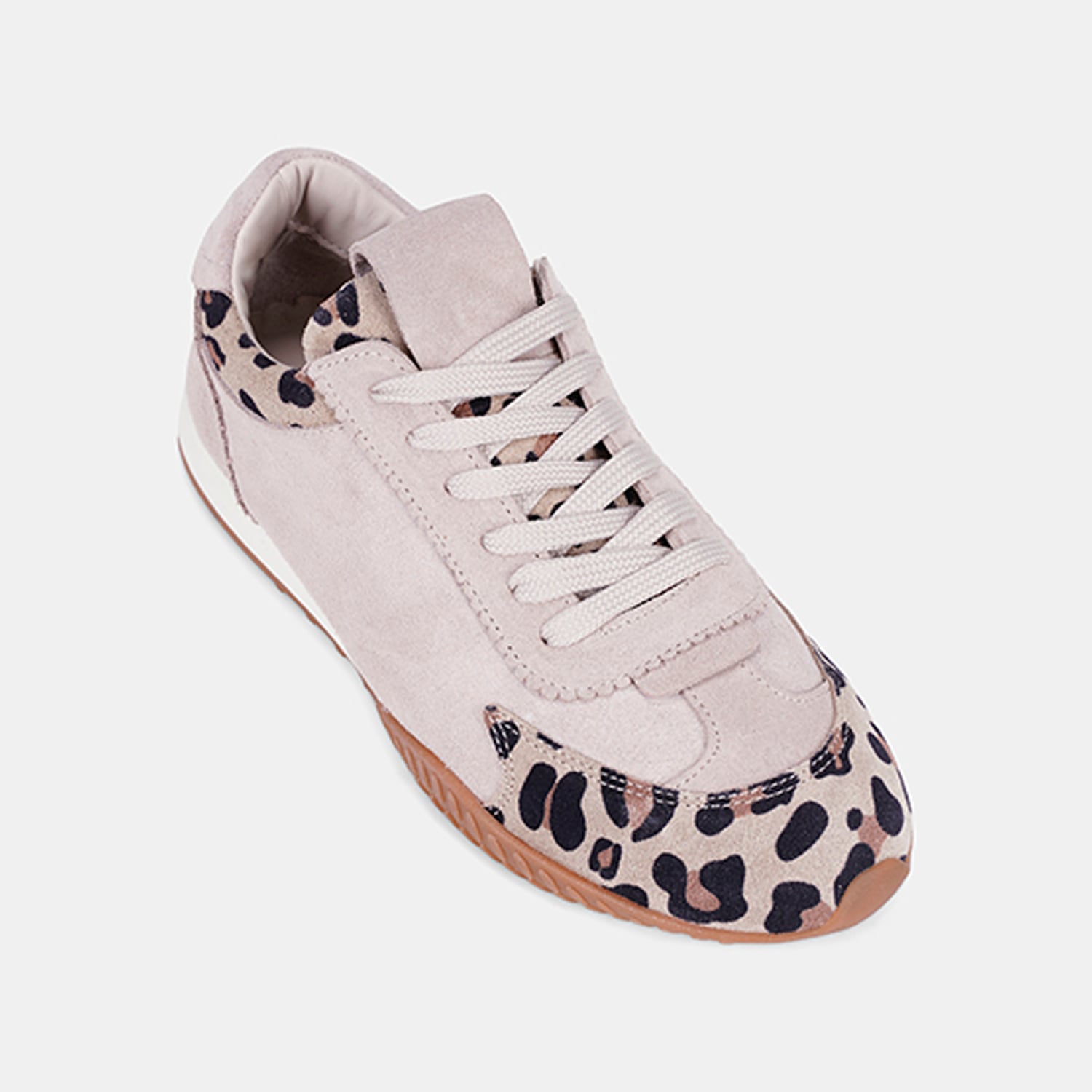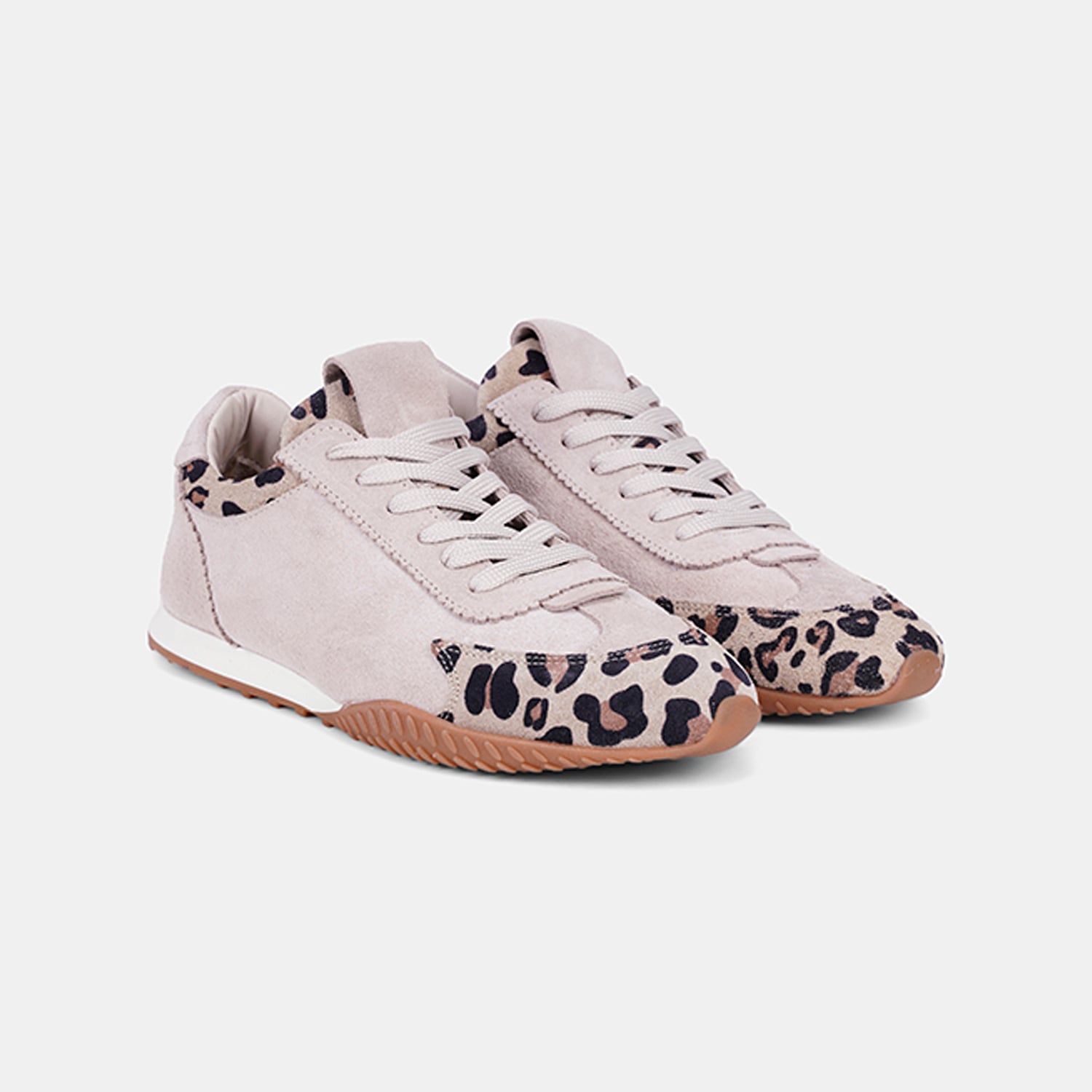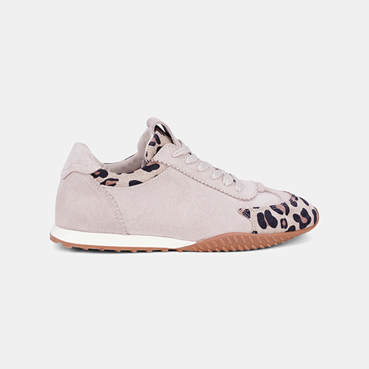 Kadın süet deri spor ayakkabı, leopar desen detayıyla hareket kazanan tasarımı sayesinde günlük şehir stiline enerjik bir dokunuş ekler.