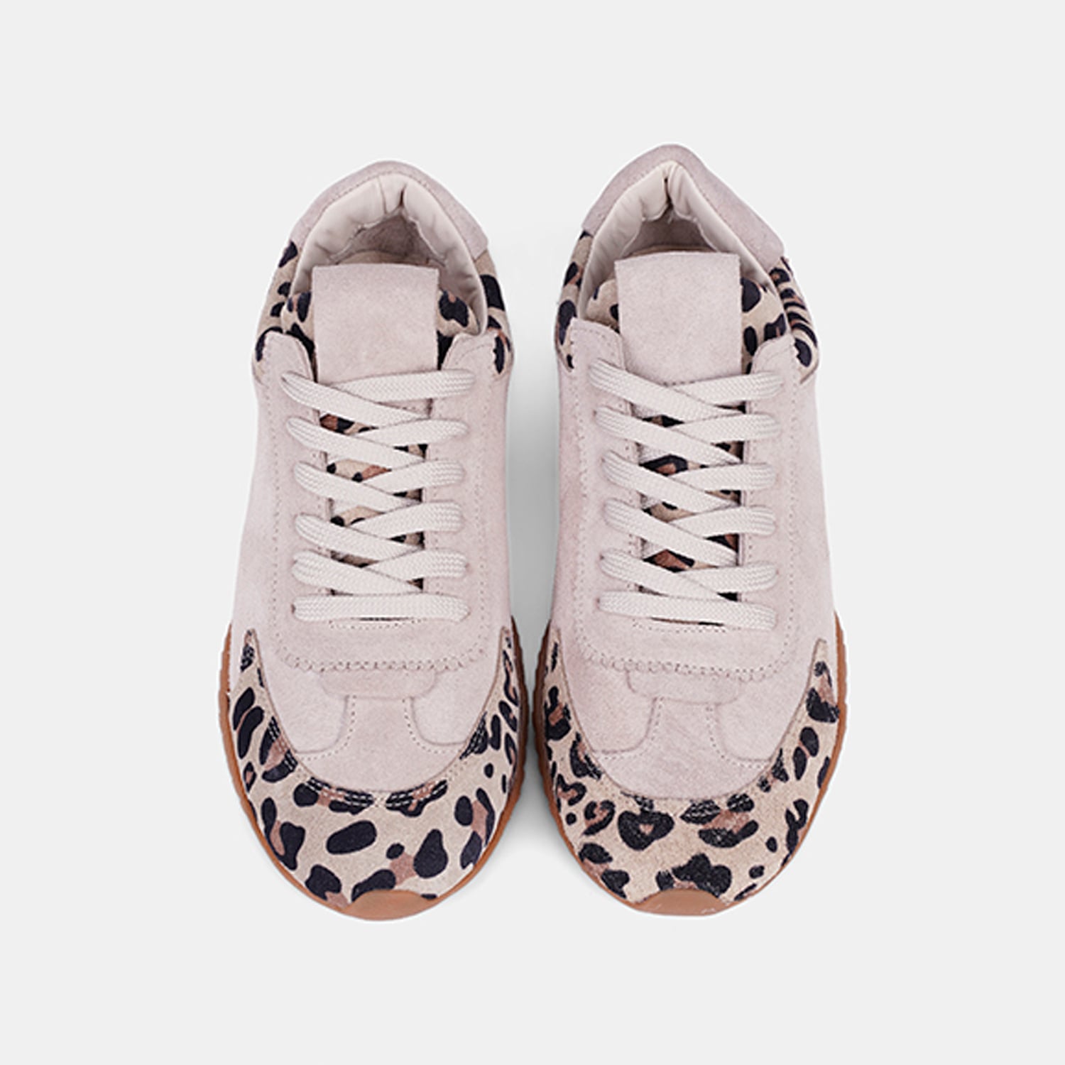 Kadın Bej Bağcıklı Leopar Desenli Süet Spor Ayakkabı