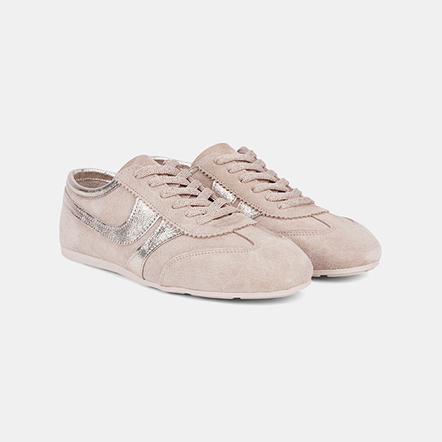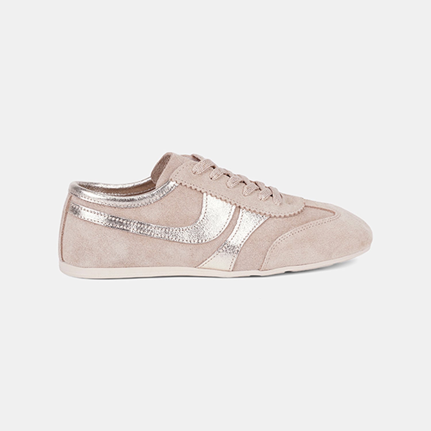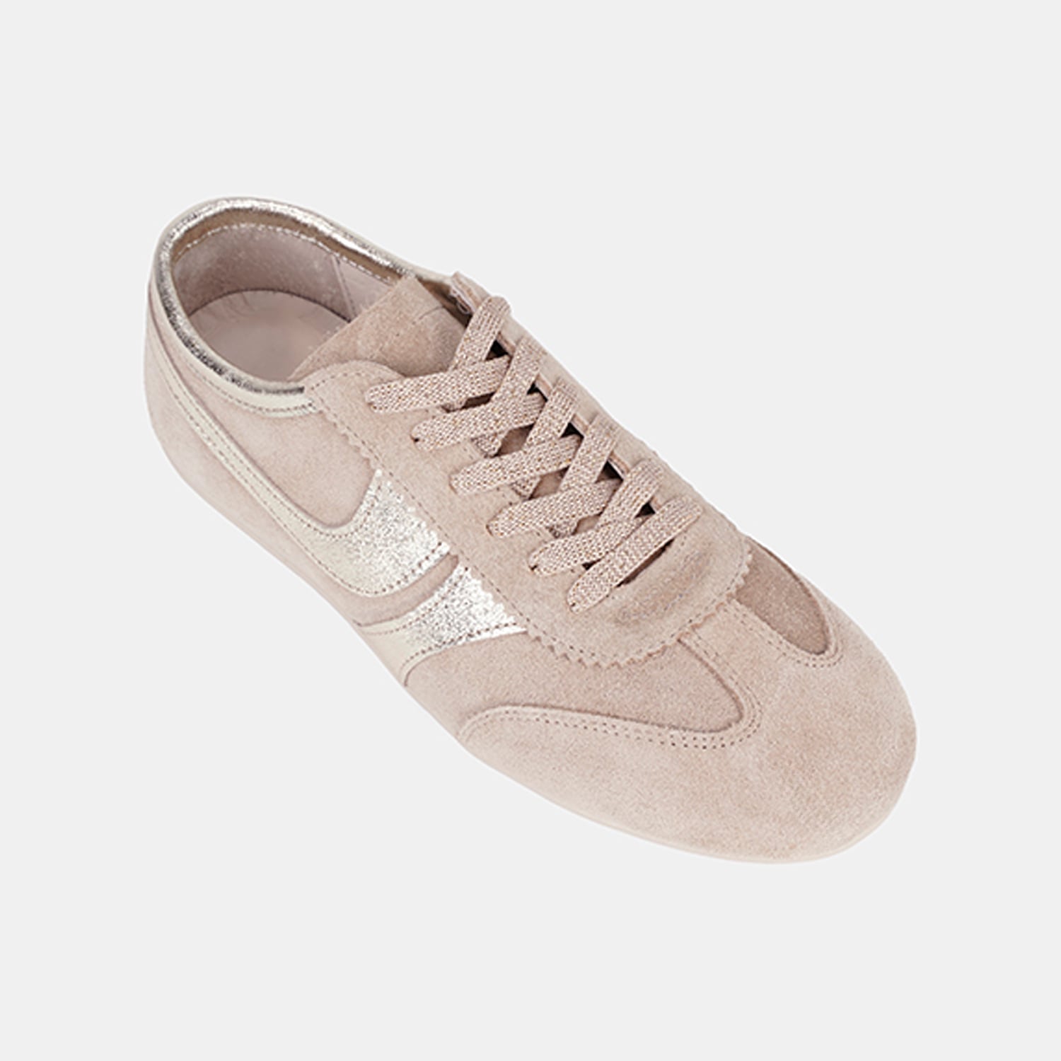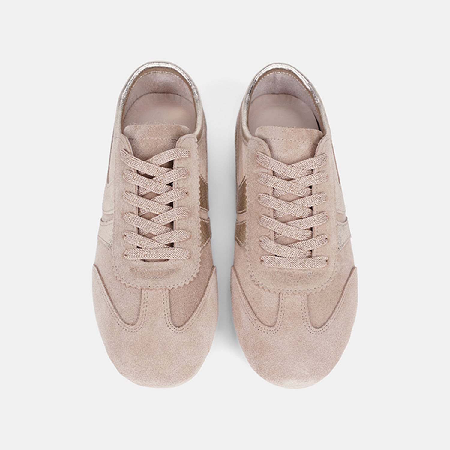 Kadın Bej Bağcıklı Metal Şerit Detaylı Süet Spor Ayakkabı