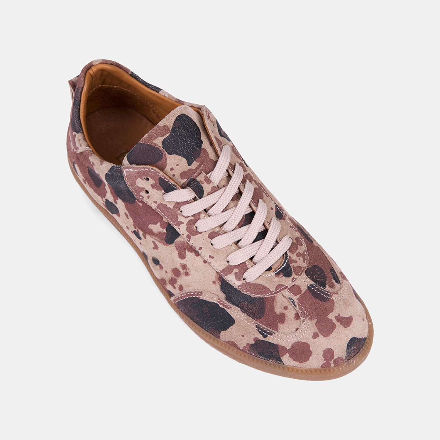 Baskılı süet yüzeyiyle öne çıkan kadın spor ayakkabı, modern ve dinamik tasarımıyla günlük stile enerjik bir dokunuş kazandırır.