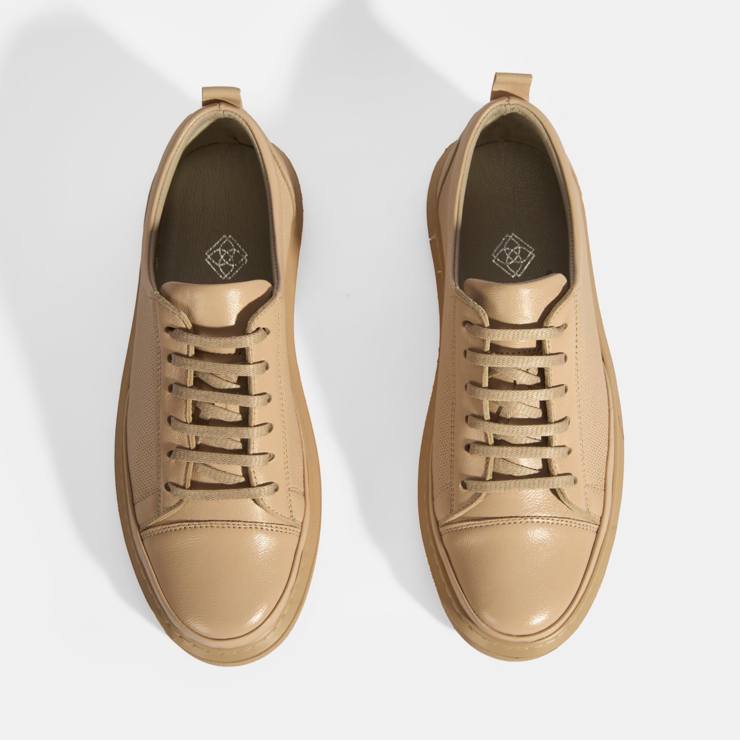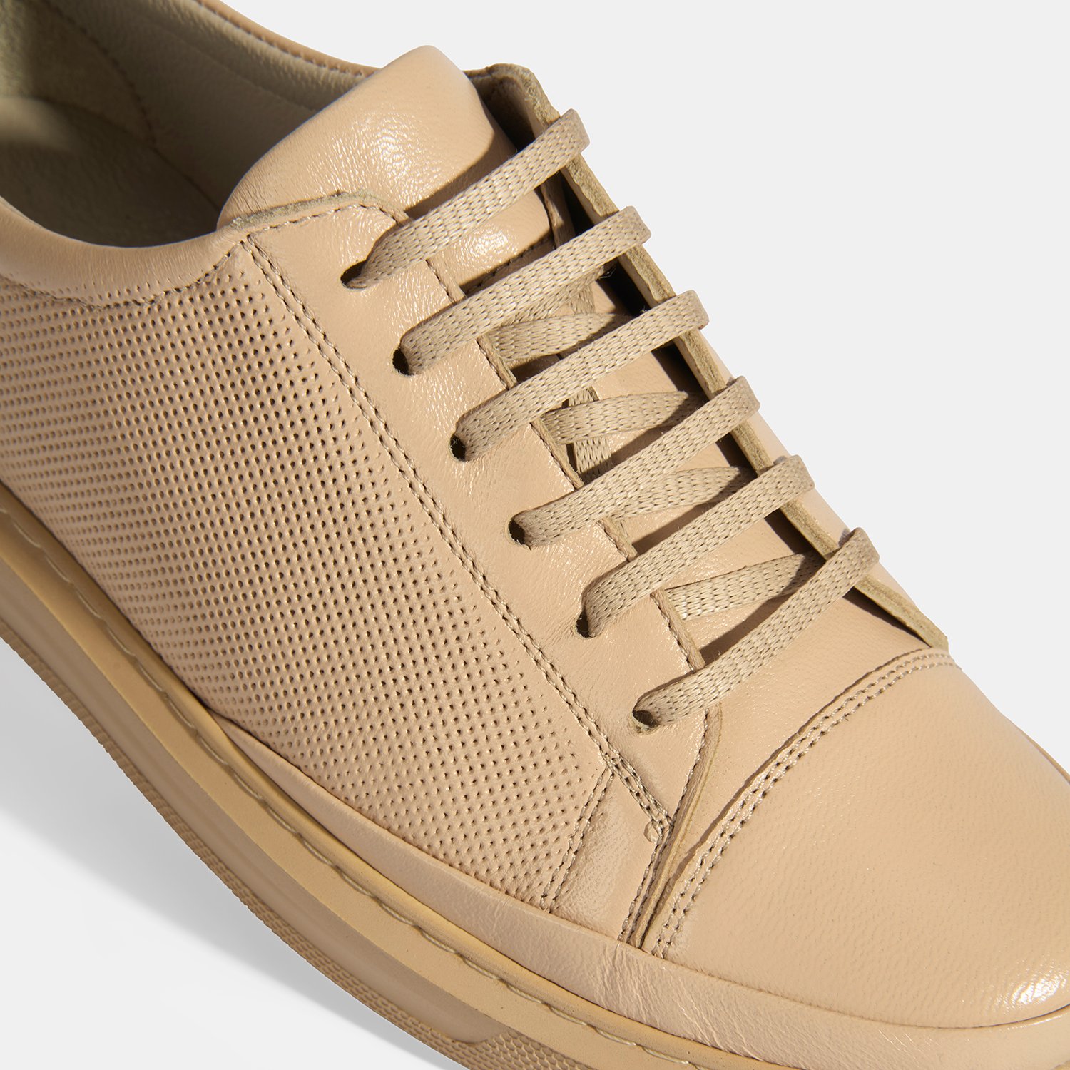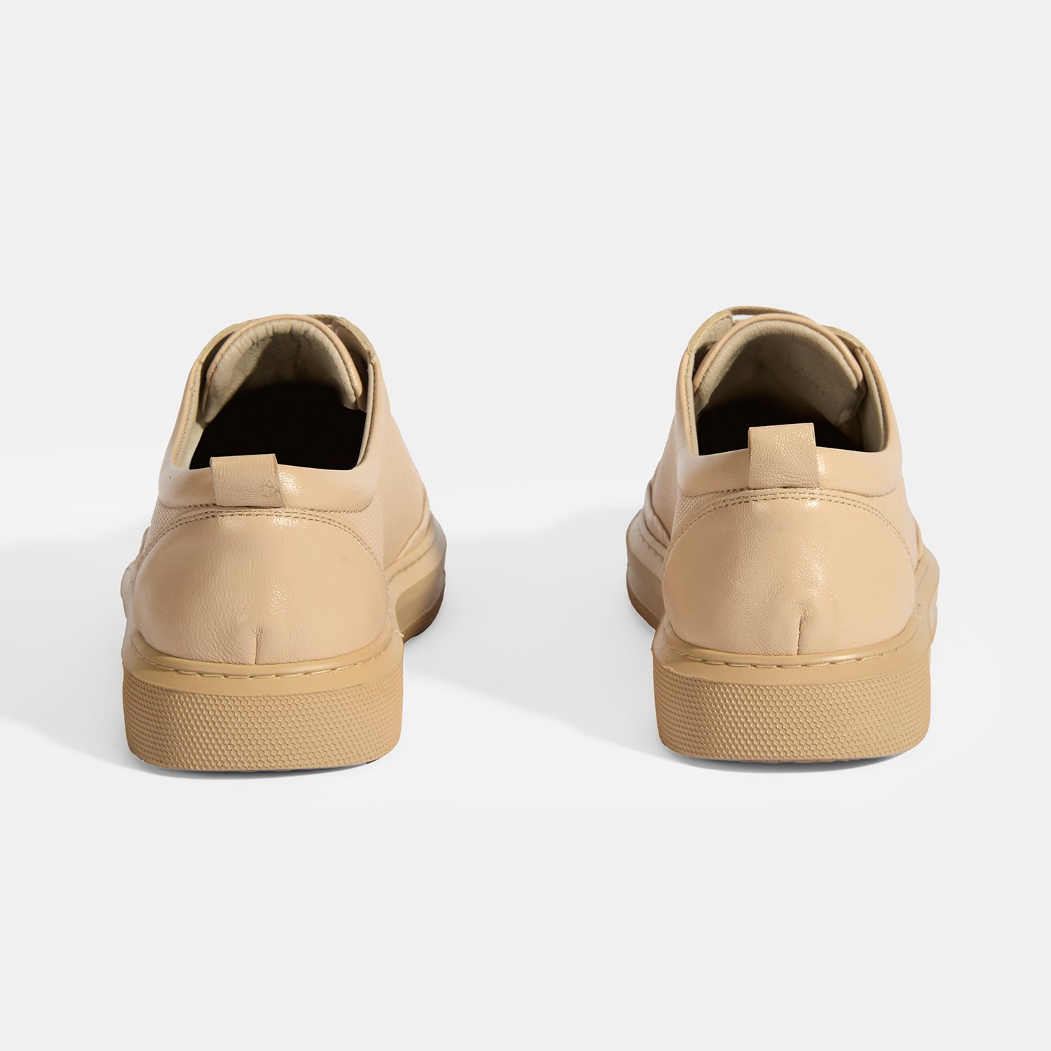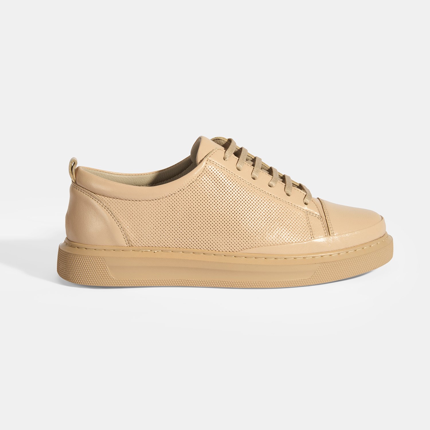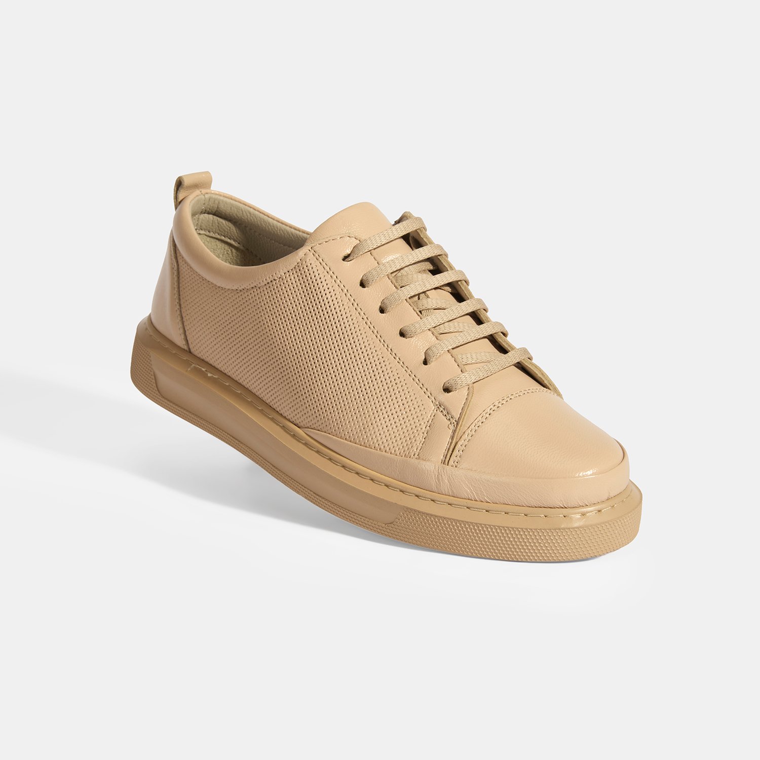 Kadın Bej Deri Bağcıklı Spor Ayakkabı