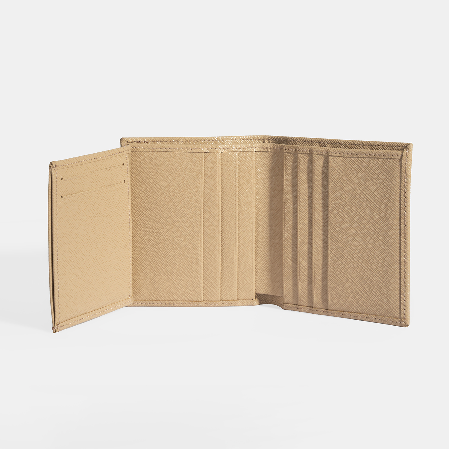 10 kredi kartı bölmesi, ehliyet ve kartvizit için fileli bölme ve kağıt para bölmesi bulunan şık kadın deri cüzdanı.