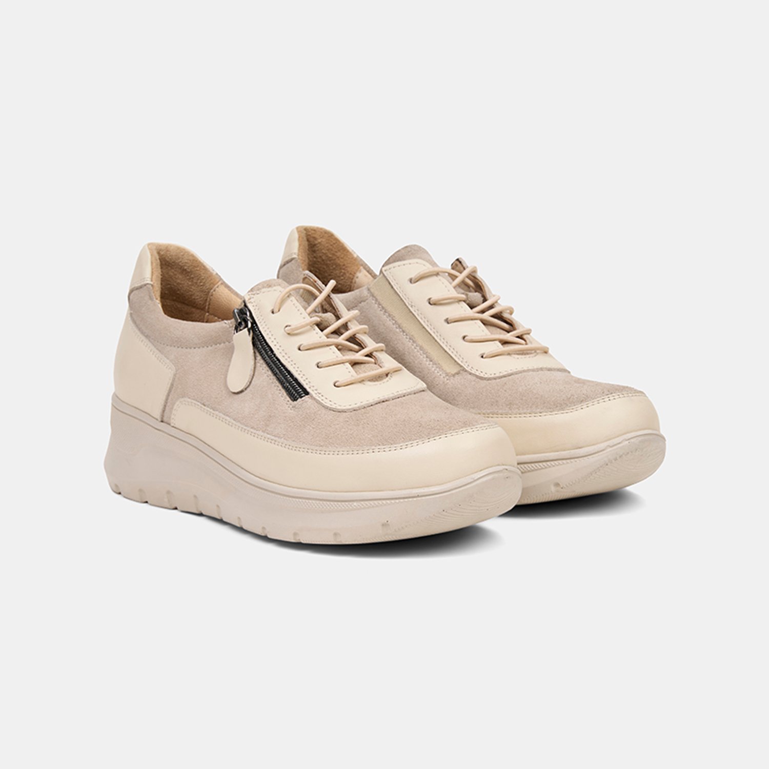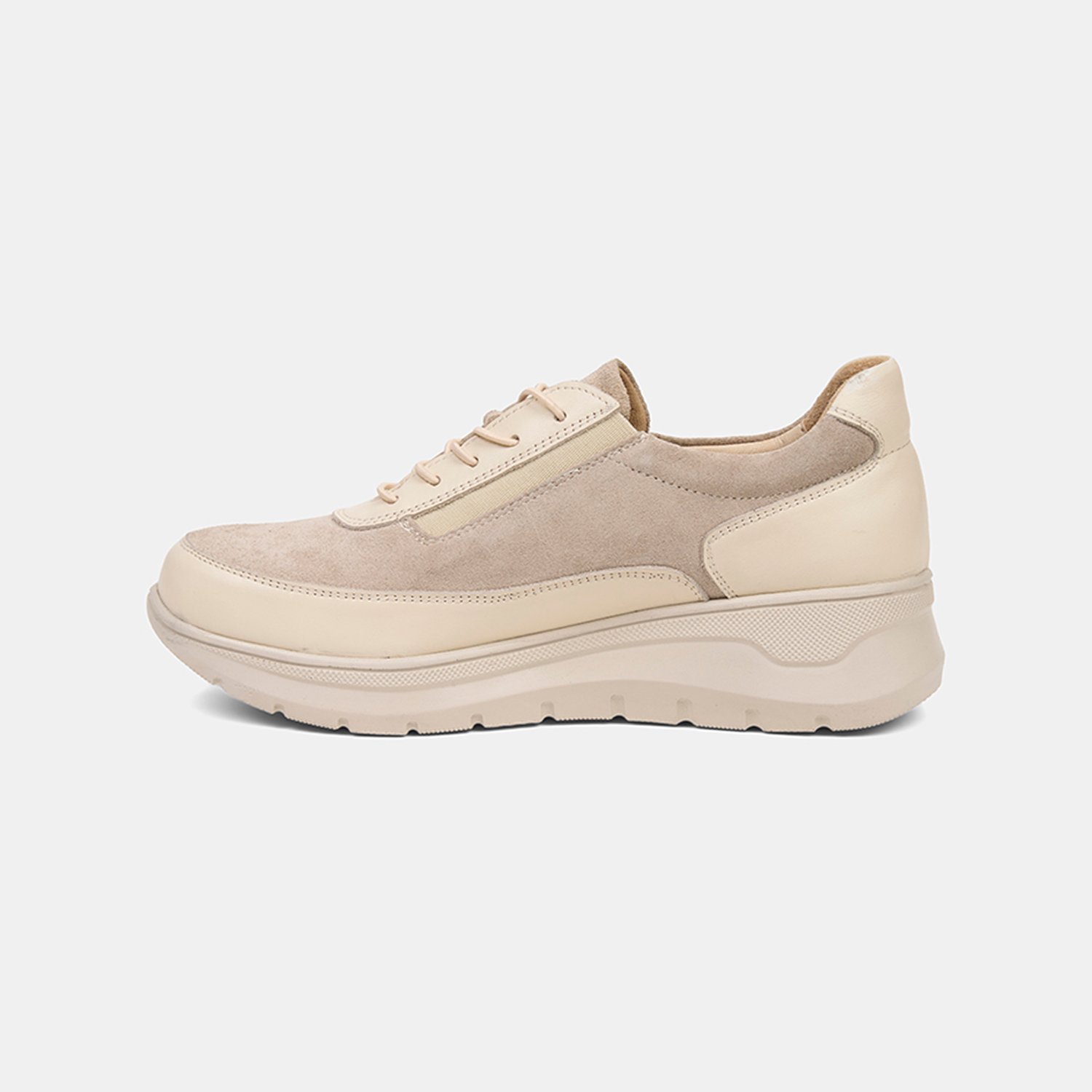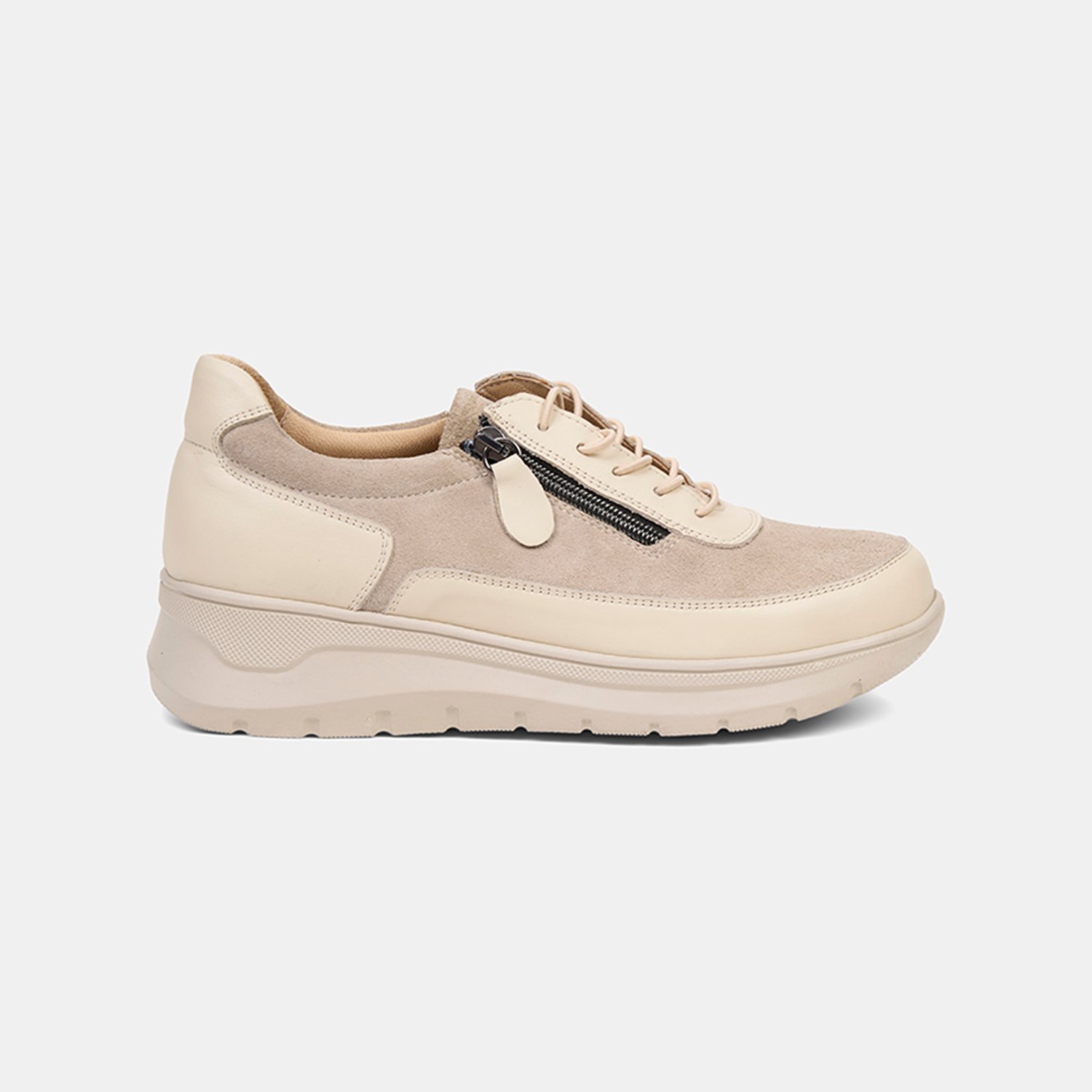 Kadın Bej DesaComfort Fermuarlı Deri Spor Ayakkabı
