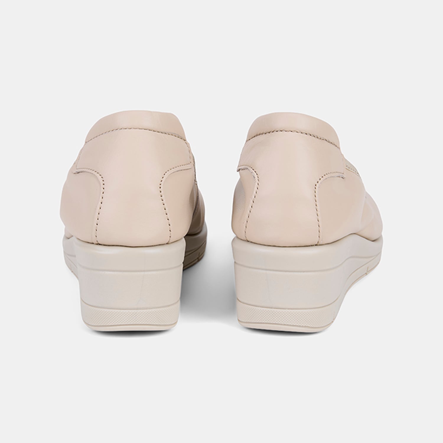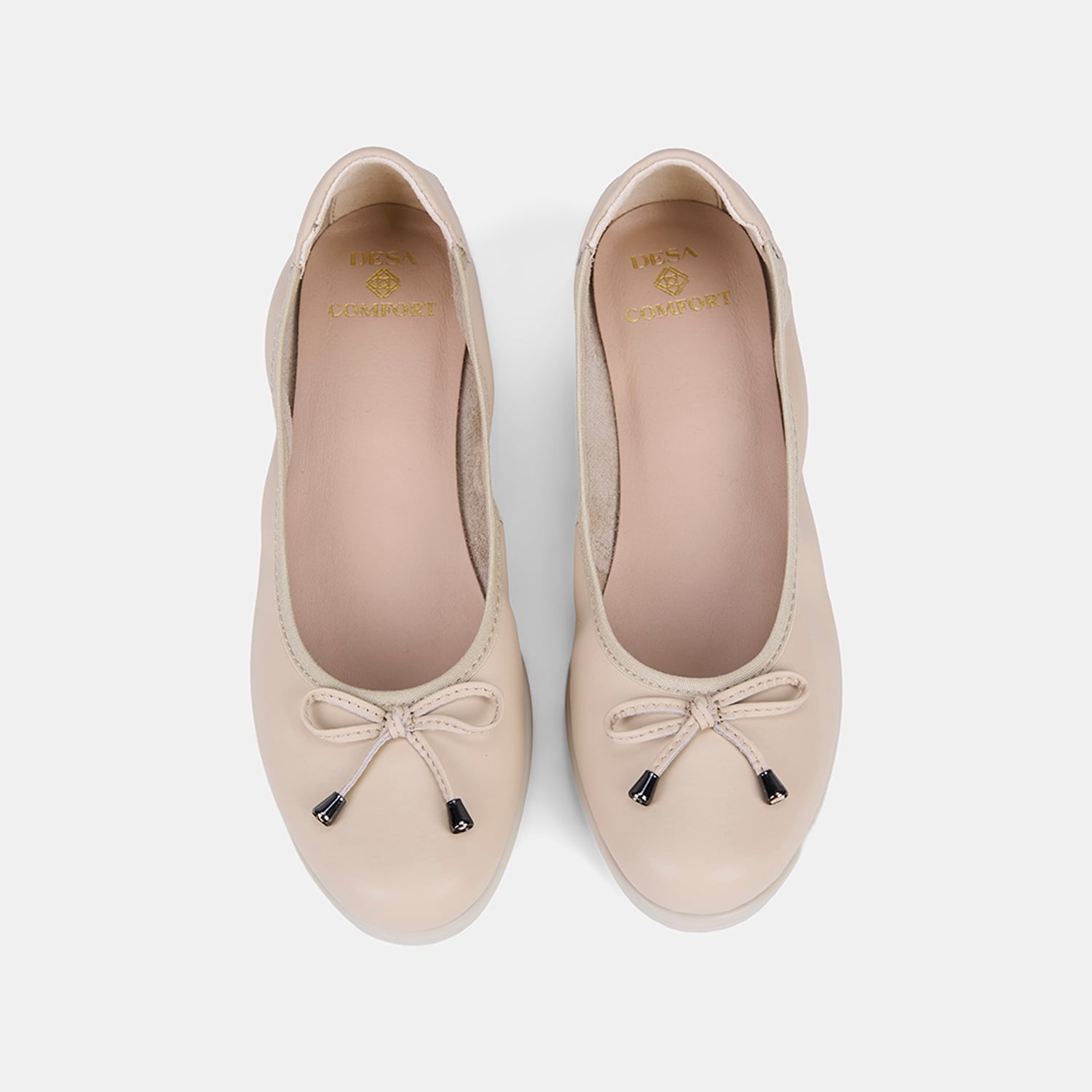 Kadın Bej DesaComfort Fiyonklu Dolgu Topuklu Deri Babet