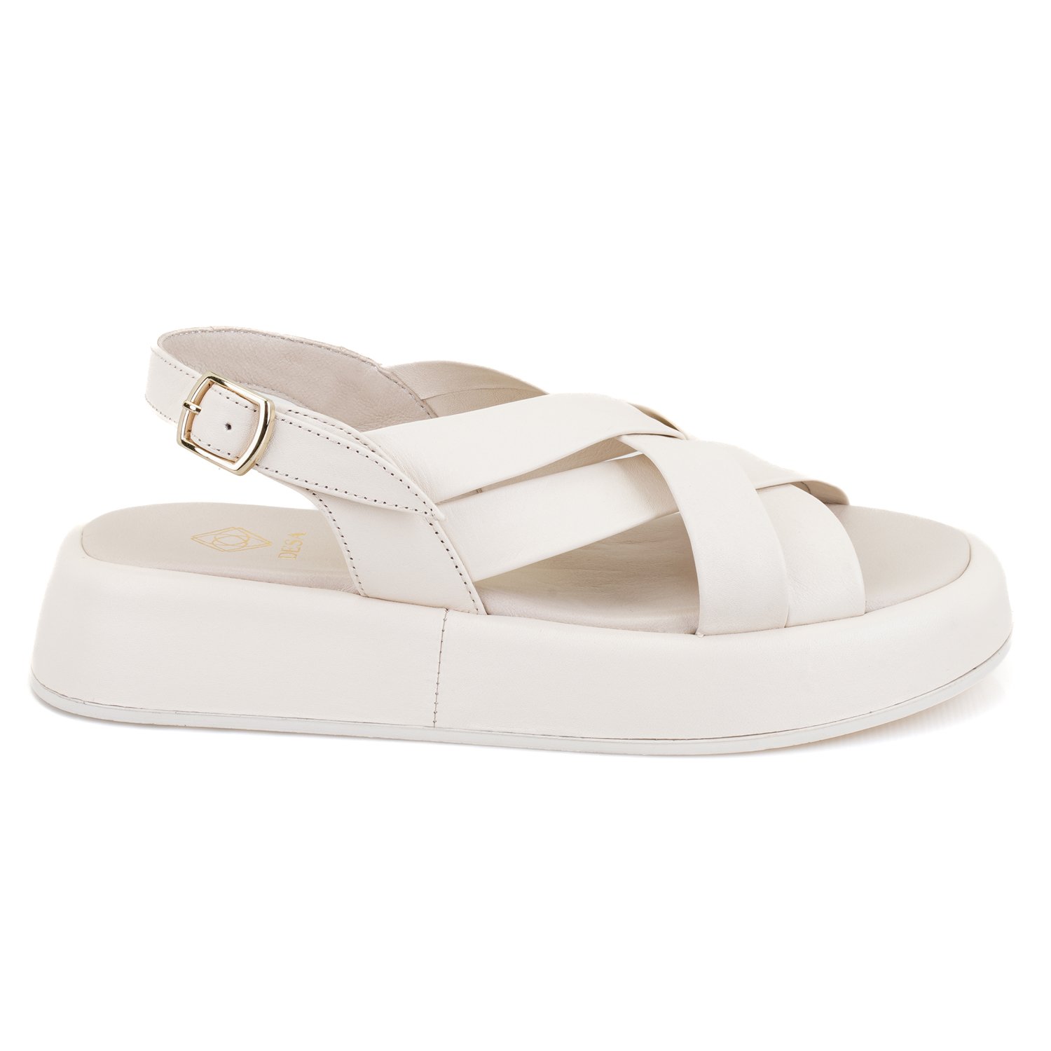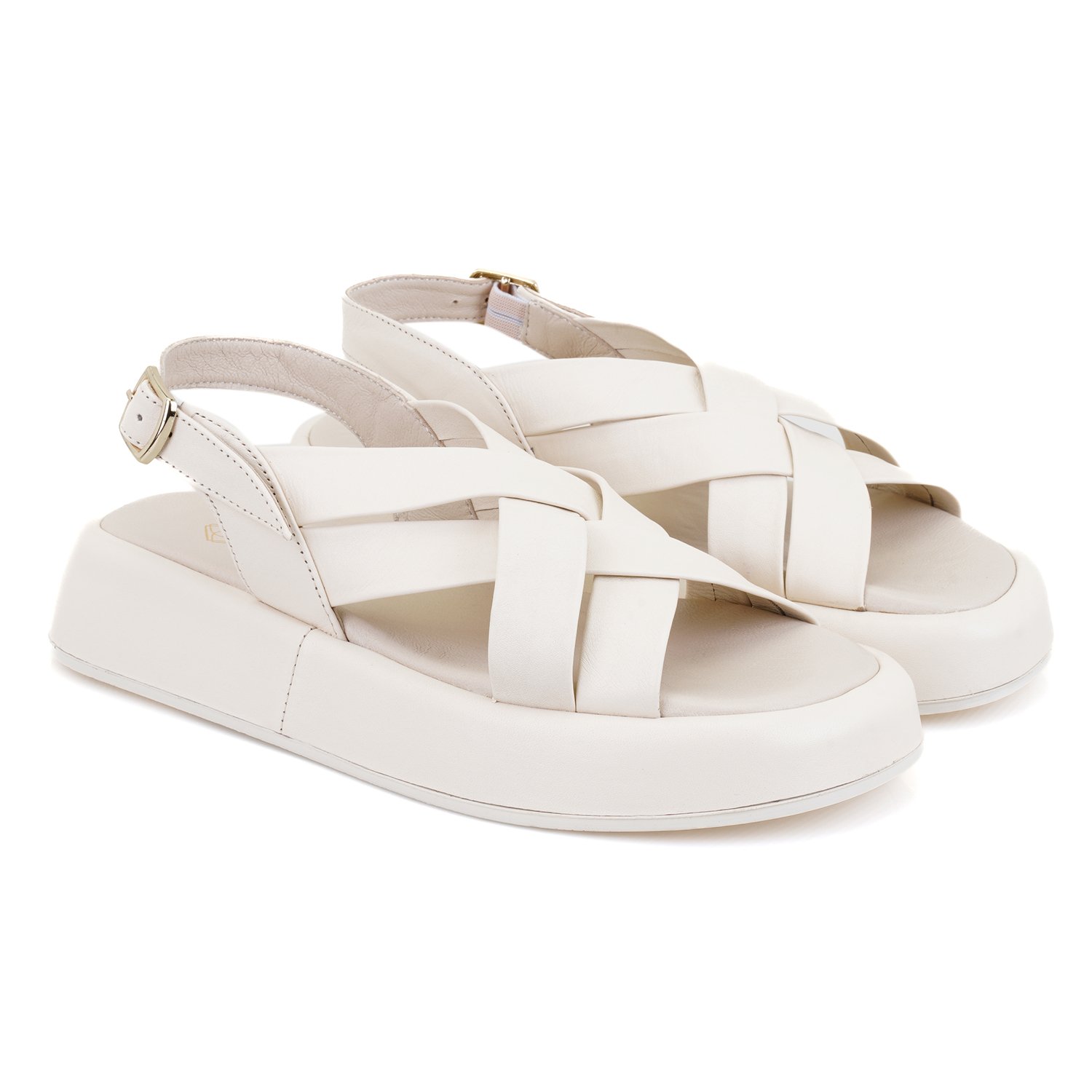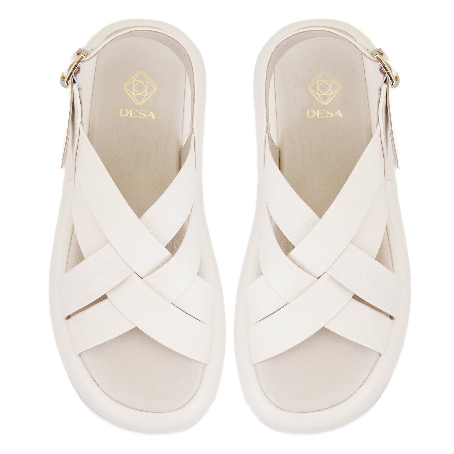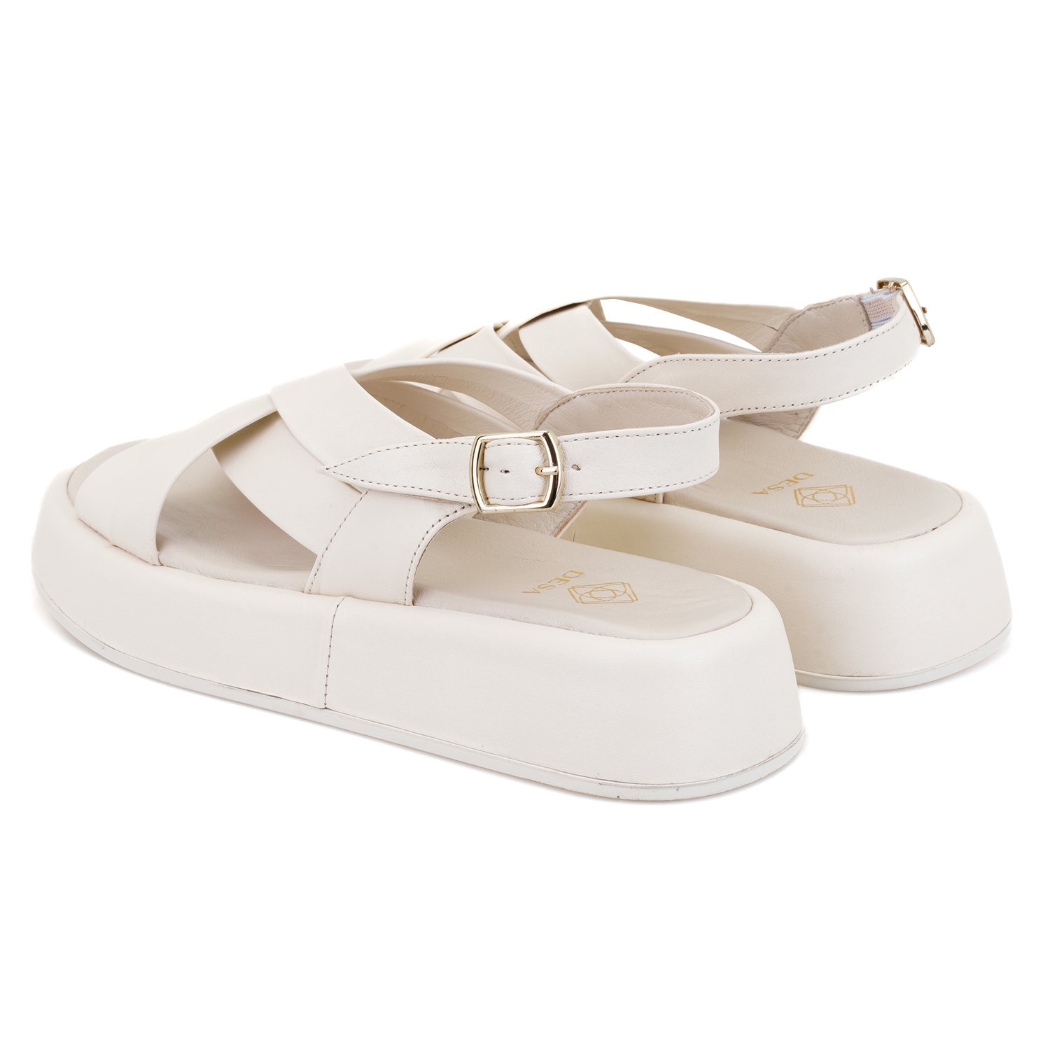 Kadın Bej Dolgu Tabanlı Deri Sandalet