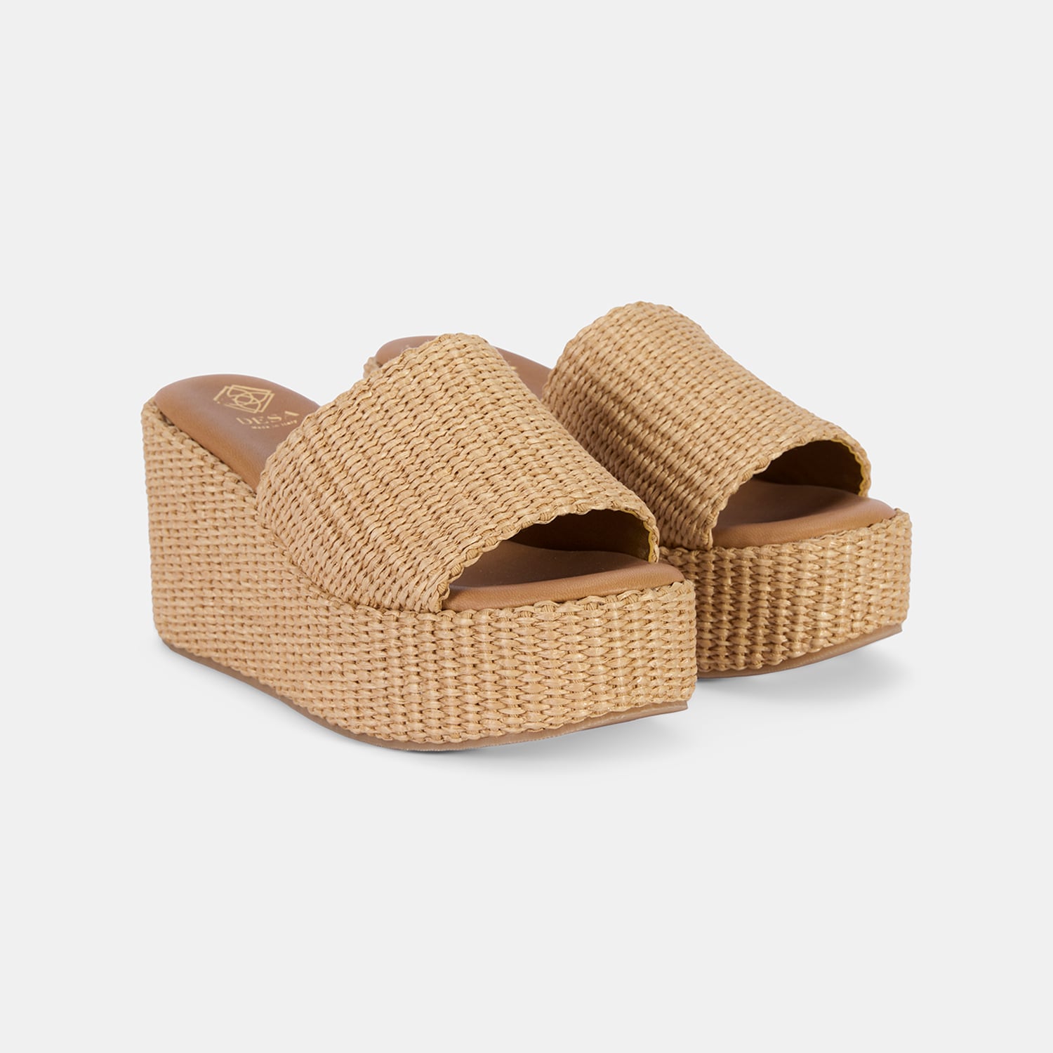 Kadın Bej Dolgu Topuklu Hasır Terlik