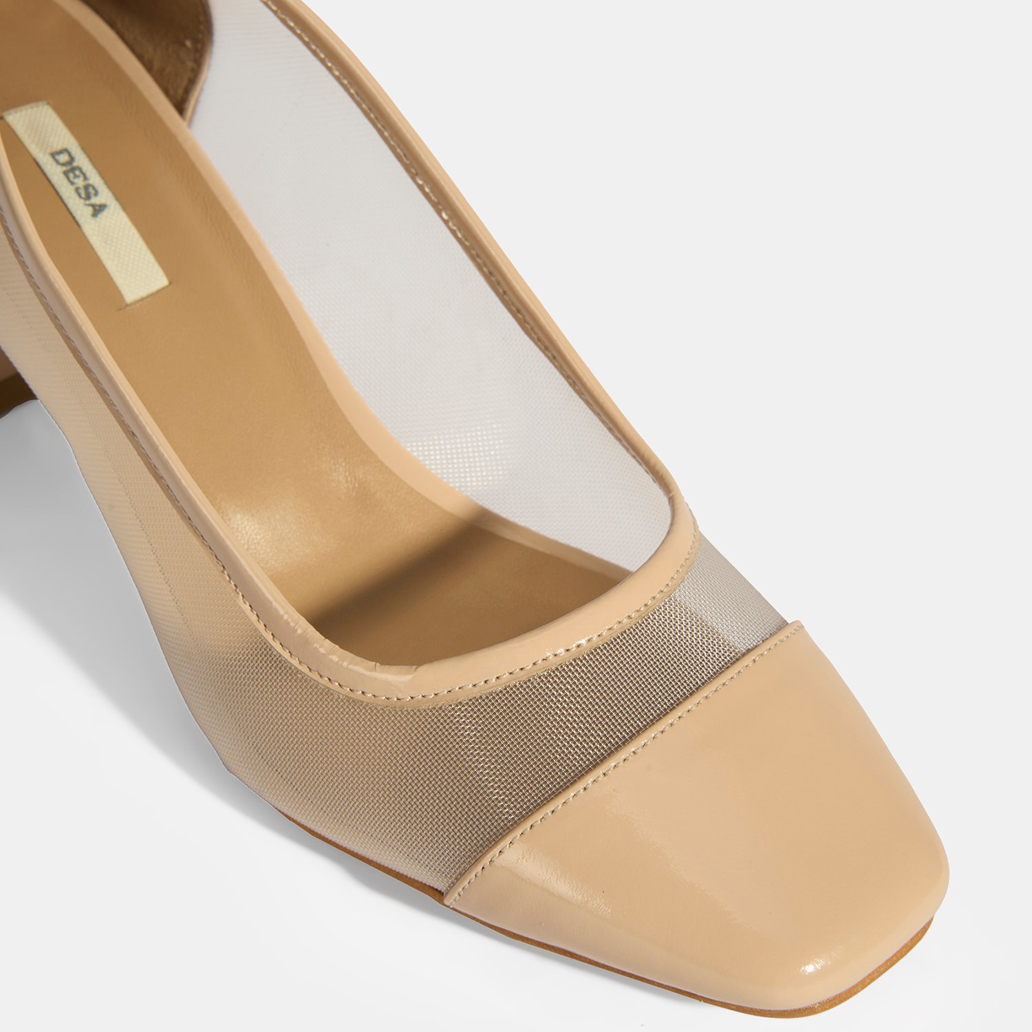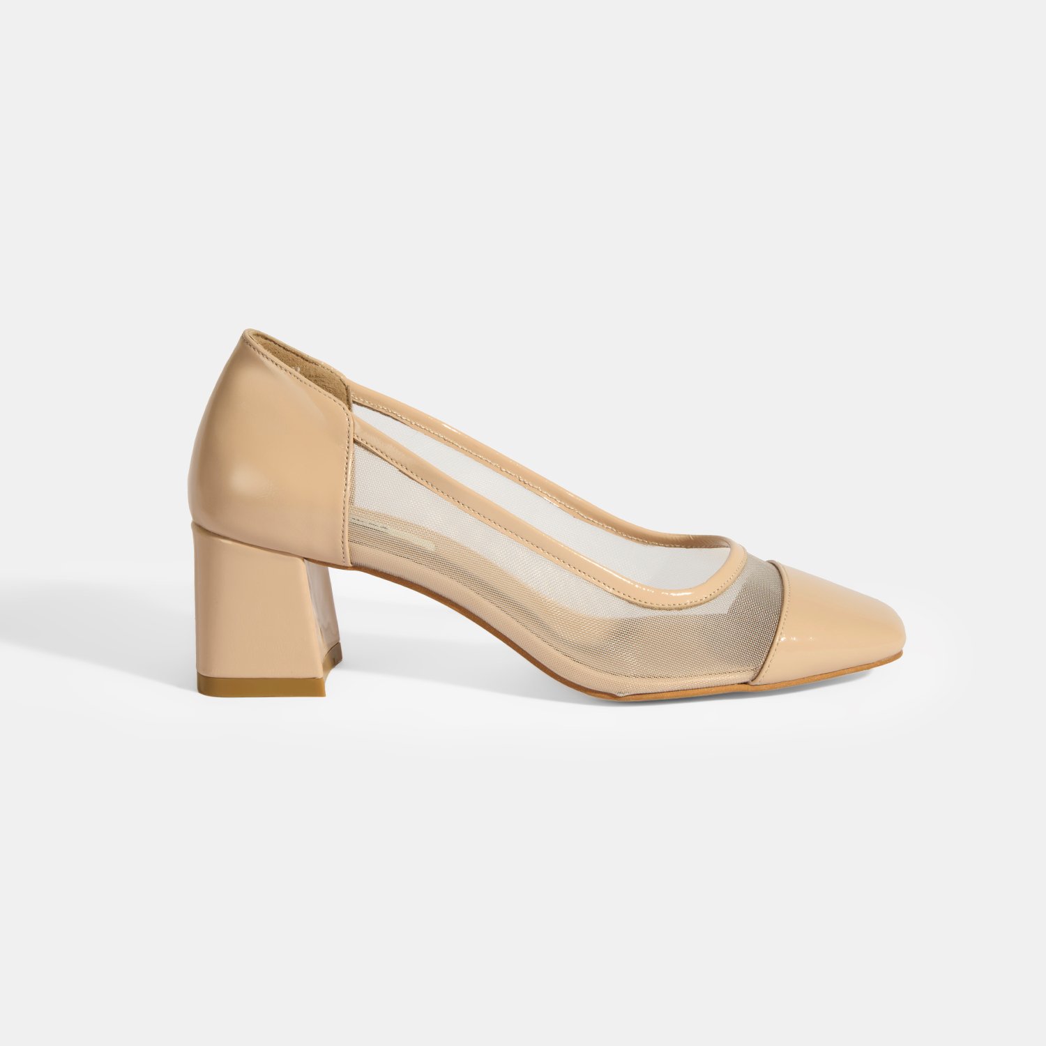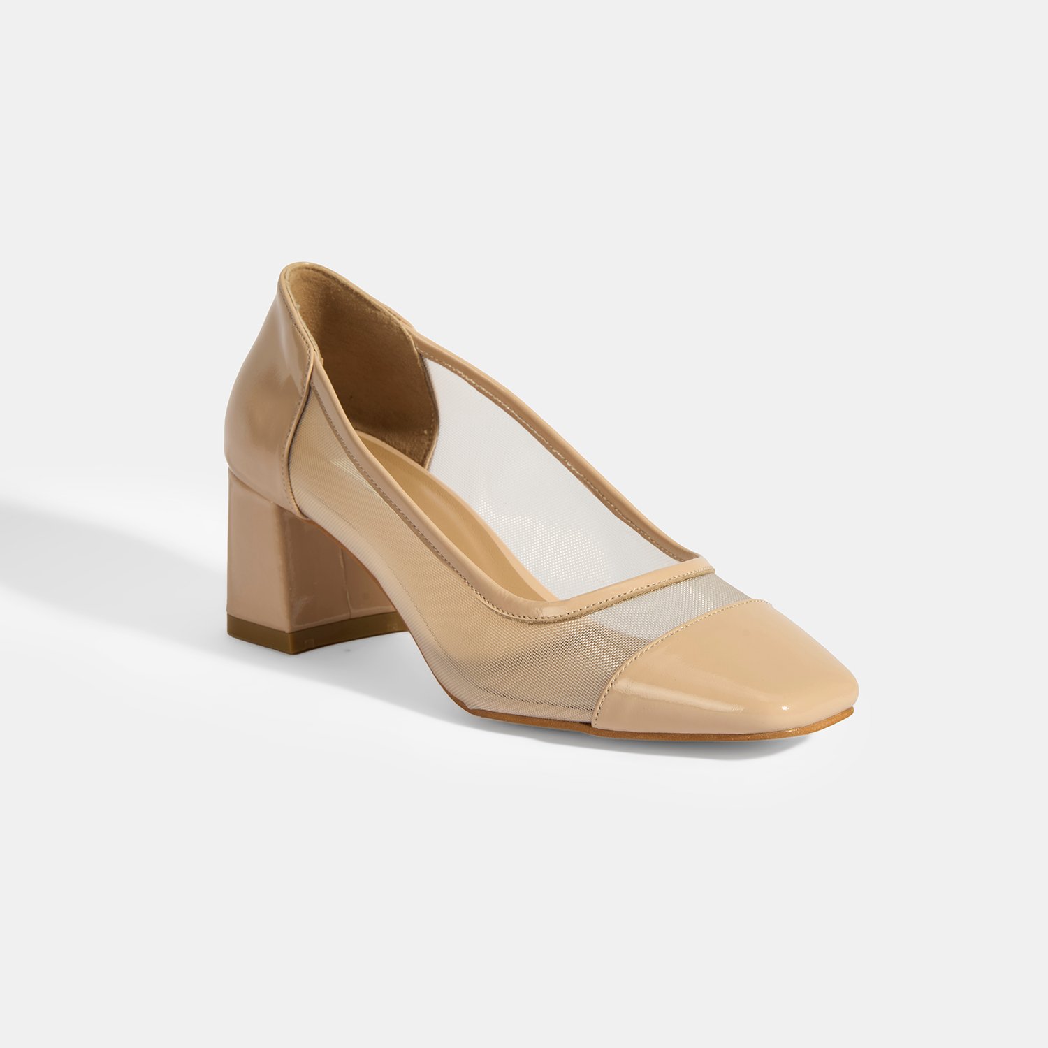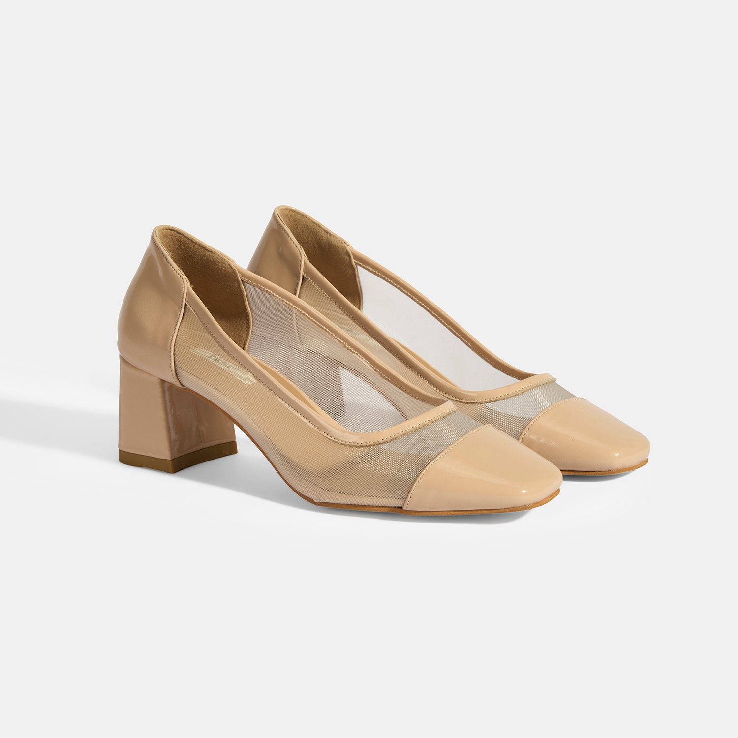 Kadın Bej File Detaylı Topuklu Klasik Ayakkabı