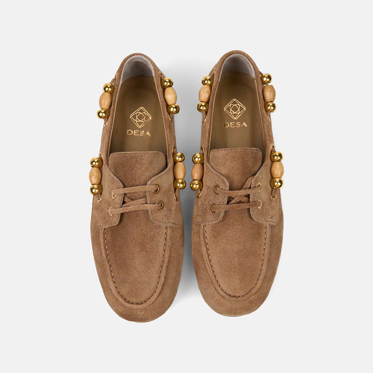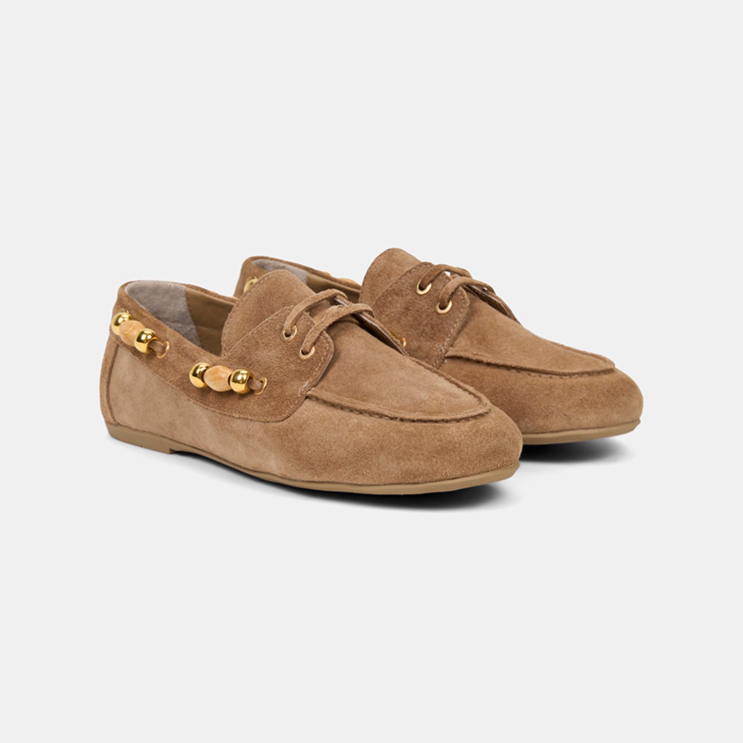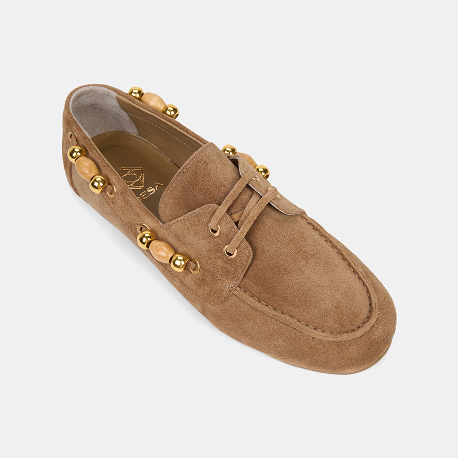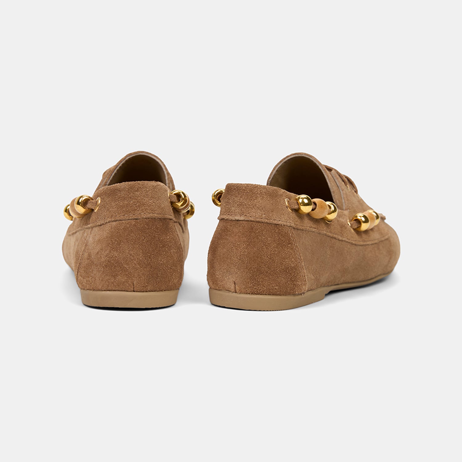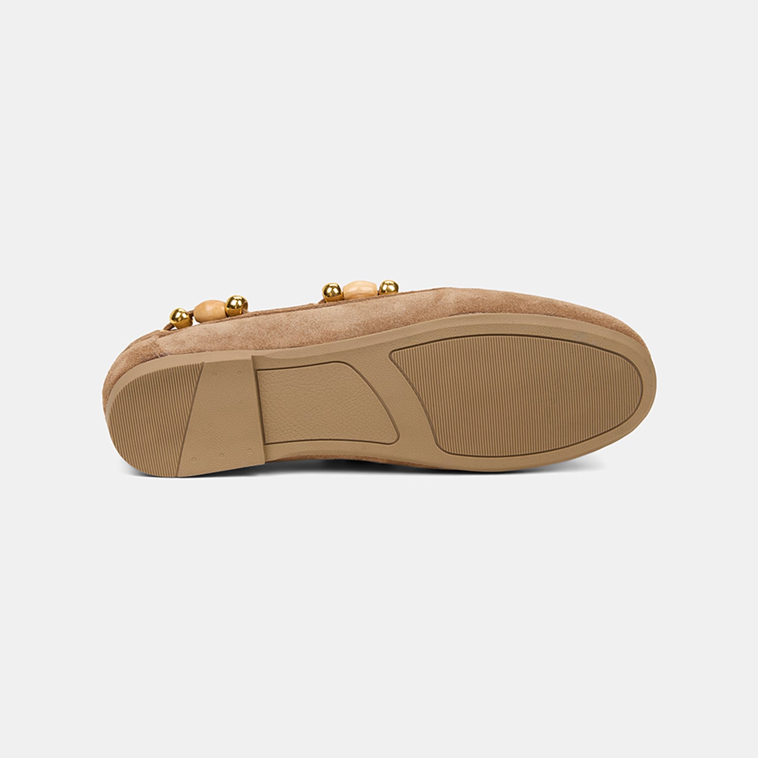 Kadın Bej Gold Boncuk Aksesuarlı Süet Deri Loafer