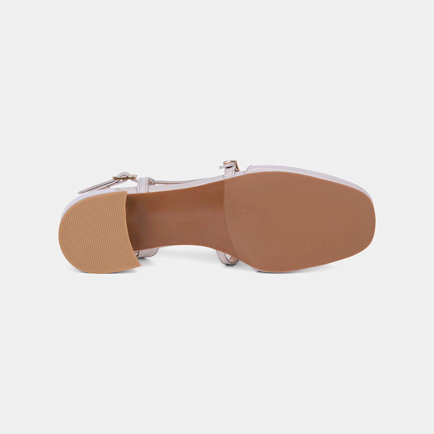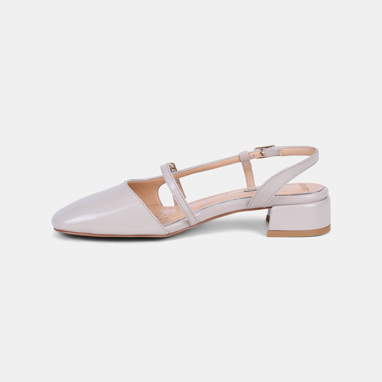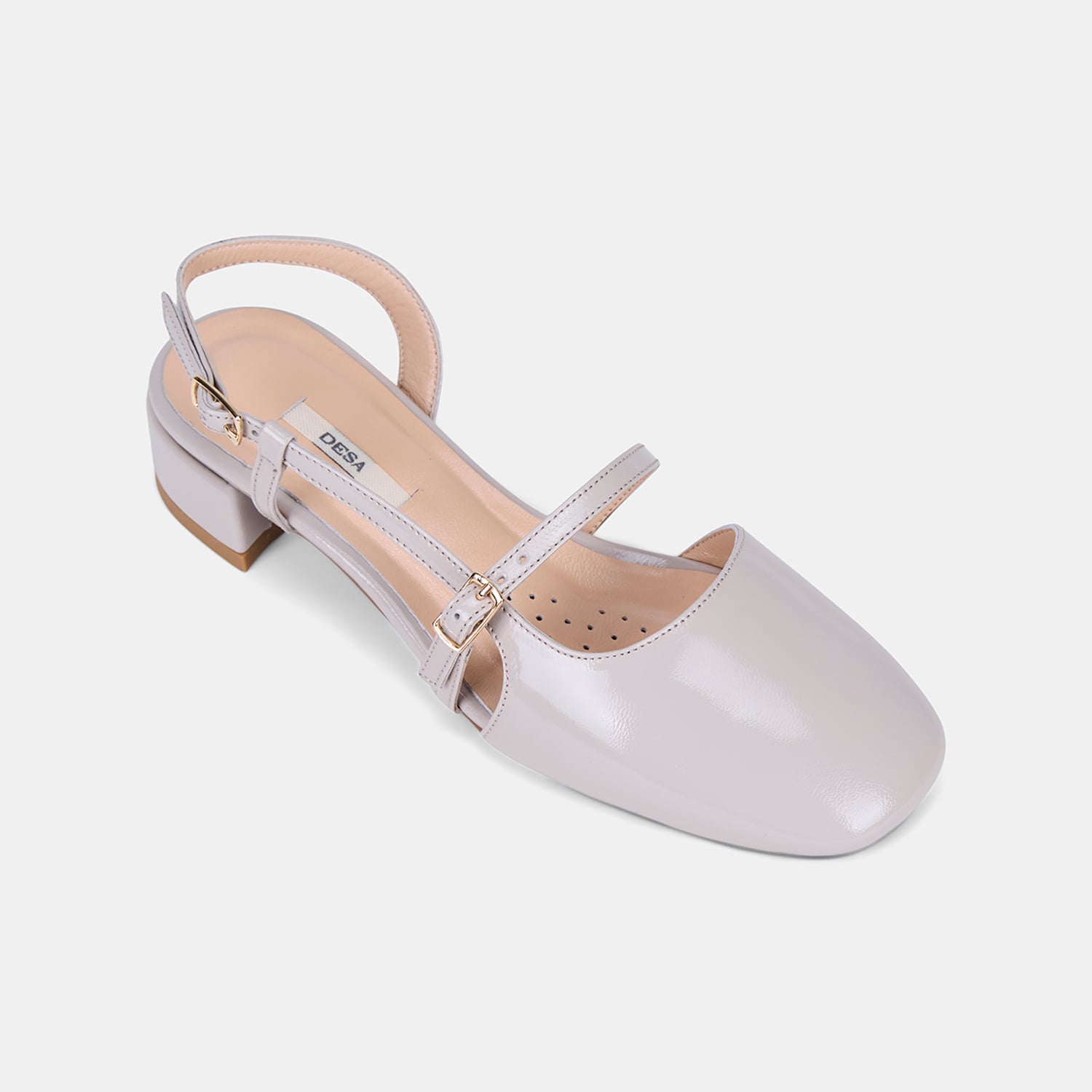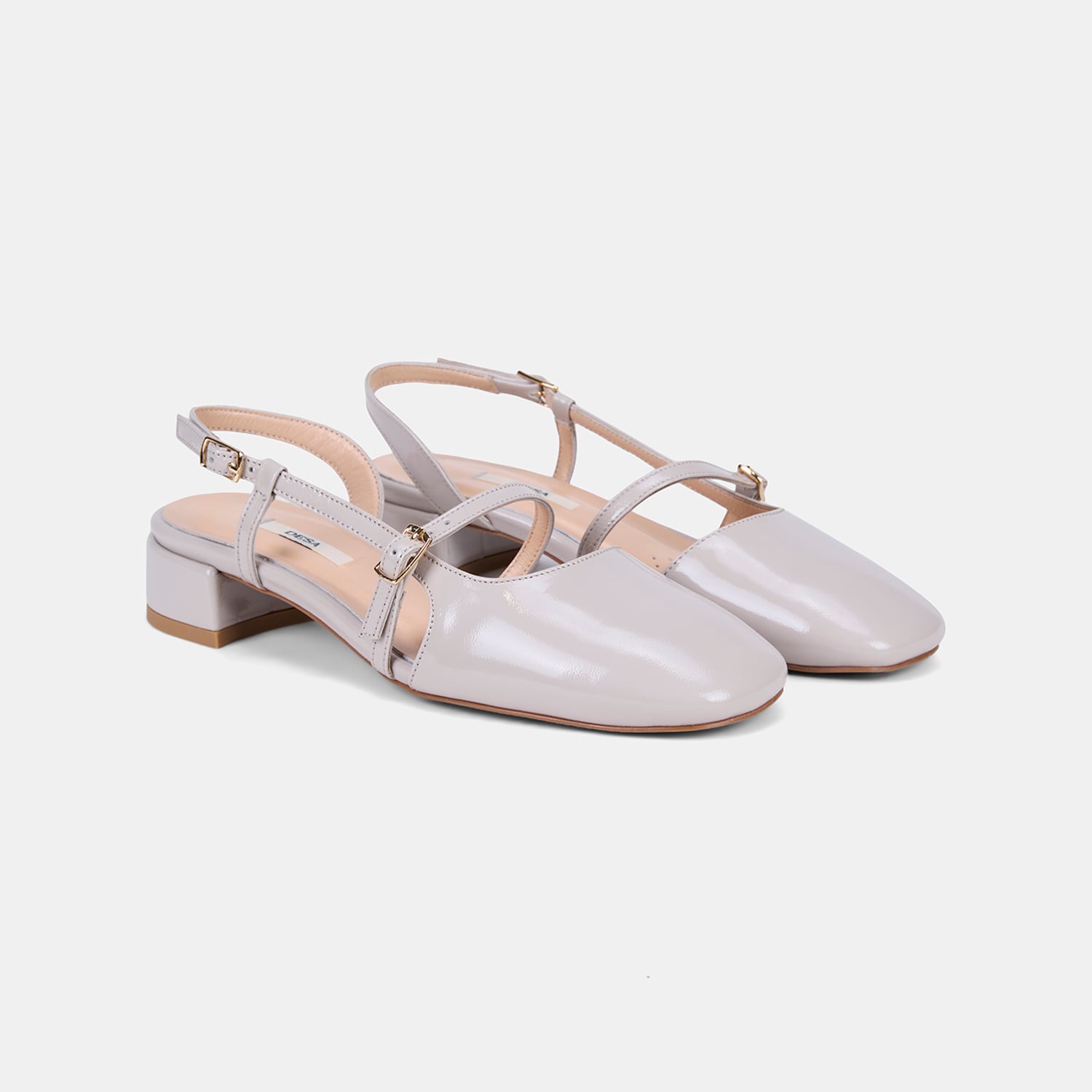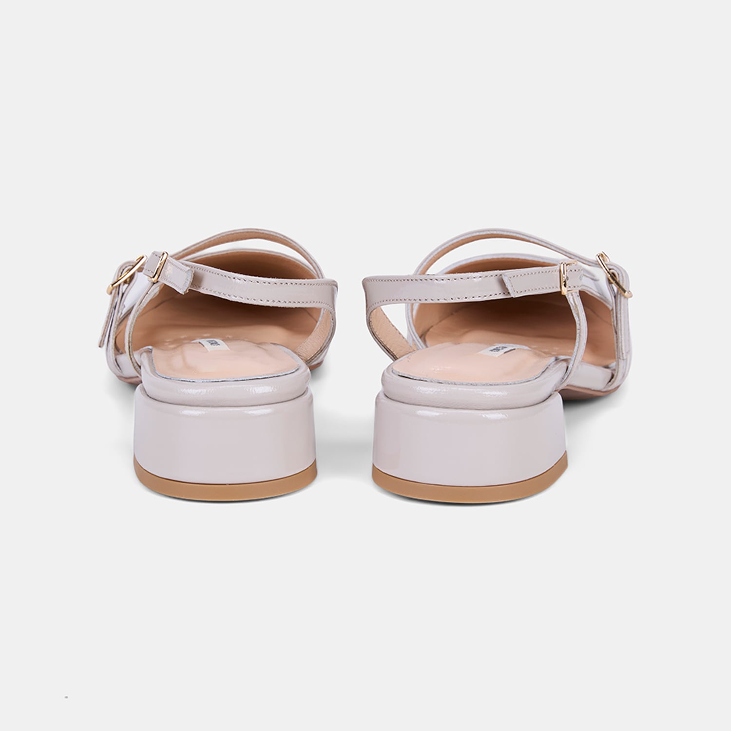 Kadın Bej İnce Bantlı Slingback Kısa Topuklu Rugan Deri Ayakkabı