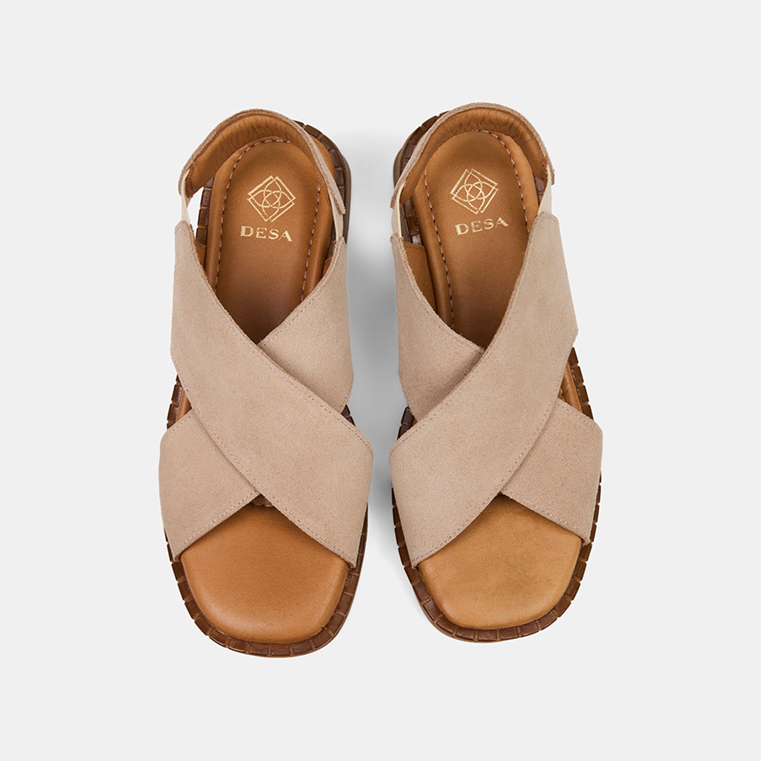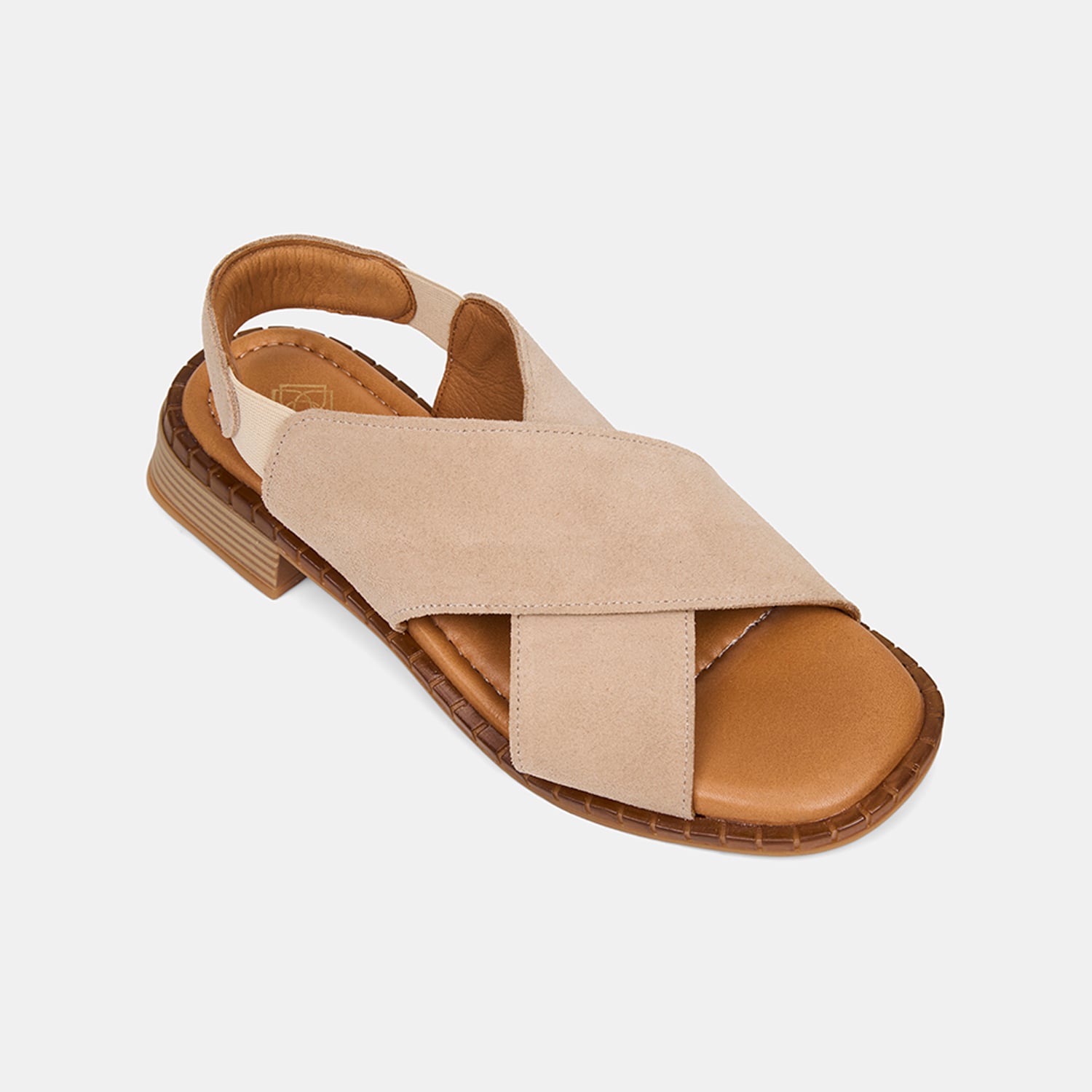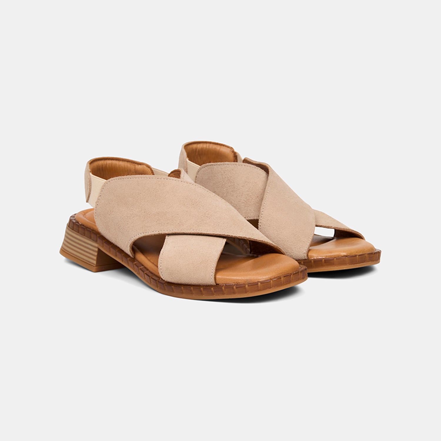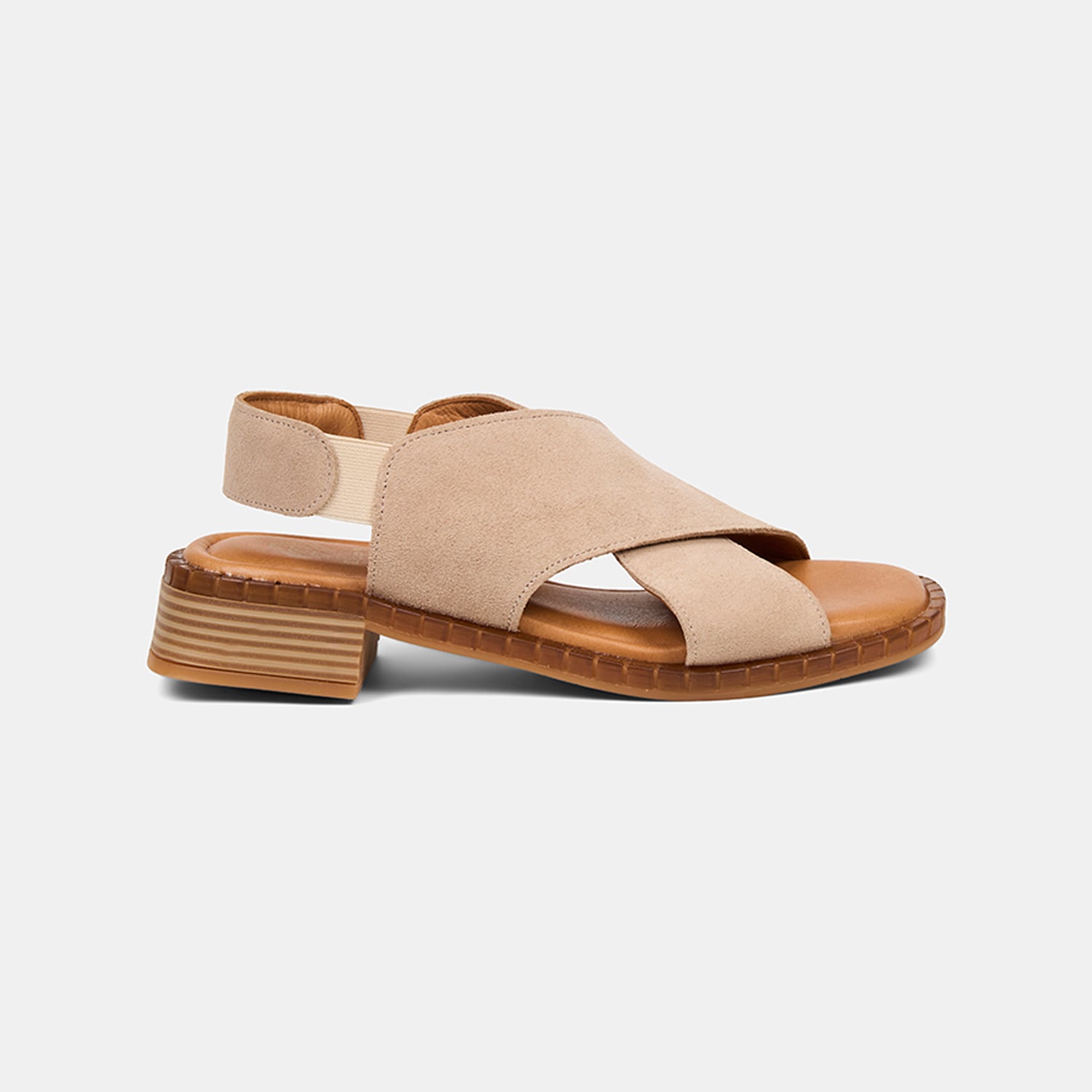 Kadın Bej Lastikli Çapraz Bantlı Süet Sandalet