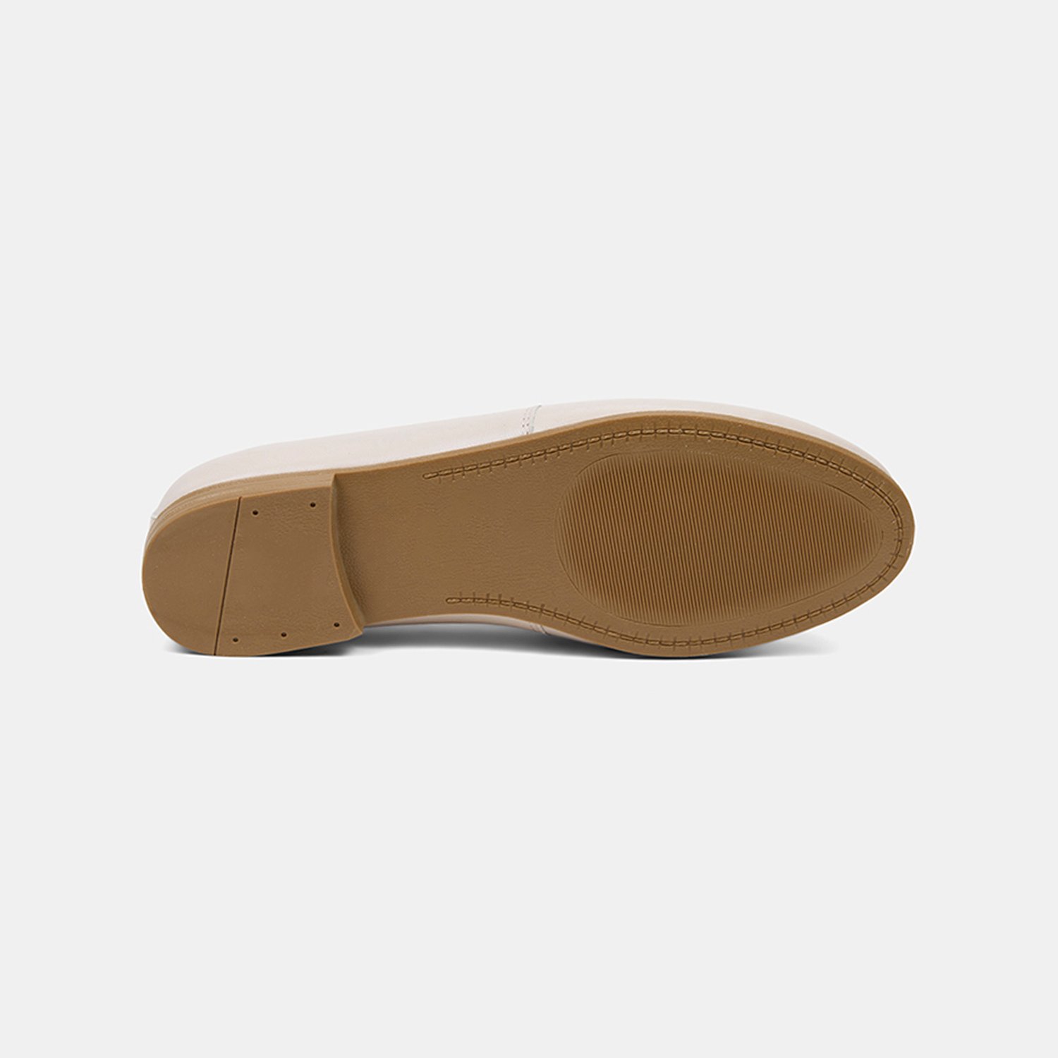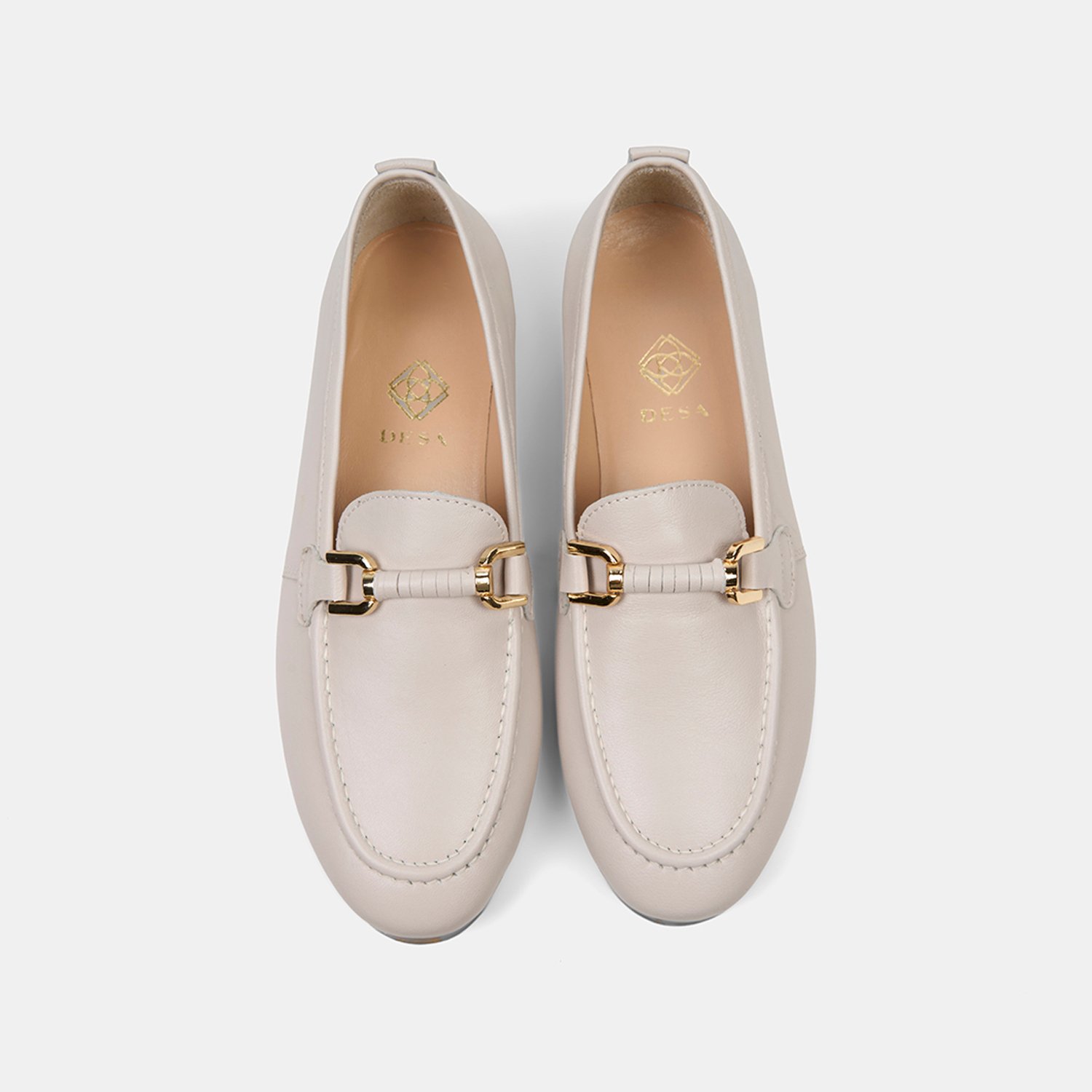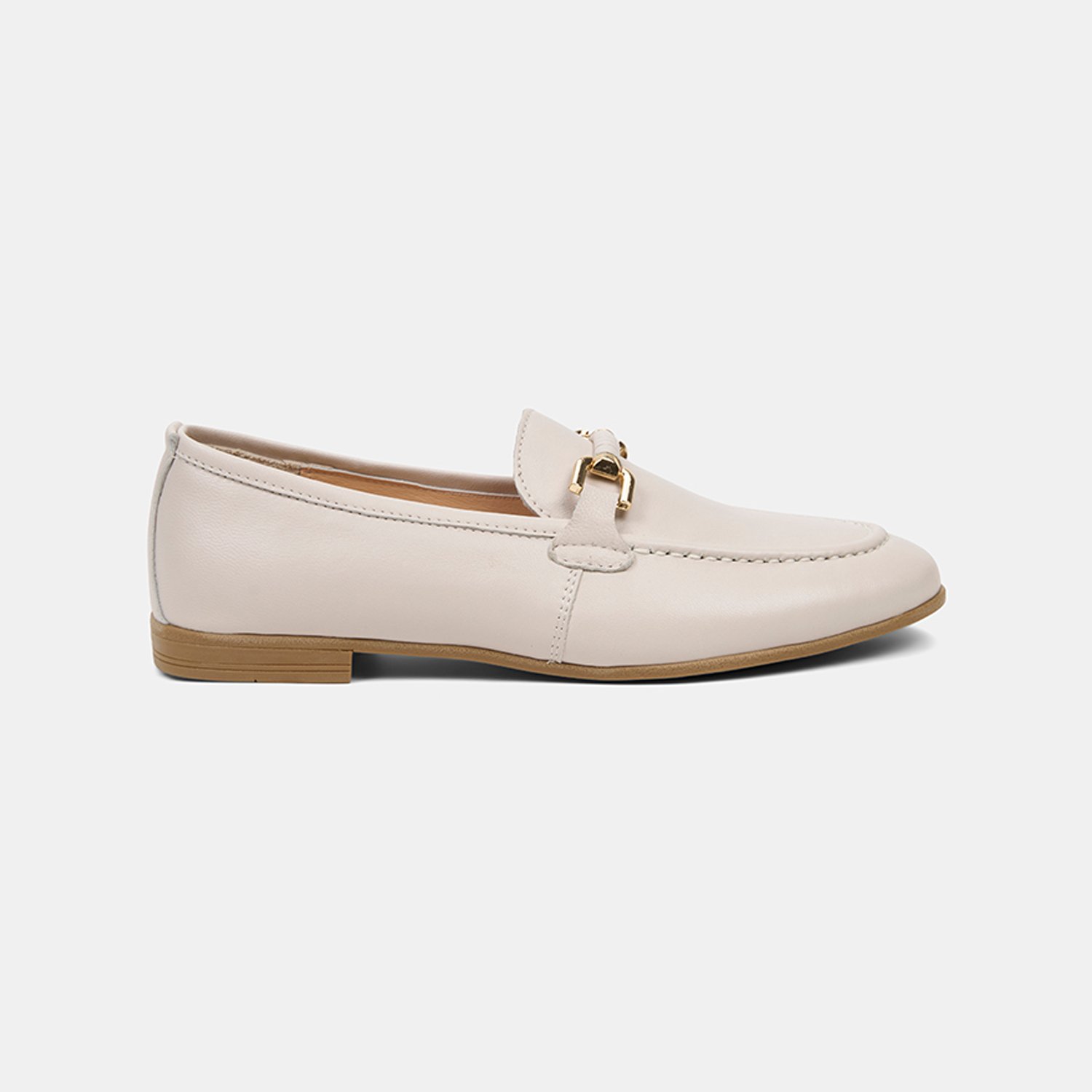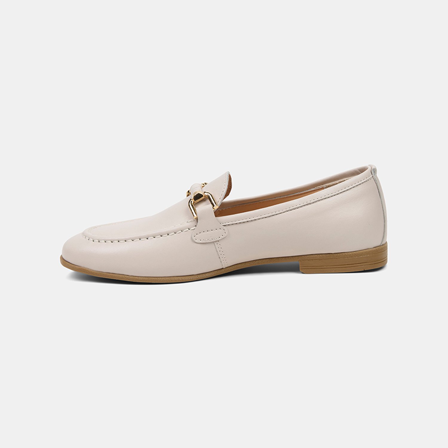 Kadın Bej Metal Gold Toka Aksesuarlı Deri Loafer
