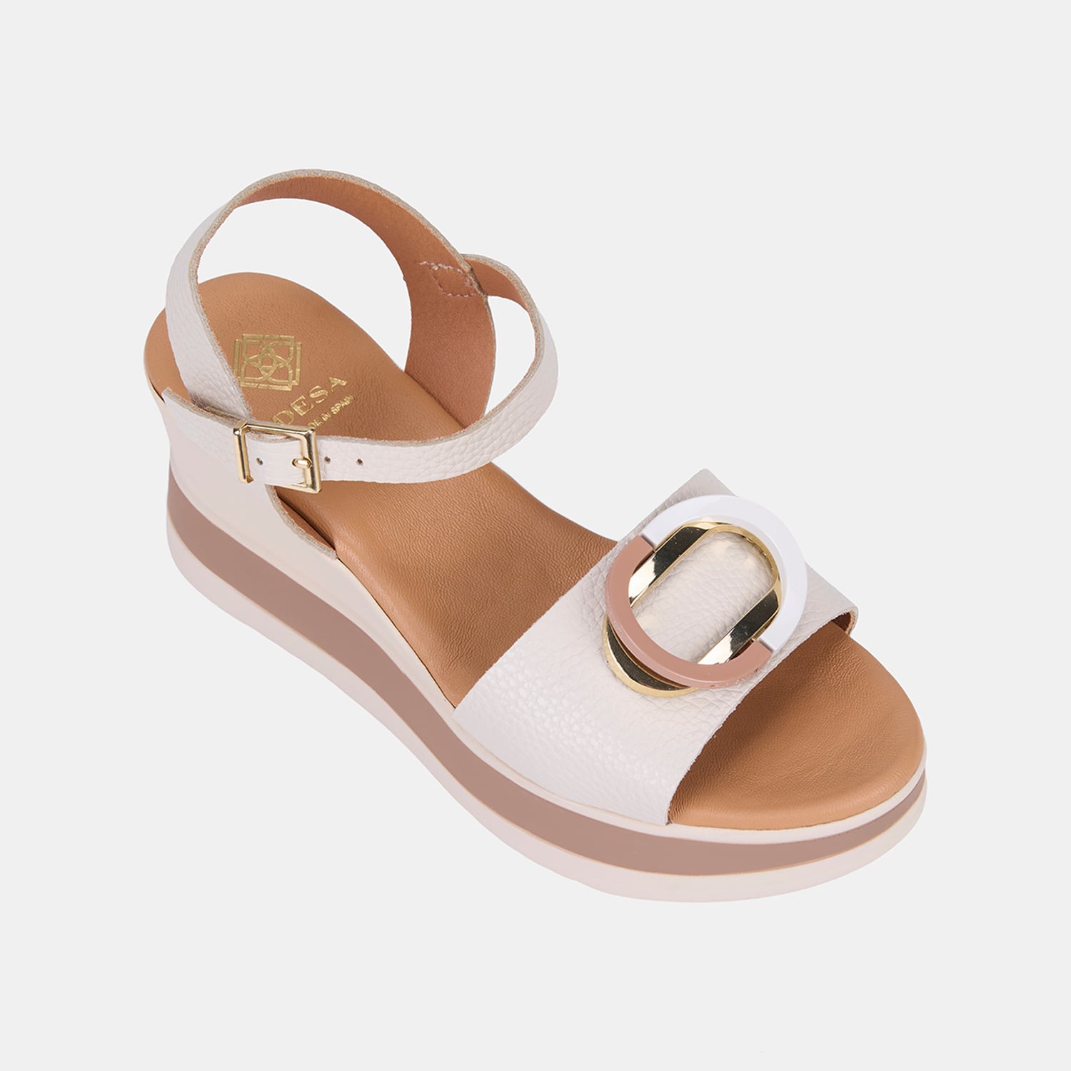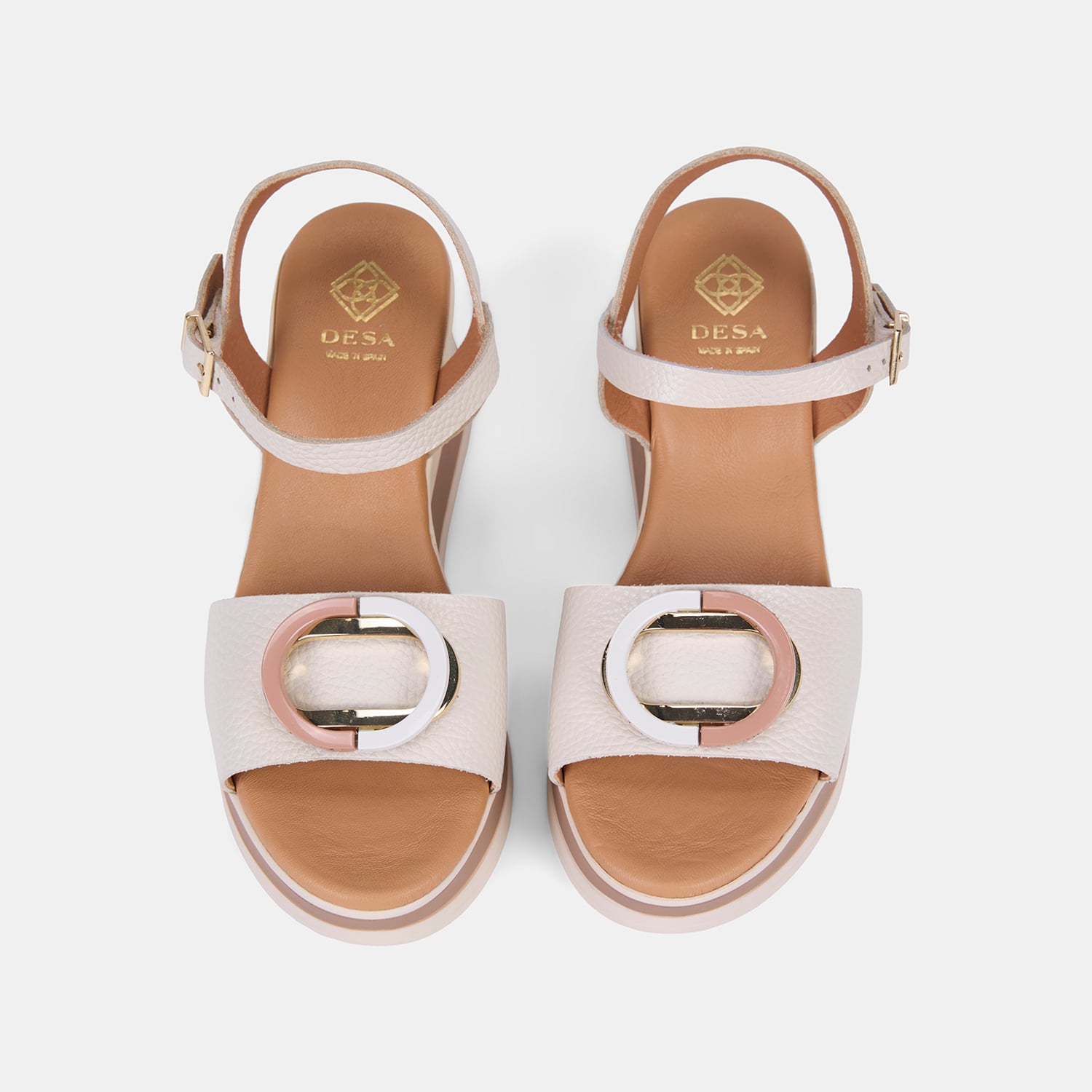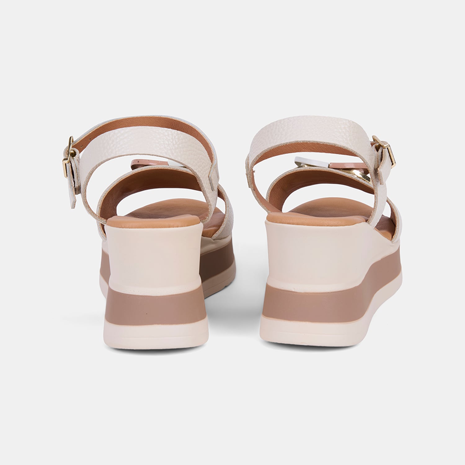 Kadın Bej Metal Halka Aksesuarlı Dolgu Topuklu Deri Sandalet