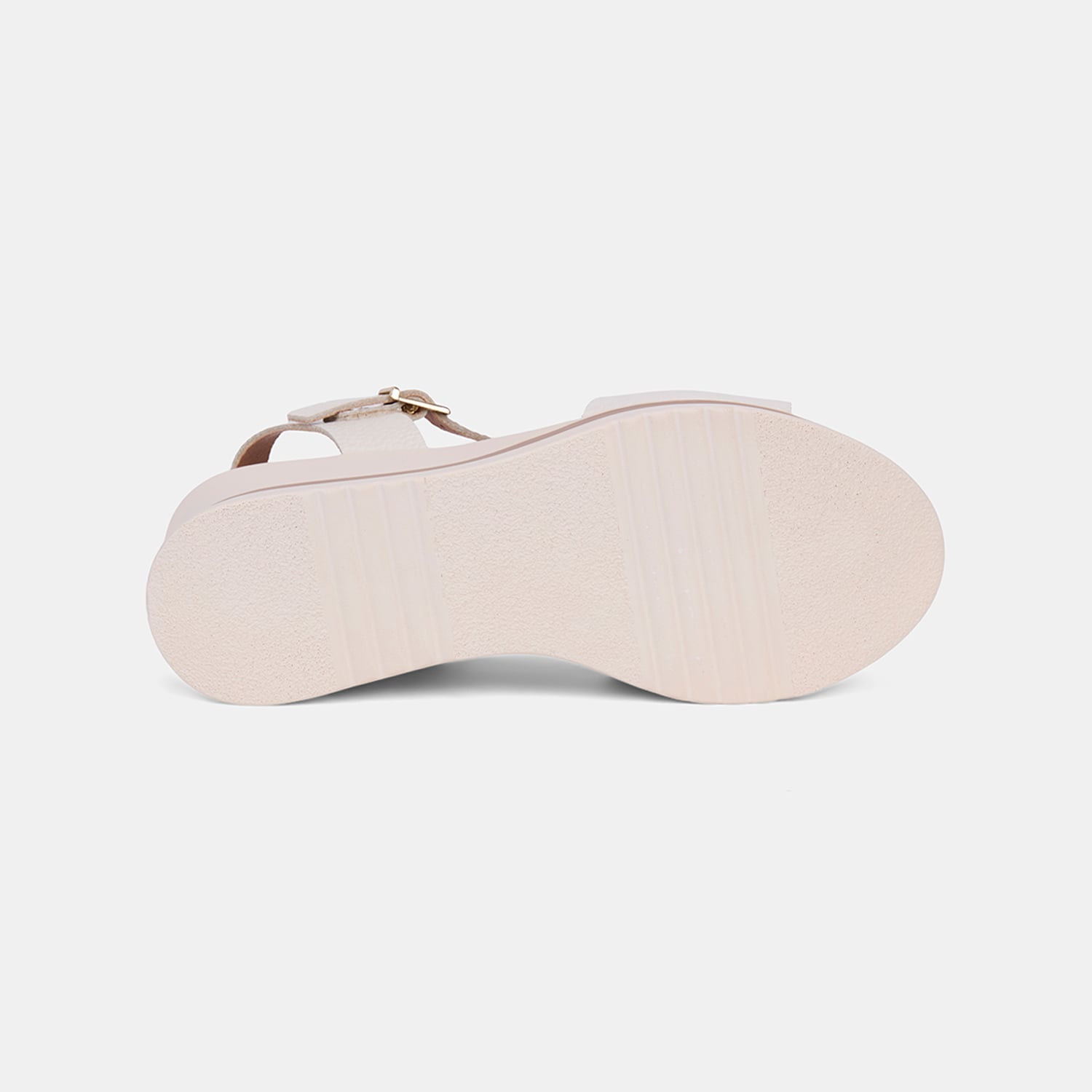 5 cm dolgu topuk formu dengeli bir yükselti sağlayarak hem şık hem de konforlu bir duruş oluşturur.