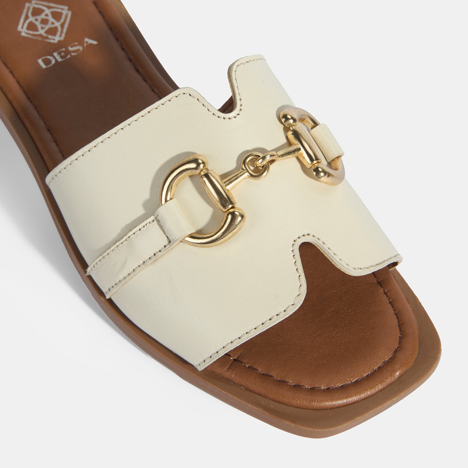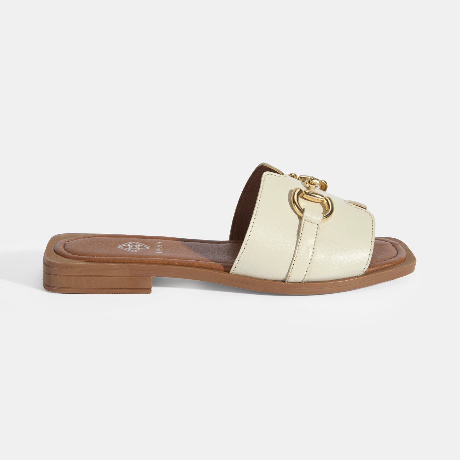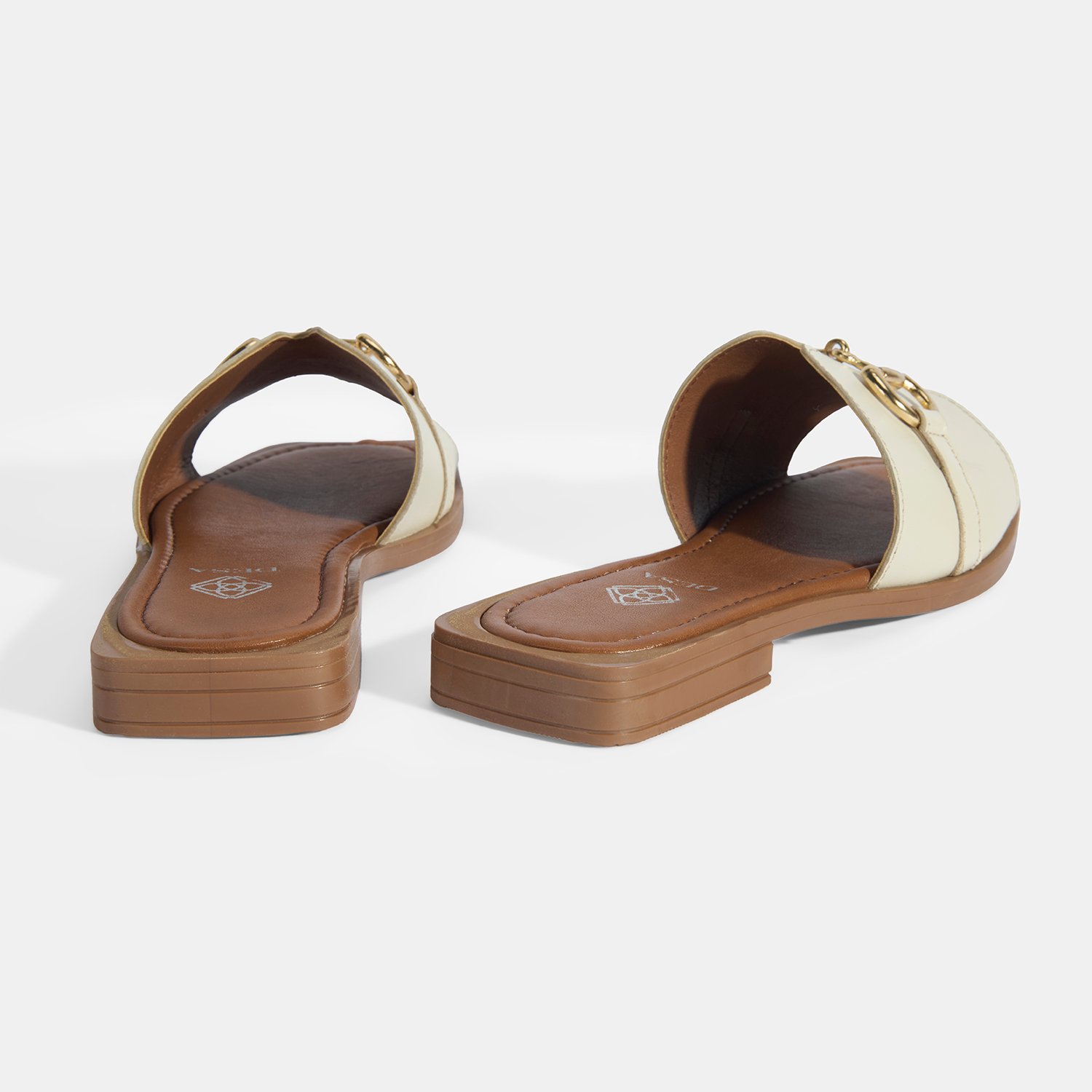 Kadın Bej Metal Toka Aksesuarlı Deri Terlik