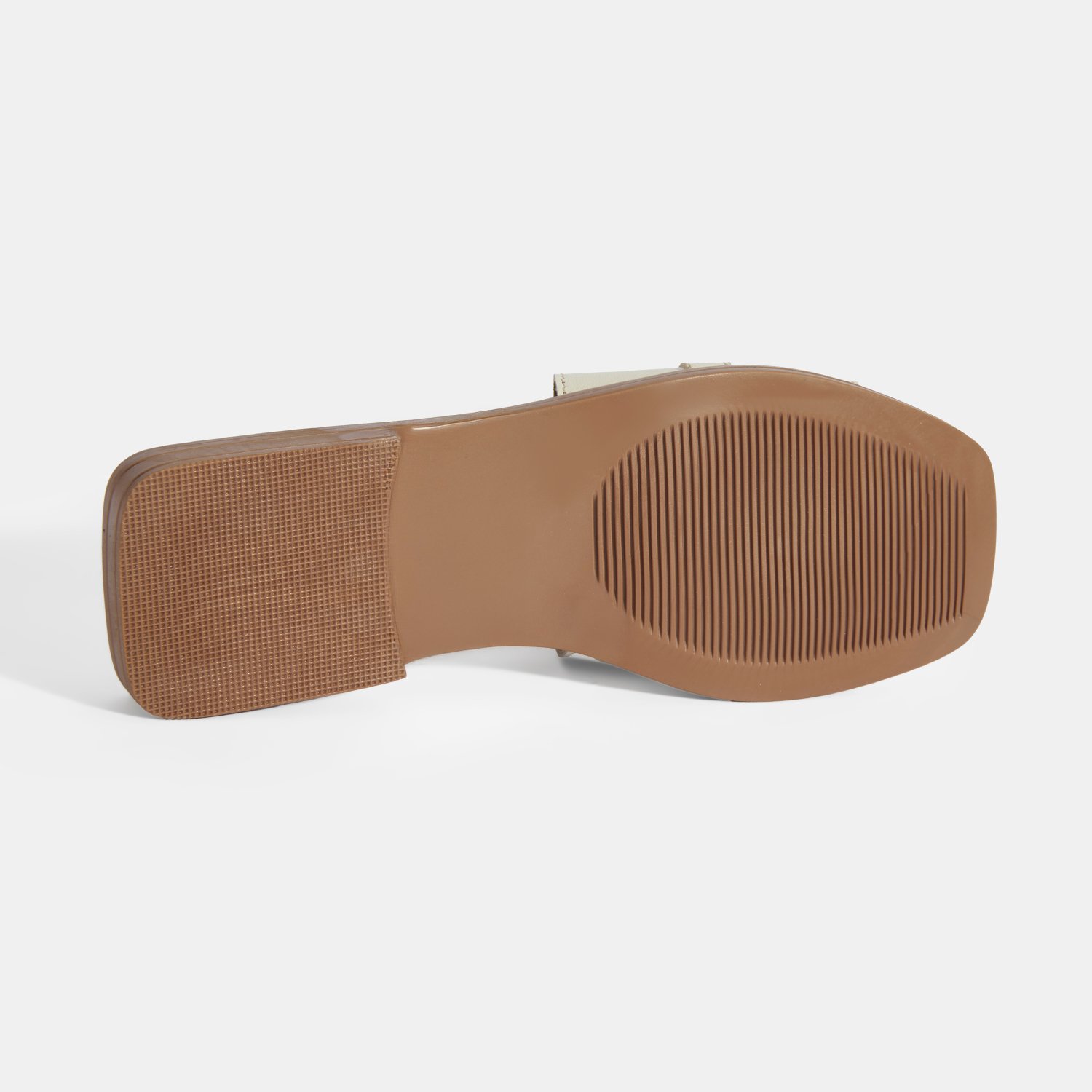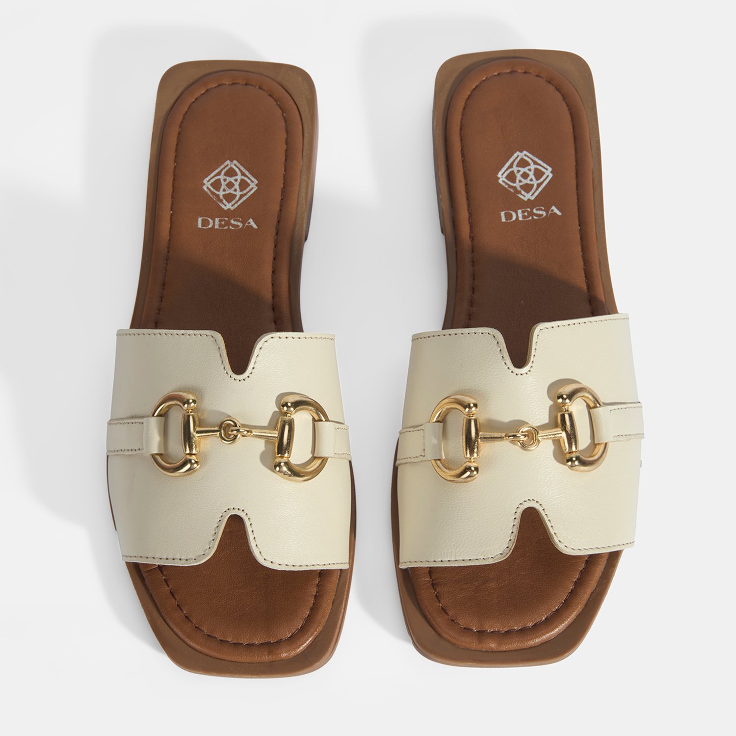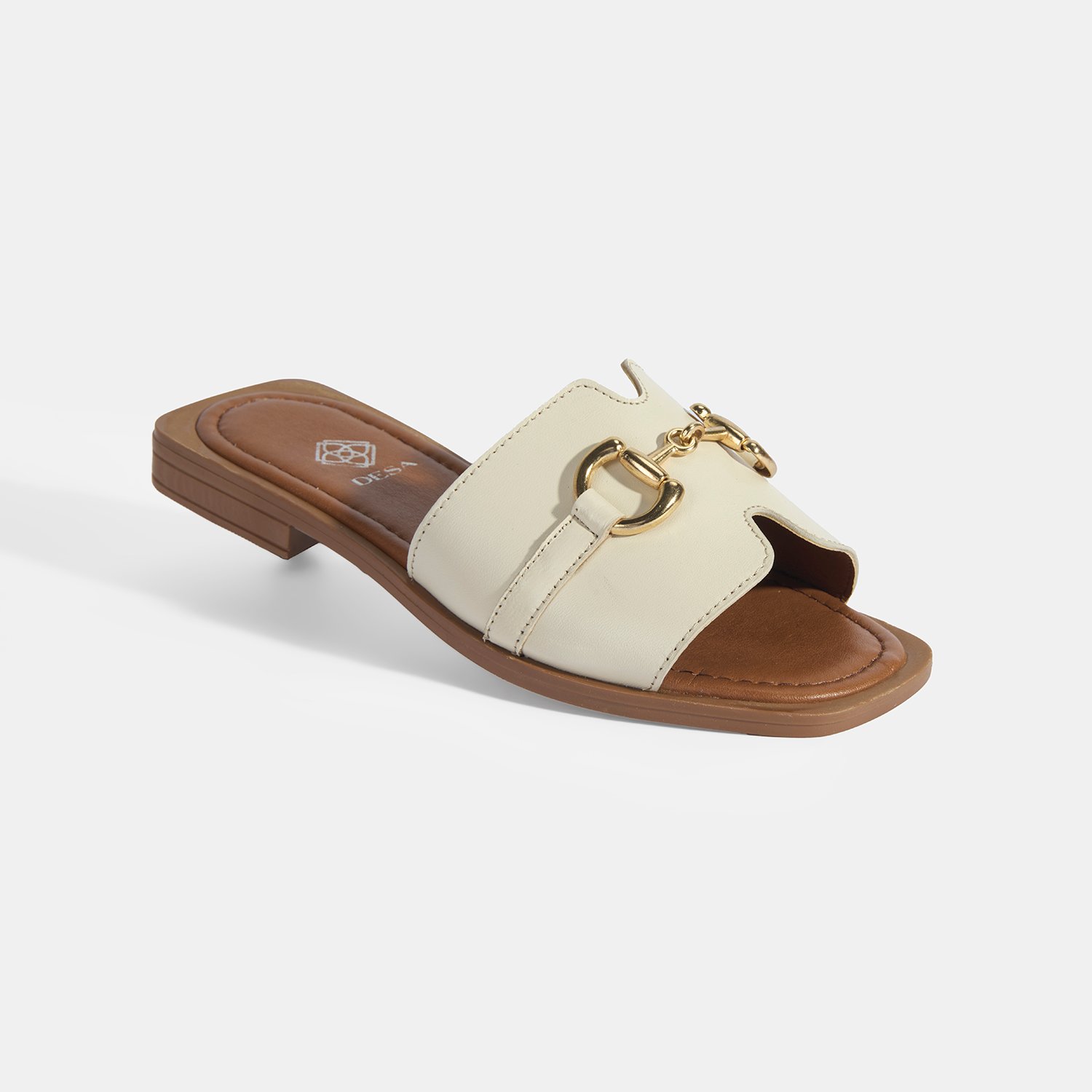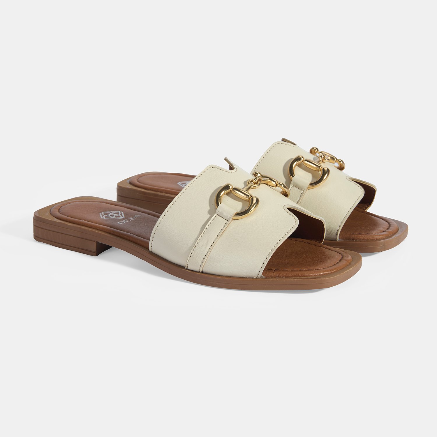 Kadın Bej Metal Toka Aksesuarlı Deri Terlik