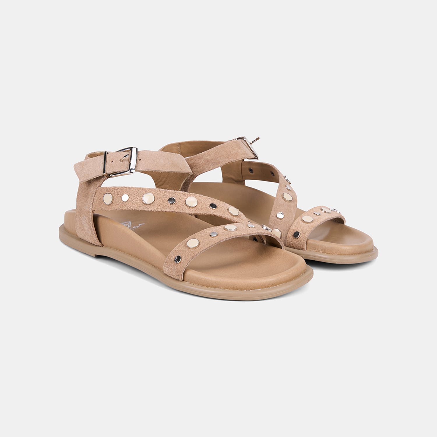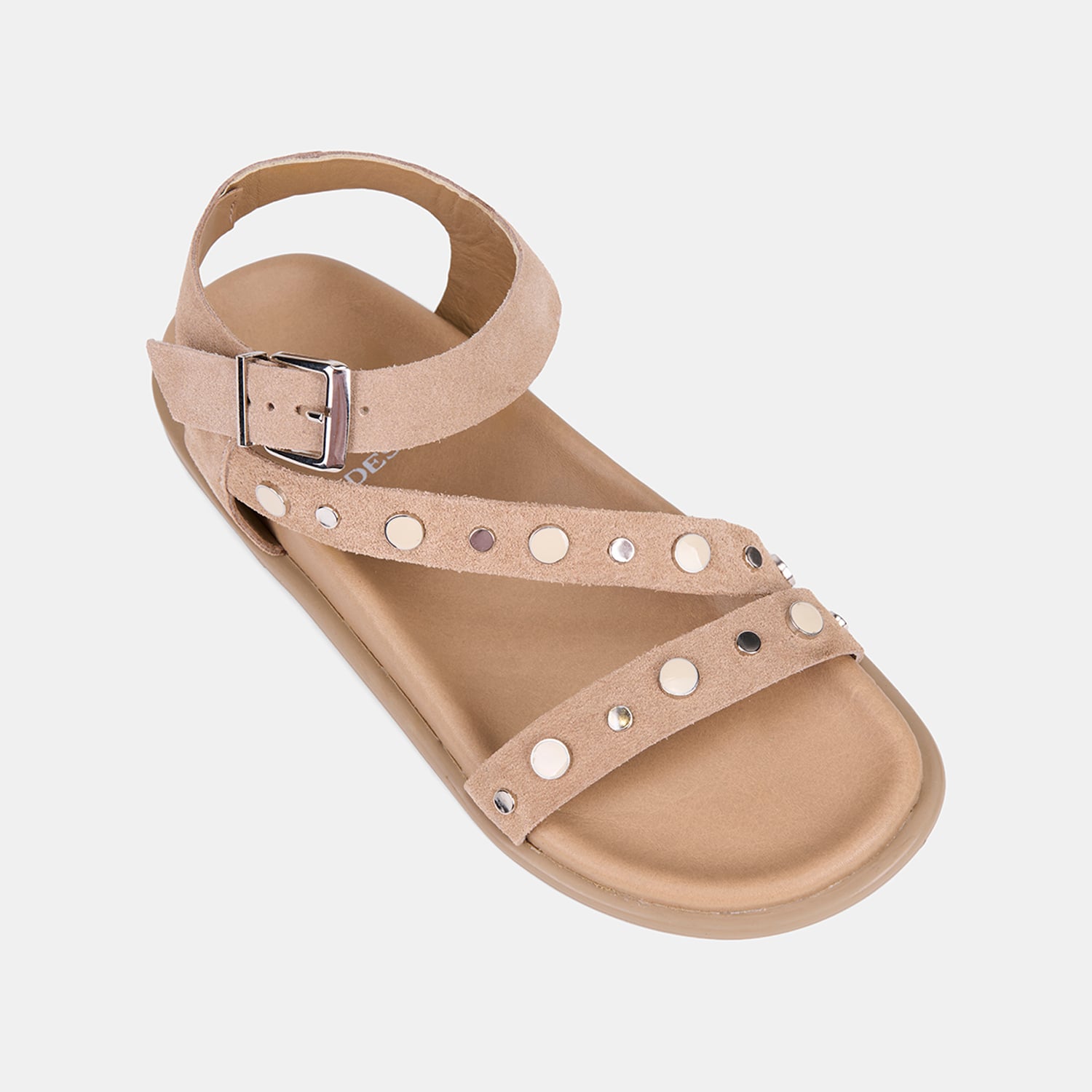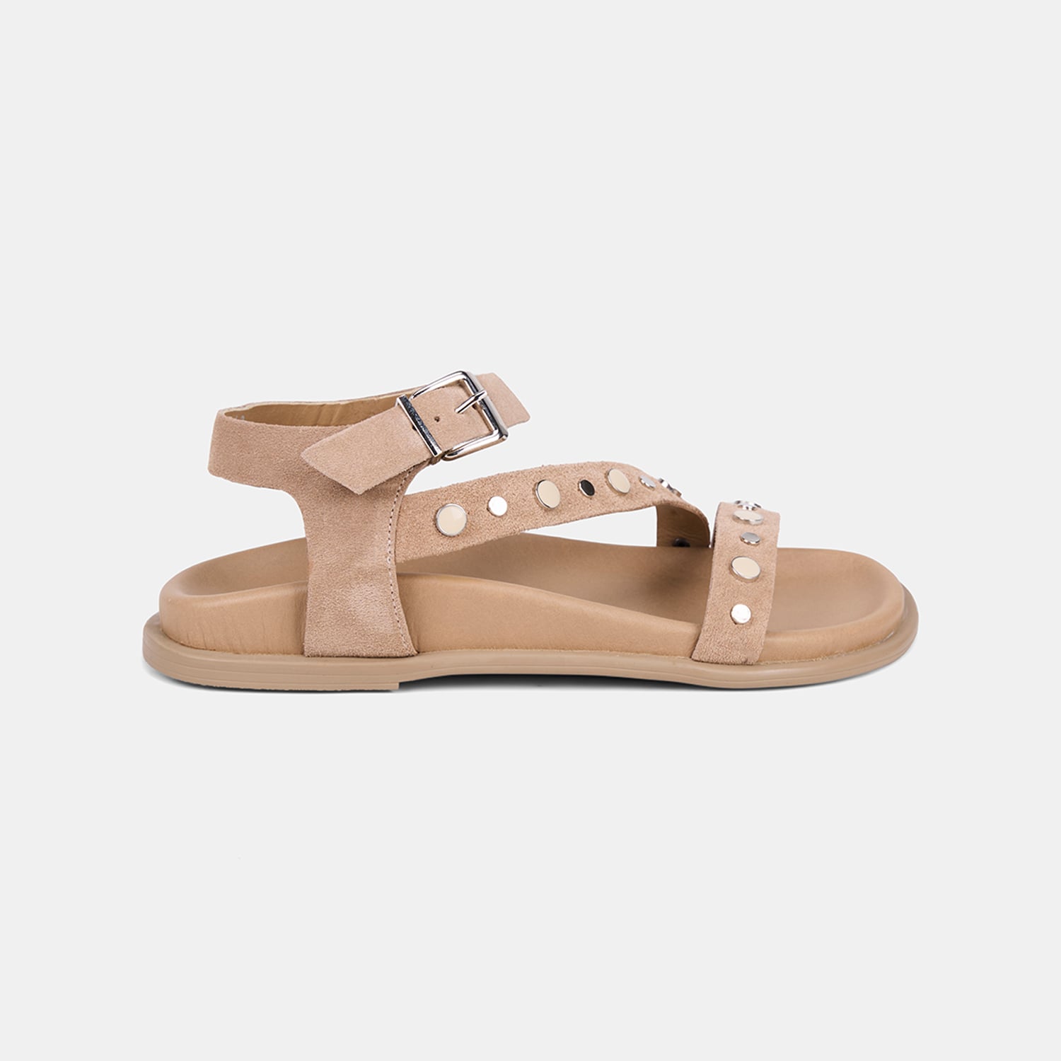 Kadın Bej Metal Tokalı Zımba Detaylı Süet Sandalet