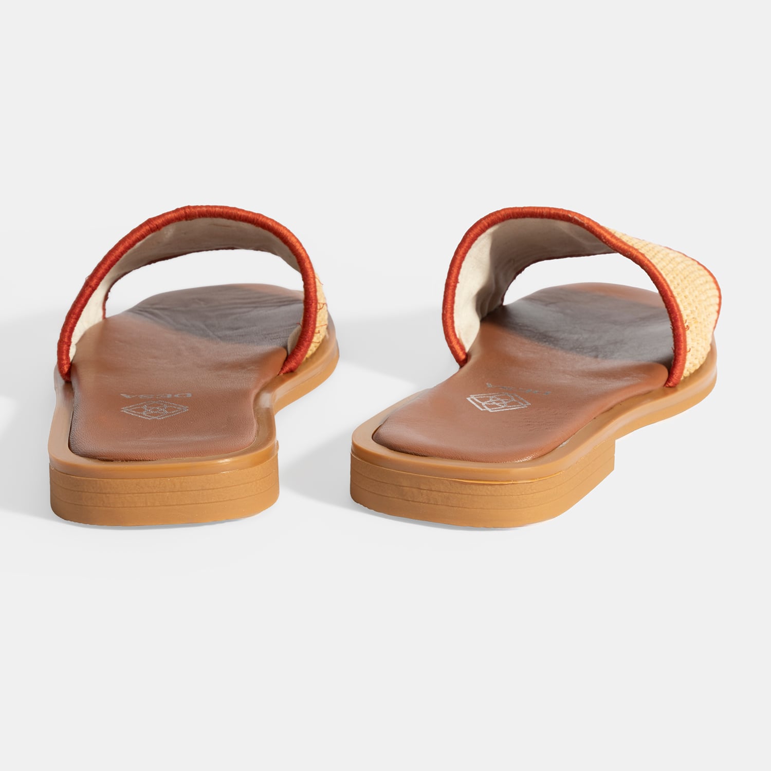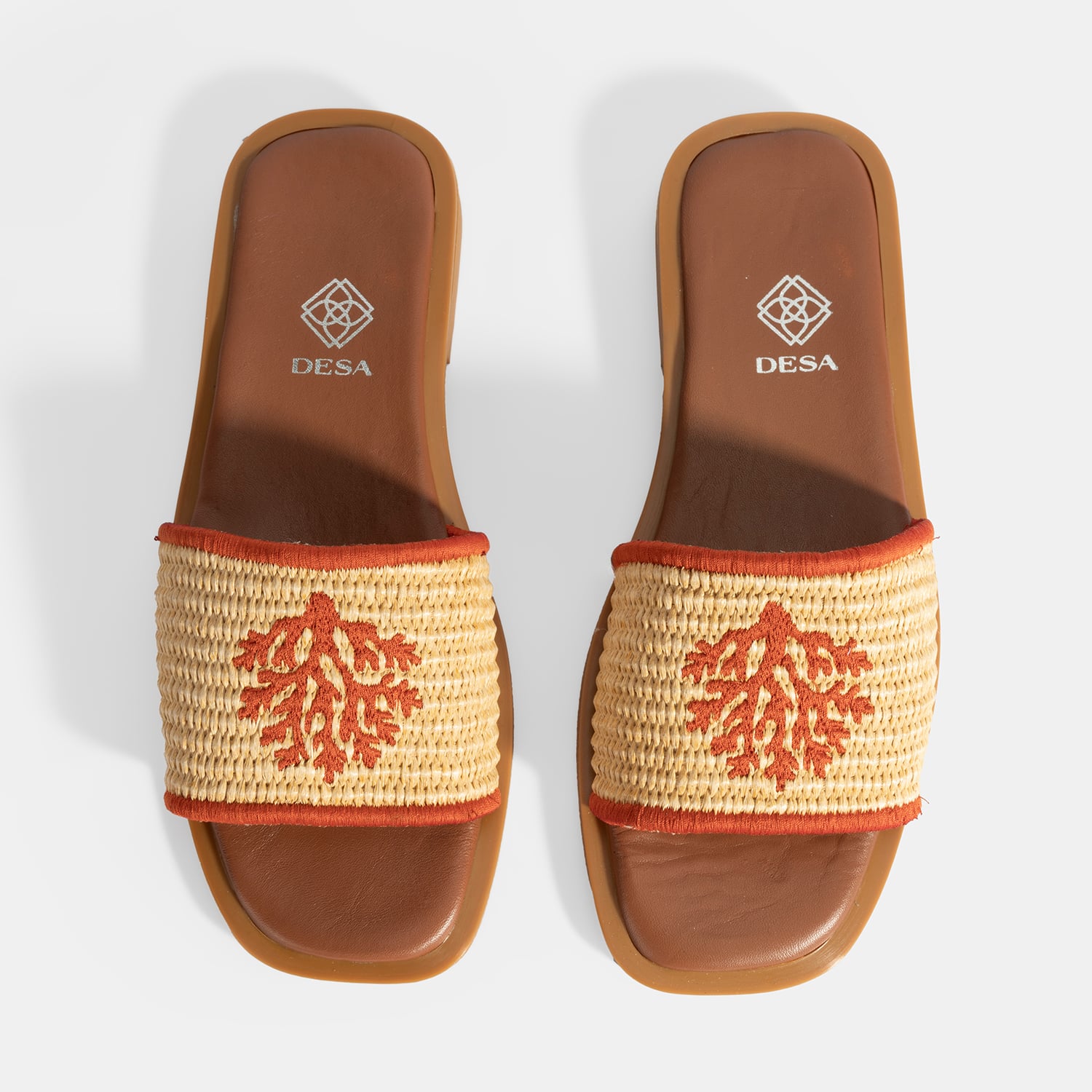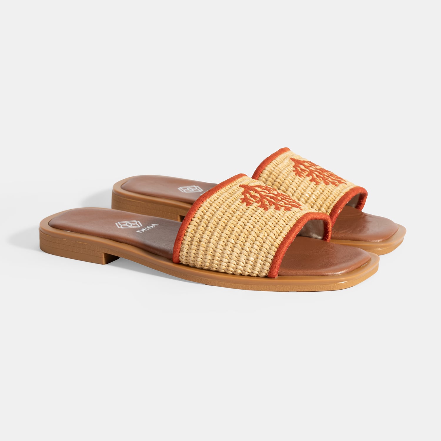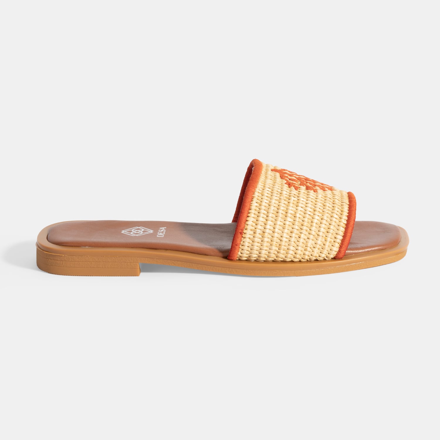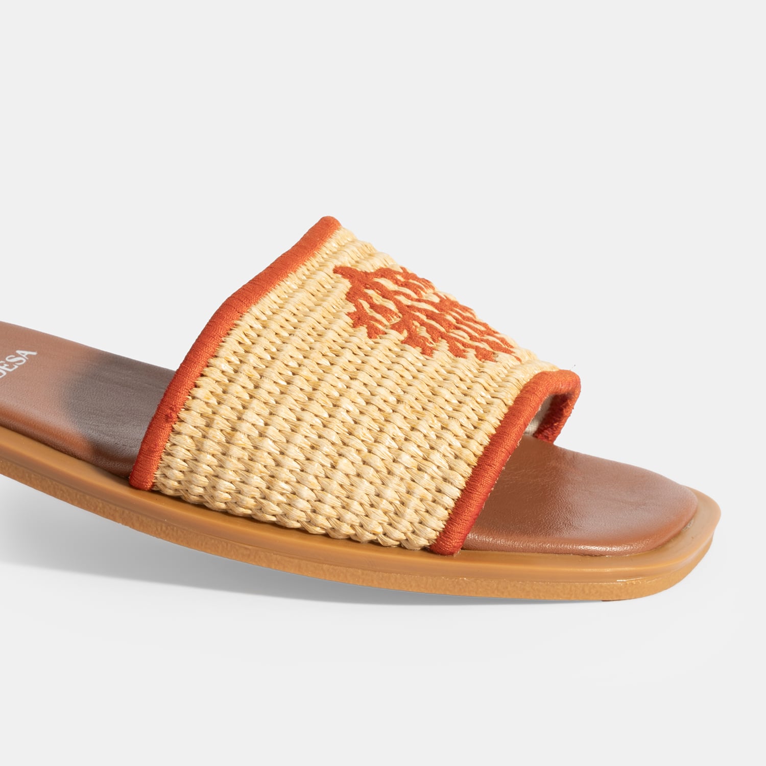 Hasır malzeme üzerine nakış detaylı %100 deri mostralı termo tabanlı terlik.