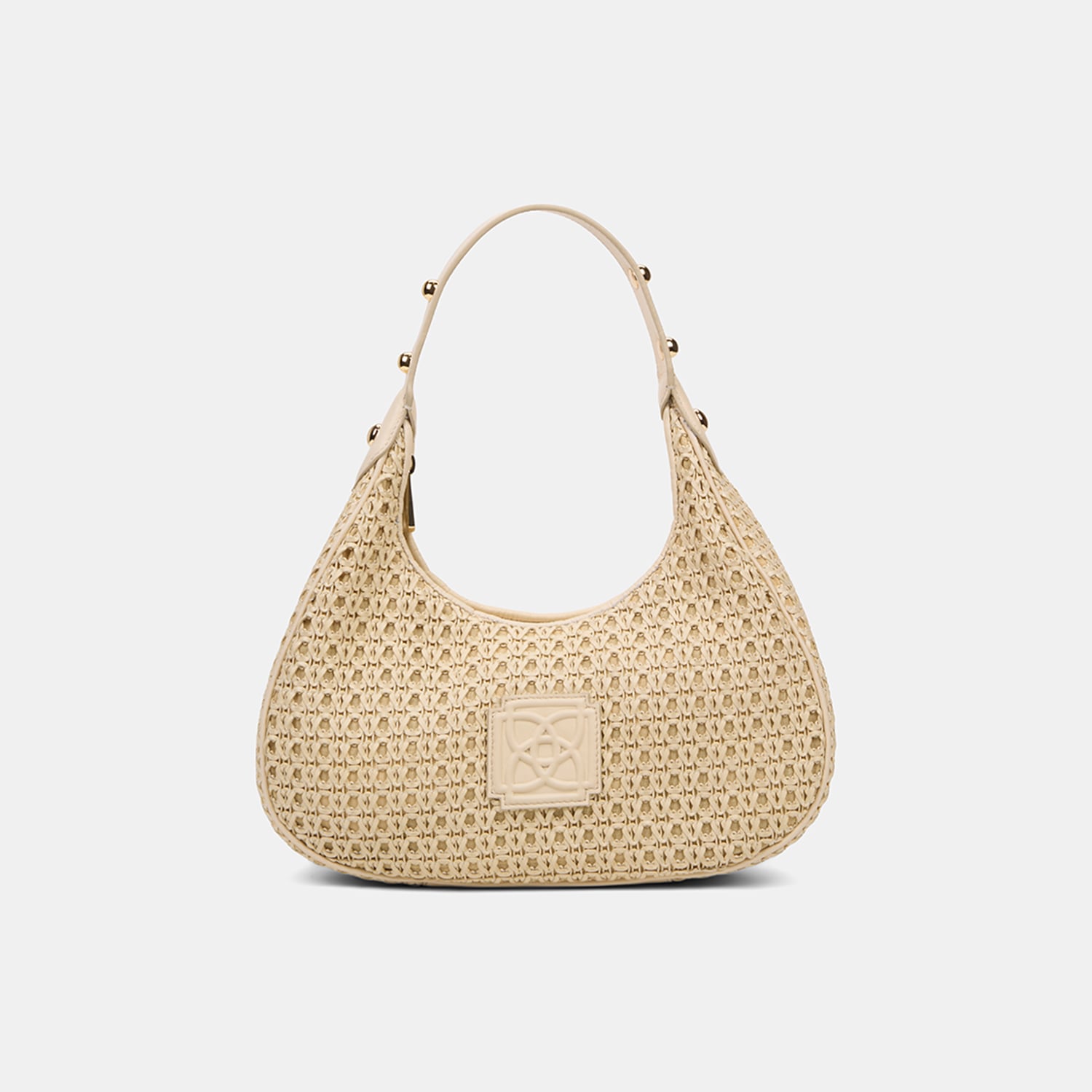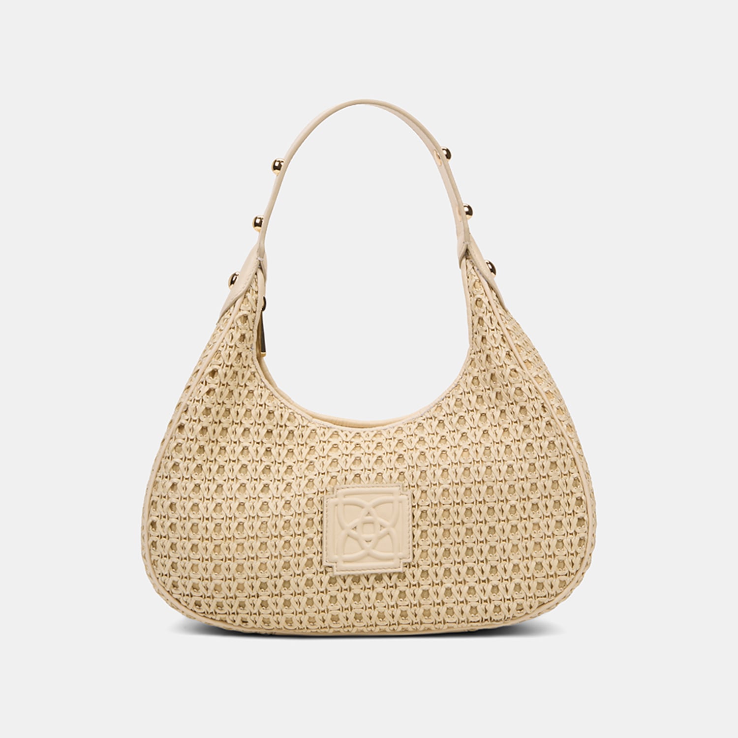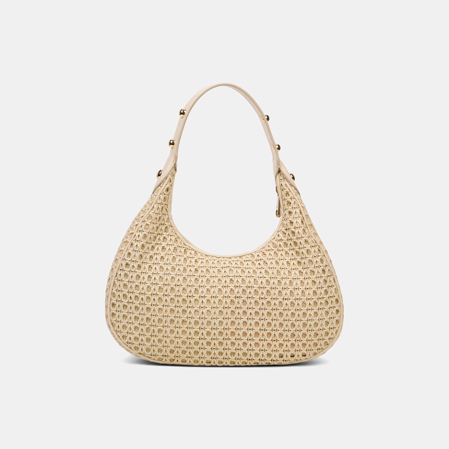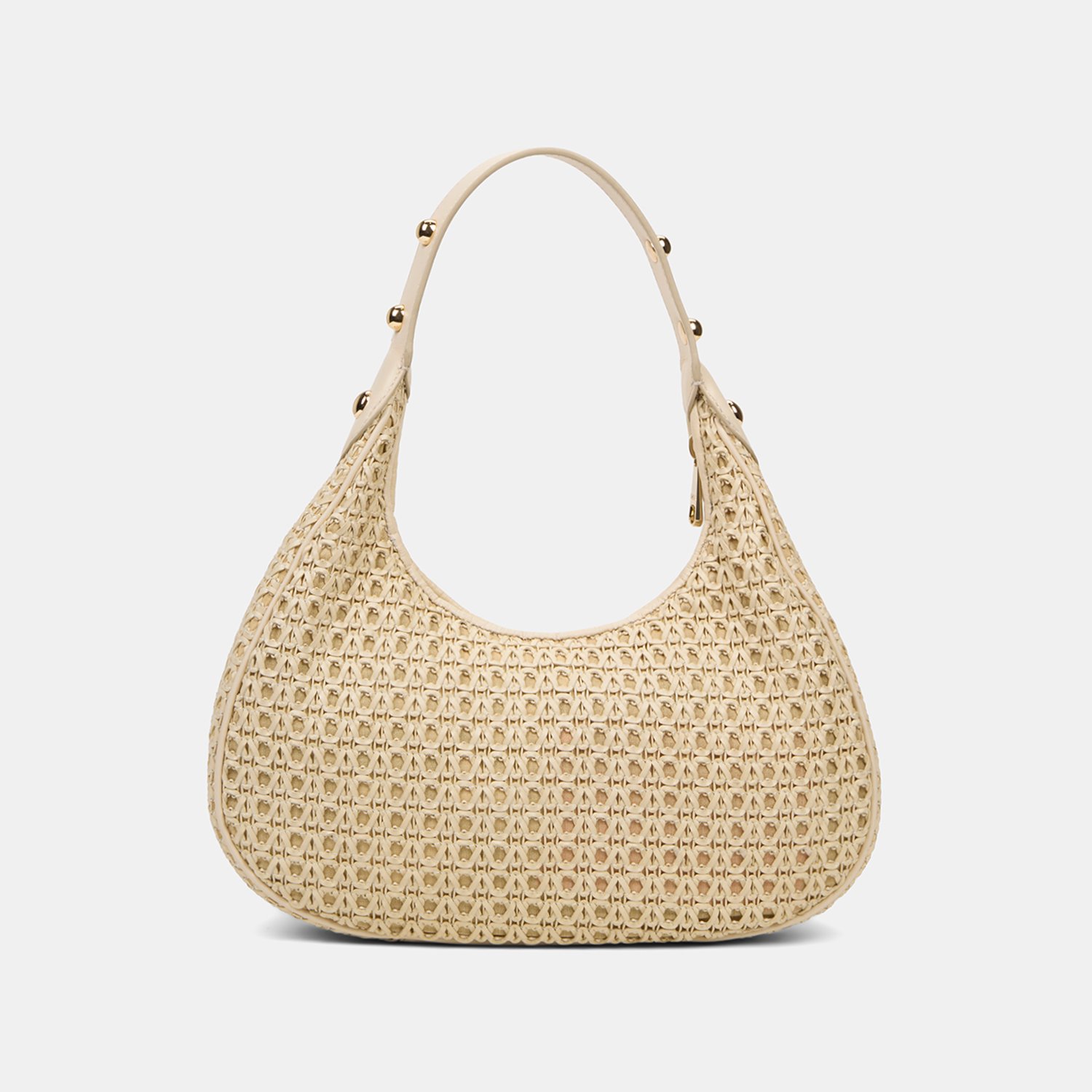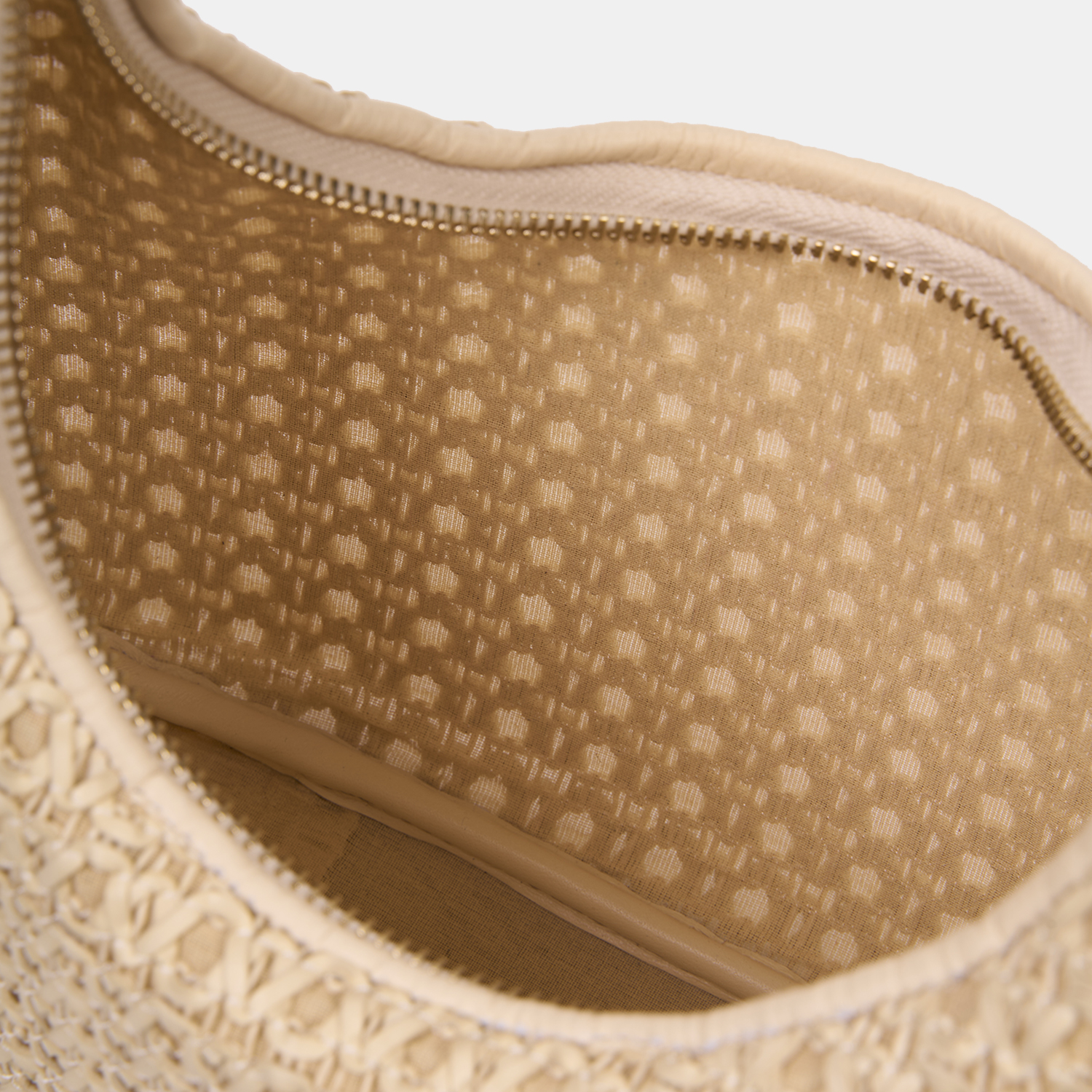 Kadın Bej Örgü Detaylı Gold Aksesuarlı Omuz Çantası