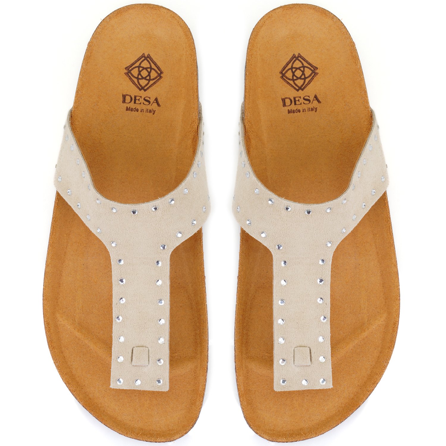 %100 süet, deri iç astarlı, deri iç tabanlı, parlak taş detaylı, mantar + tpu tabanlı,parmak arası kadın terlik.