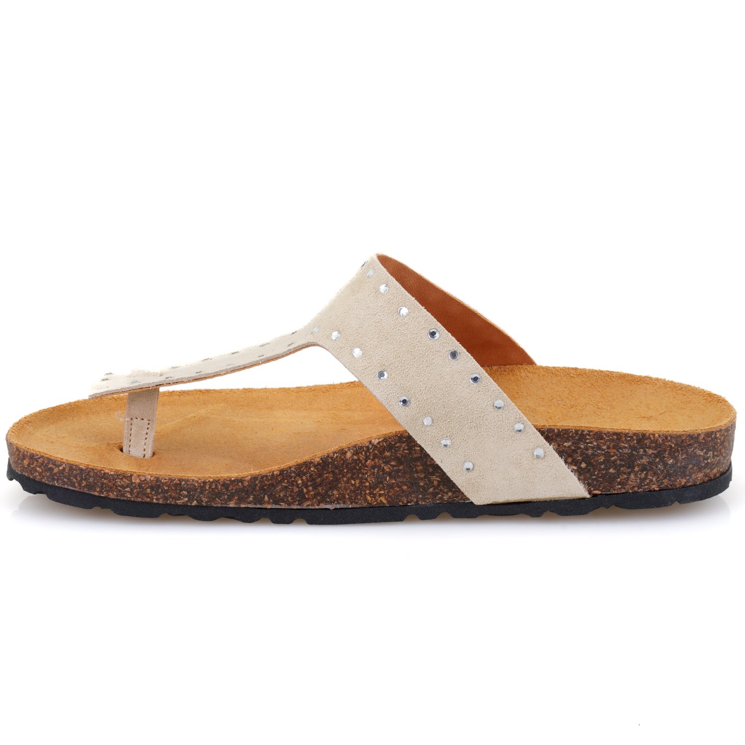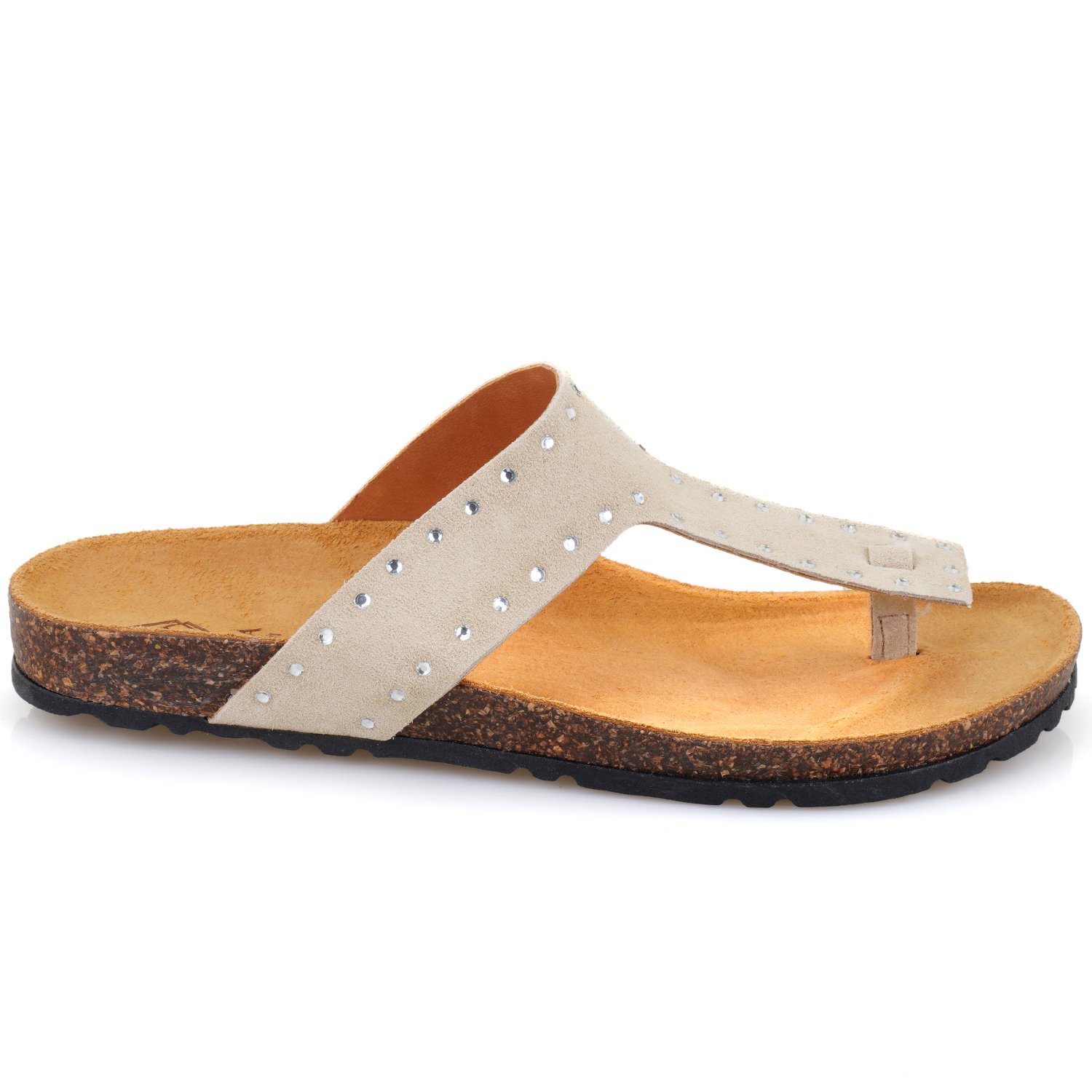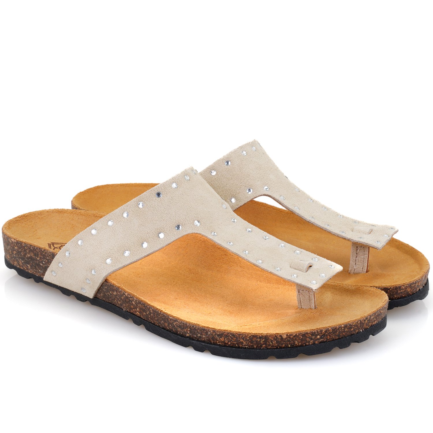 Kadın Bej Parmak Arası Süet Deri Terlik