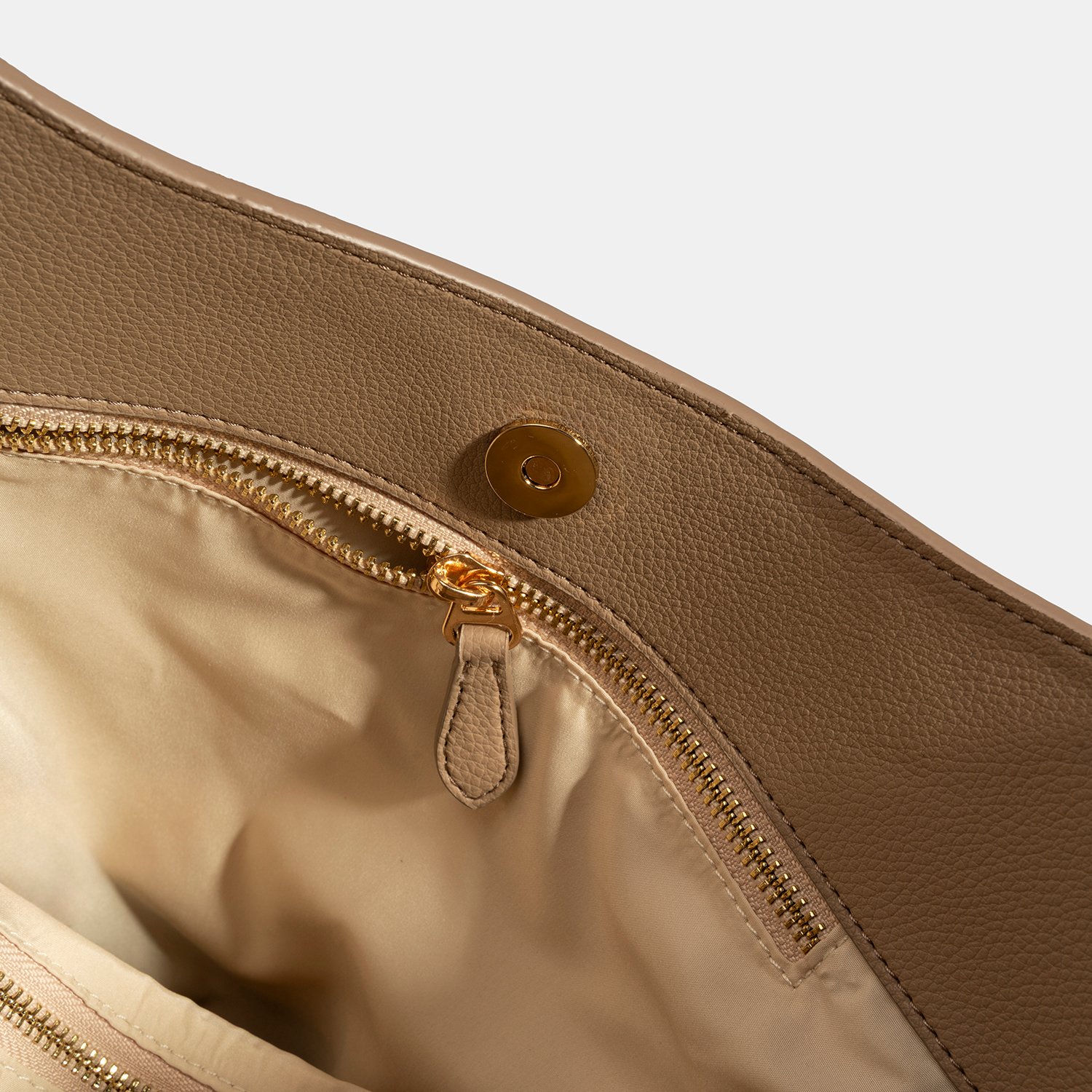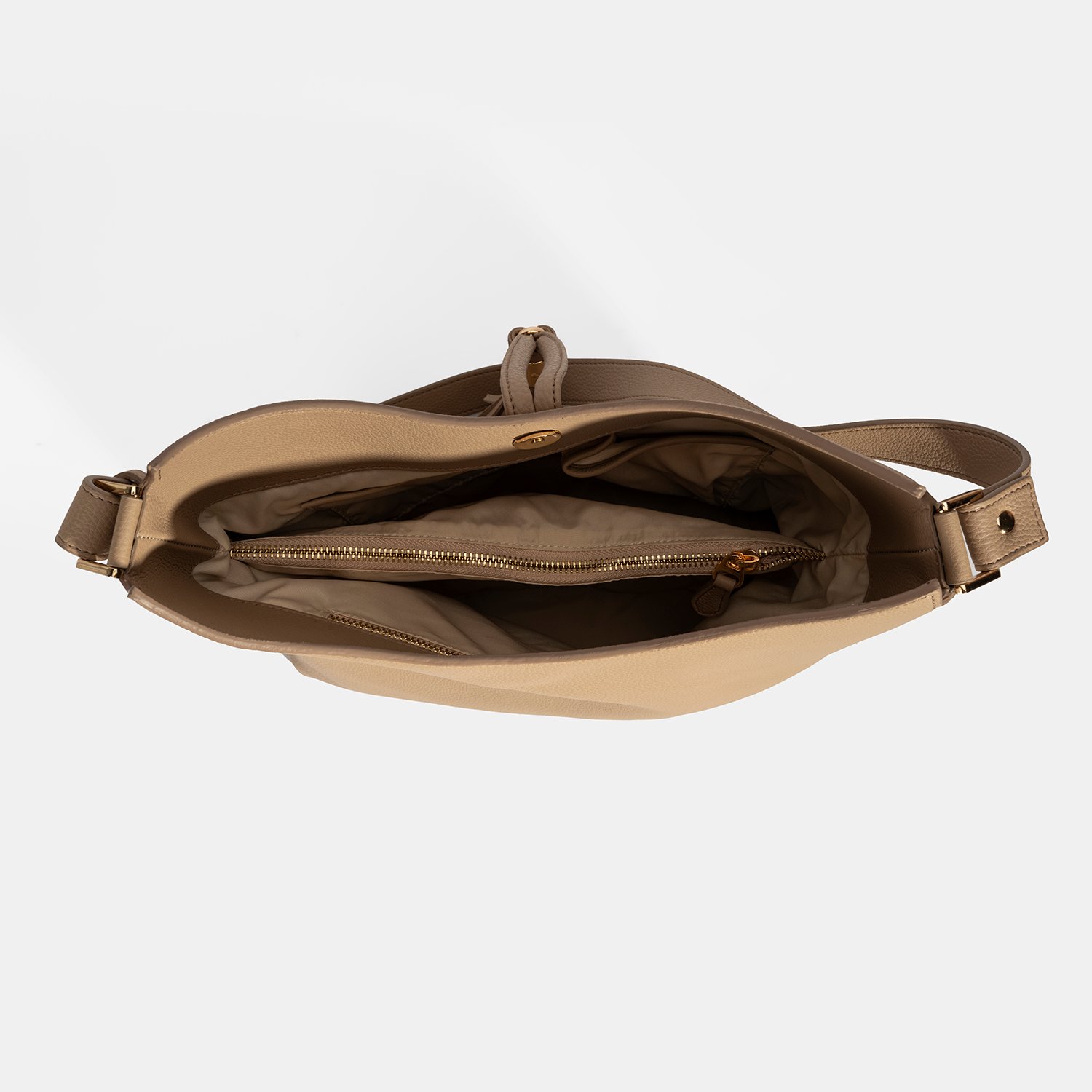 İç kısmında üç adet bölme yer alır; orta bölme fermuarlı olarak kullanılabilir.