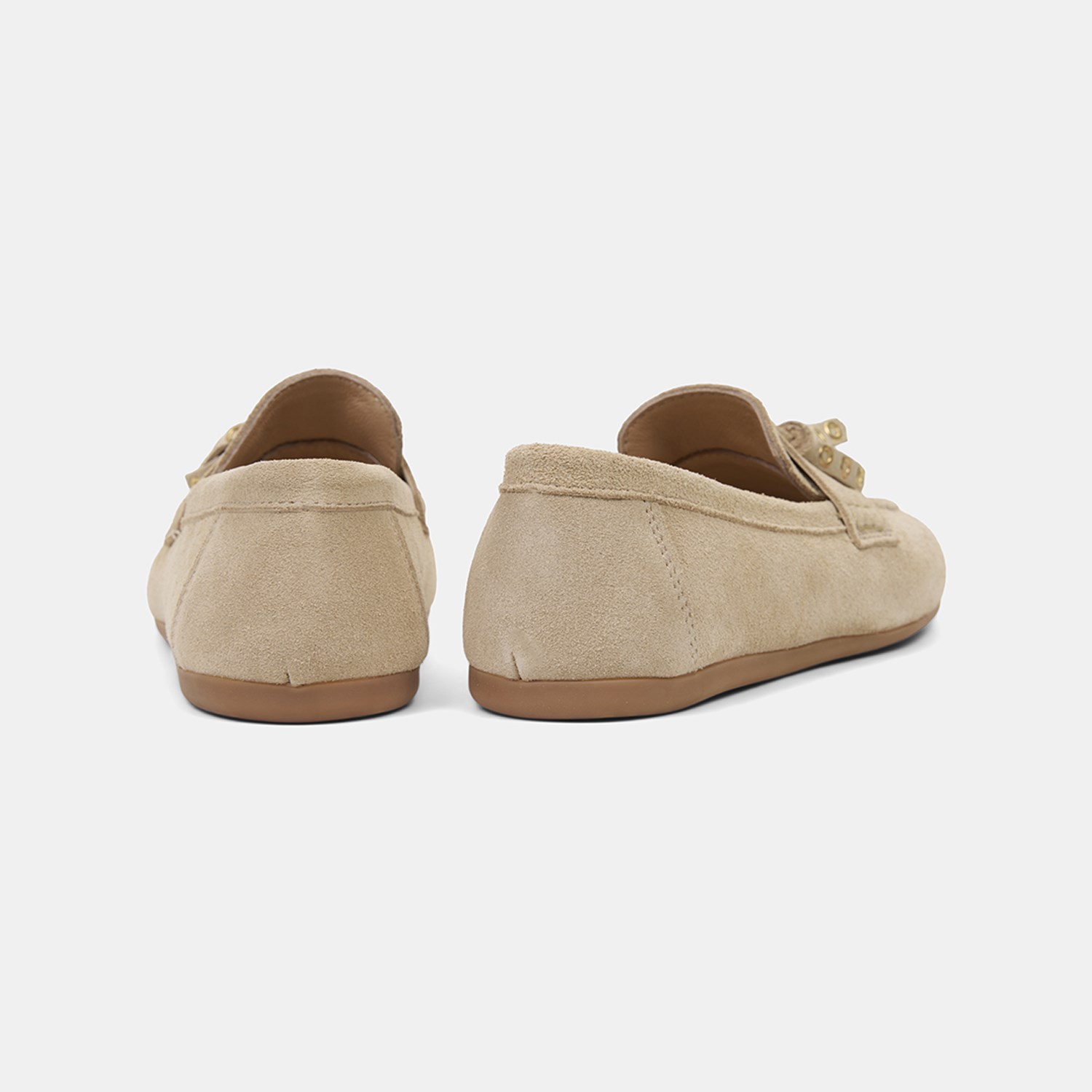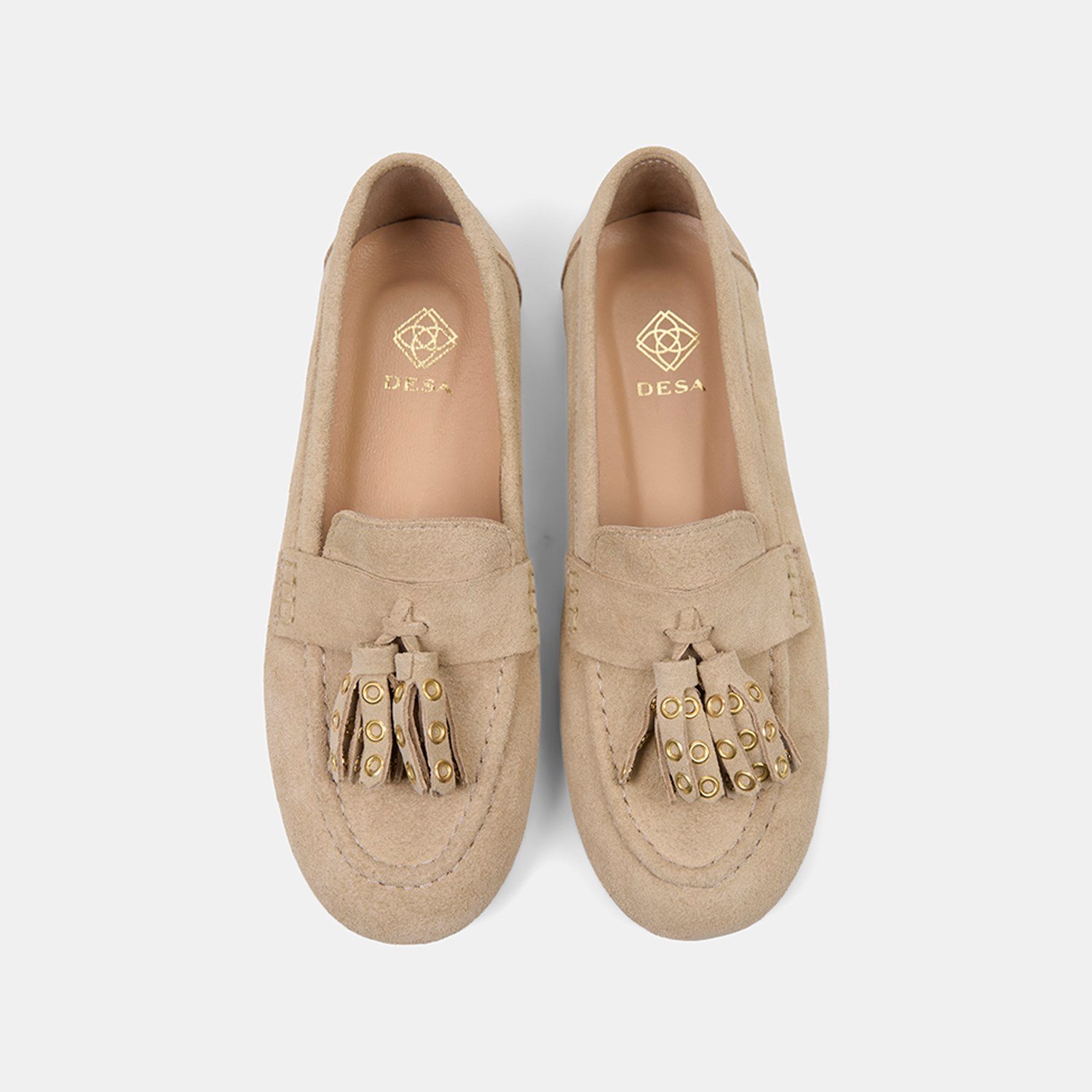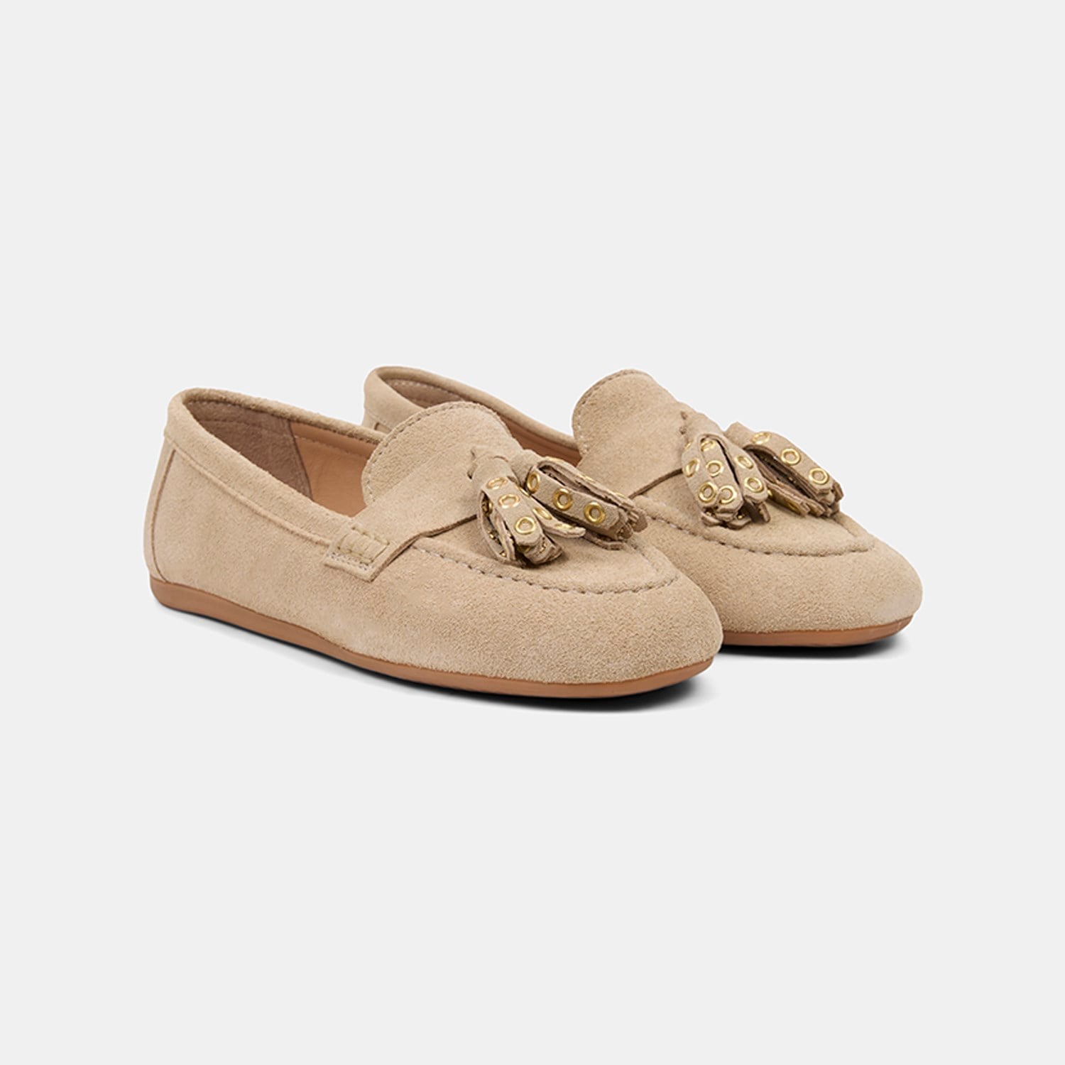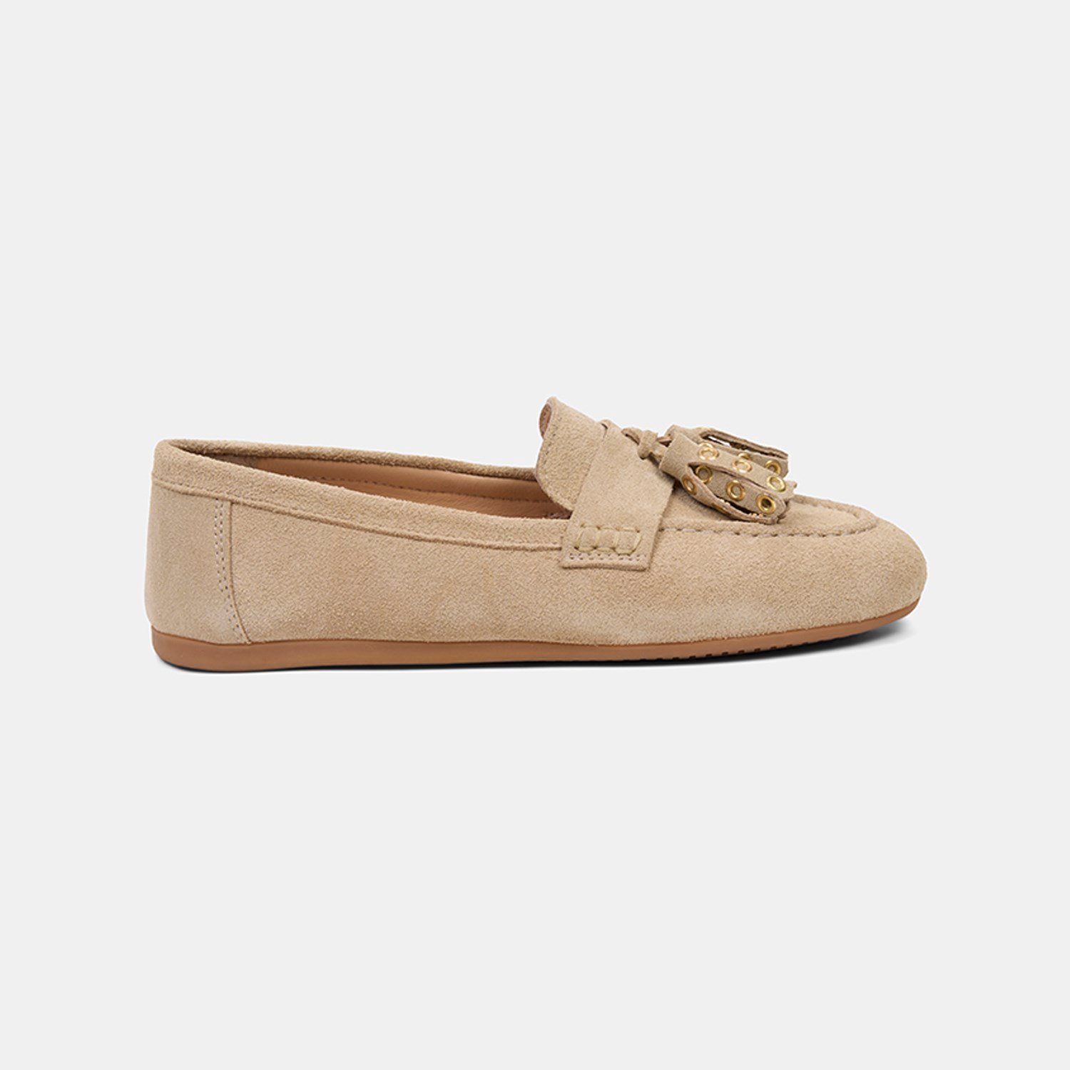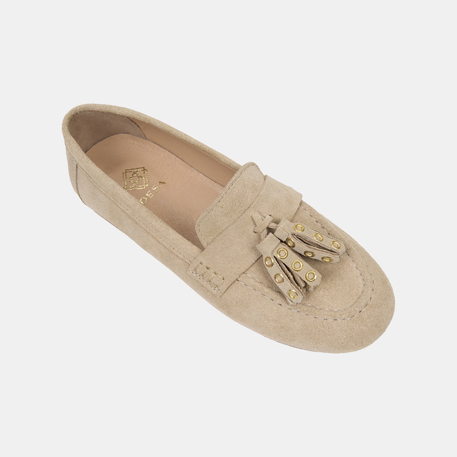 Kadın Bej Püskül Zımba Detaylı Süet Deri Loafer