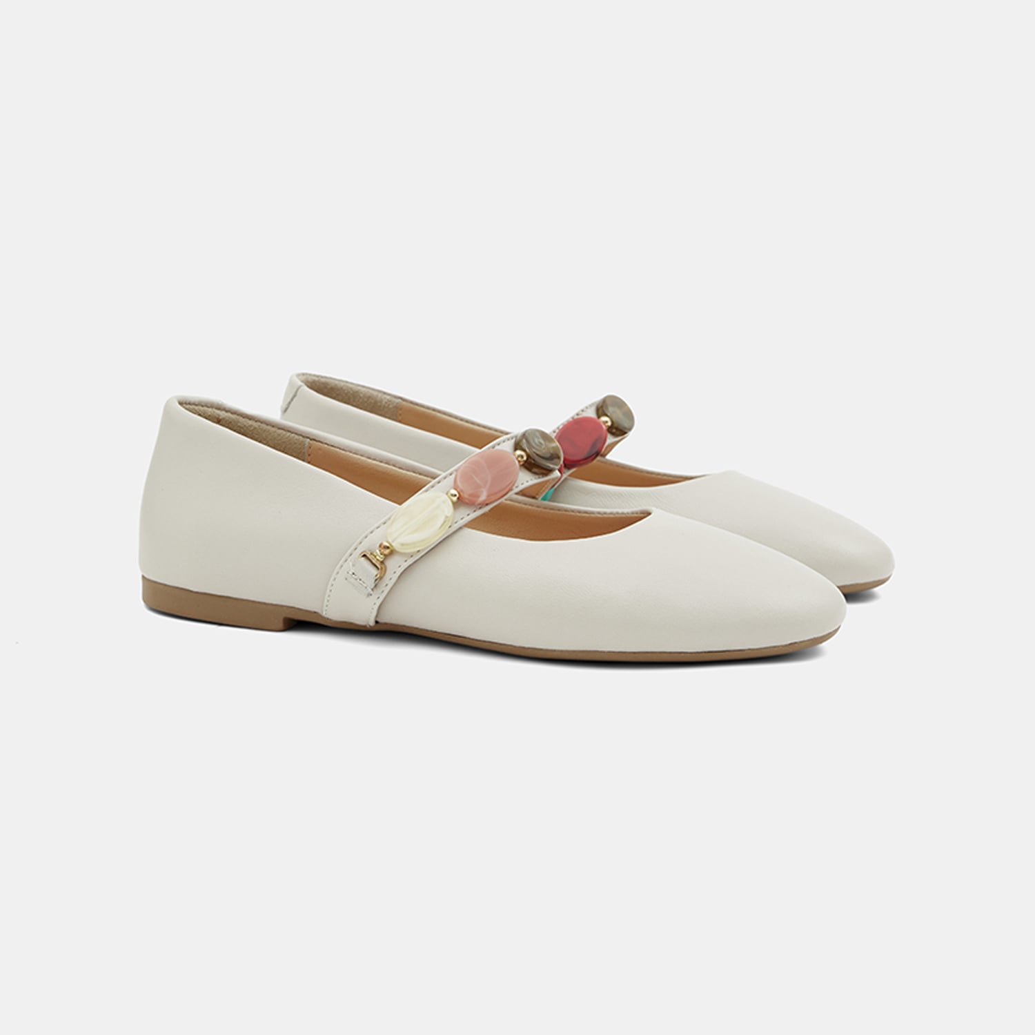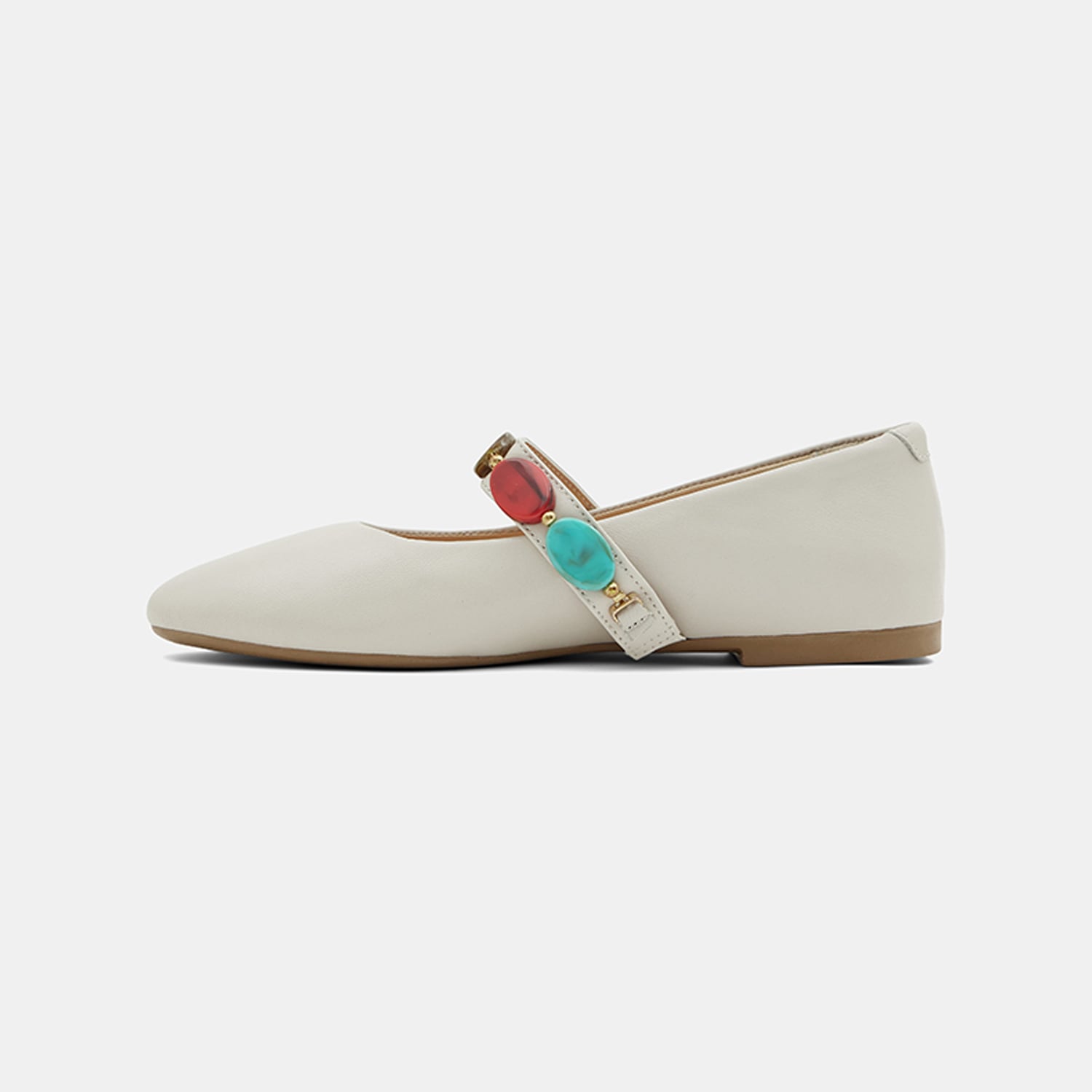 Kadın Bej Renkli Taş Aksesuarlı Deri Babet