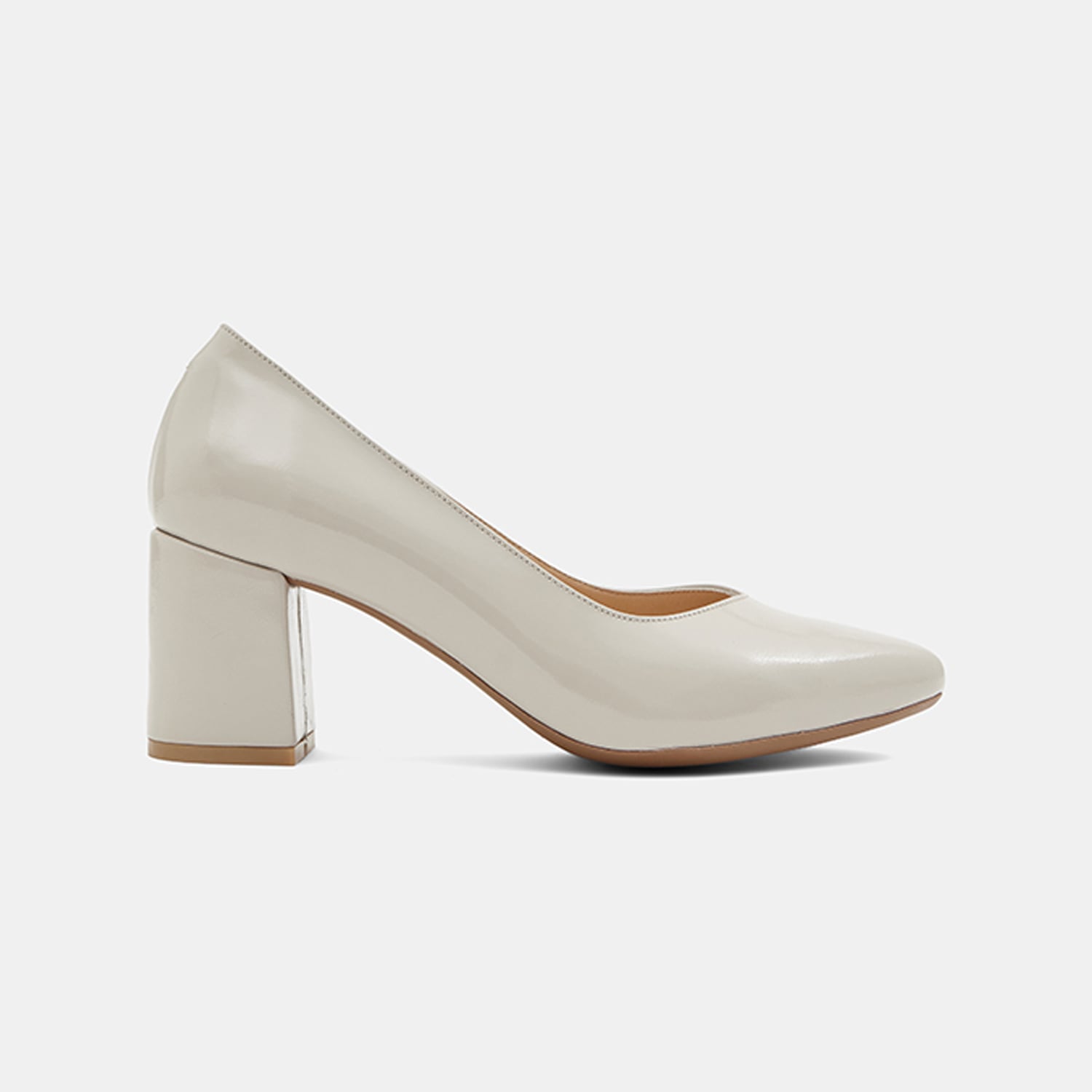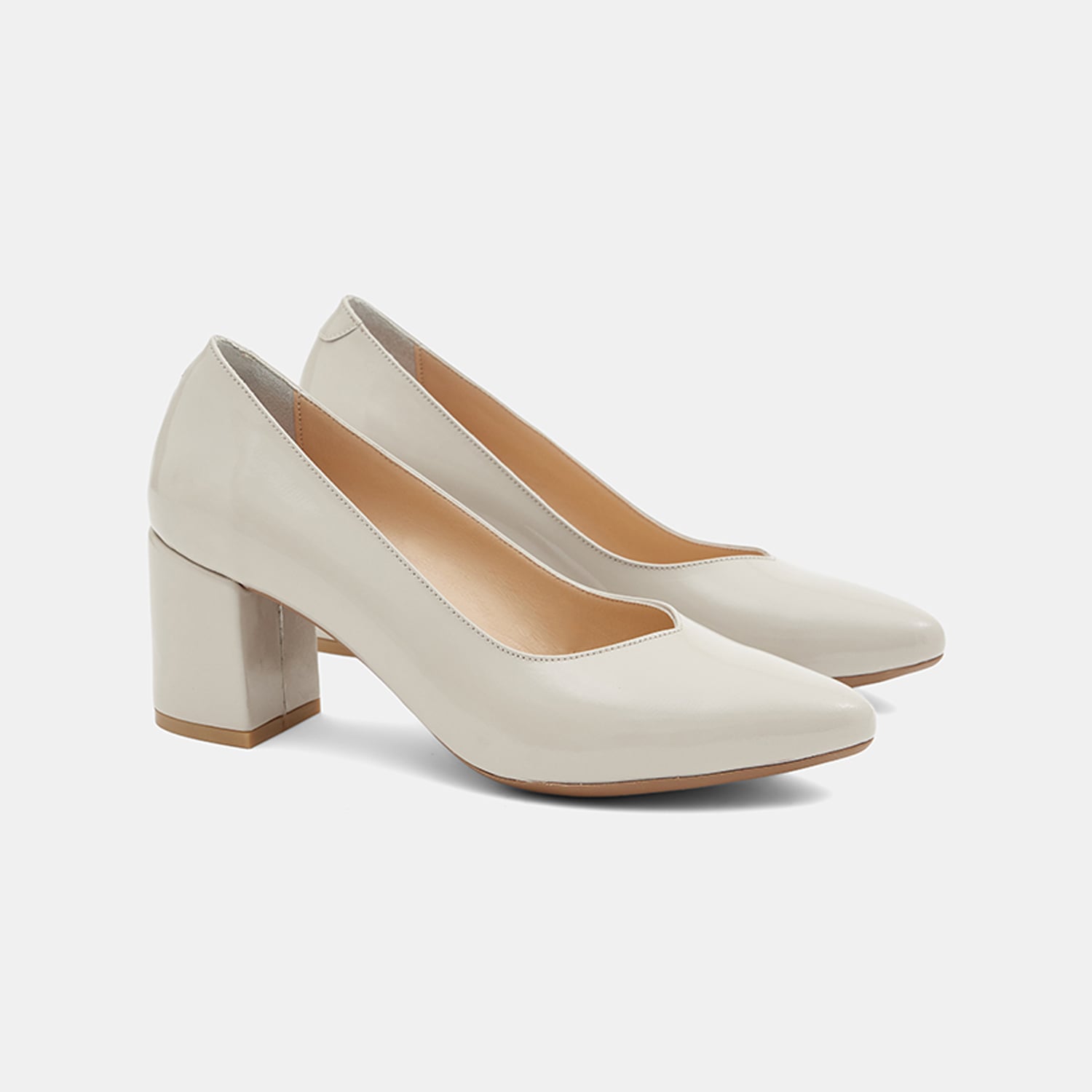Kadın Bej Rugan Deri Kalın Topuklu Ayakkabı