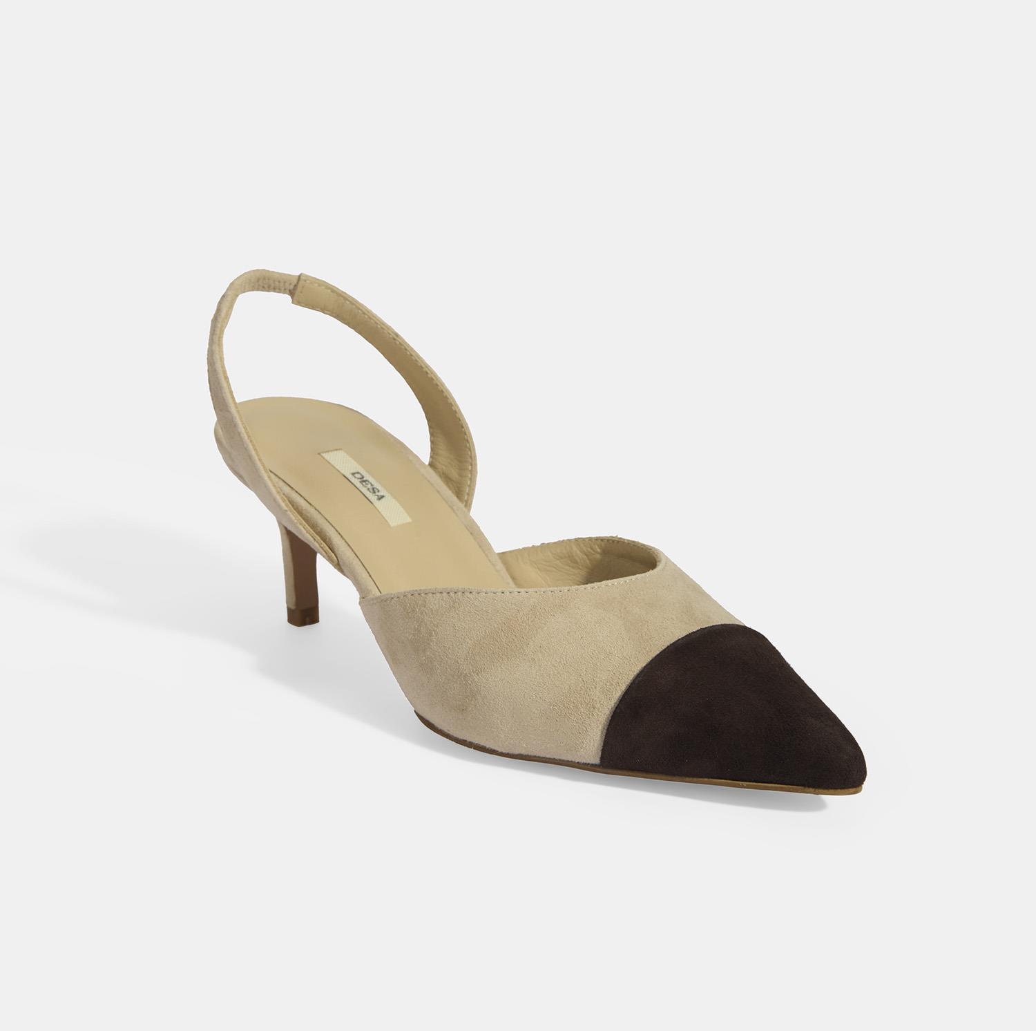 Kadın Bej Slingback Süet Topuklu Ayakkabı
