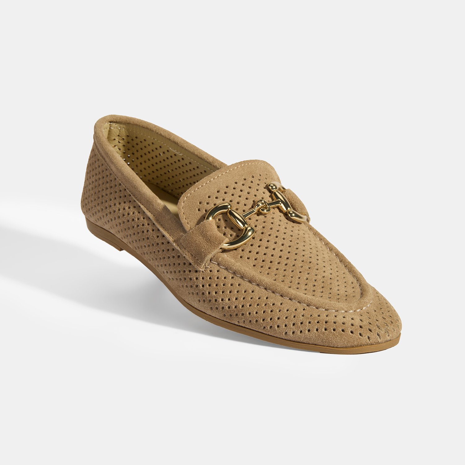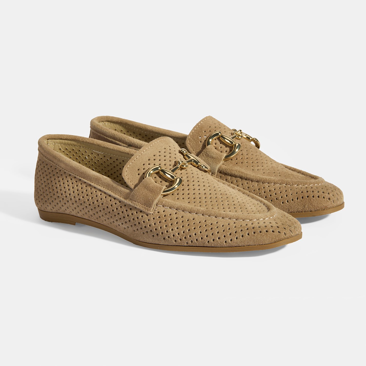 %100 süet deri, deri iç tabanlı, deri astarlı, metal aksesuar detaylı, termo tabanlı, kadın loafer.