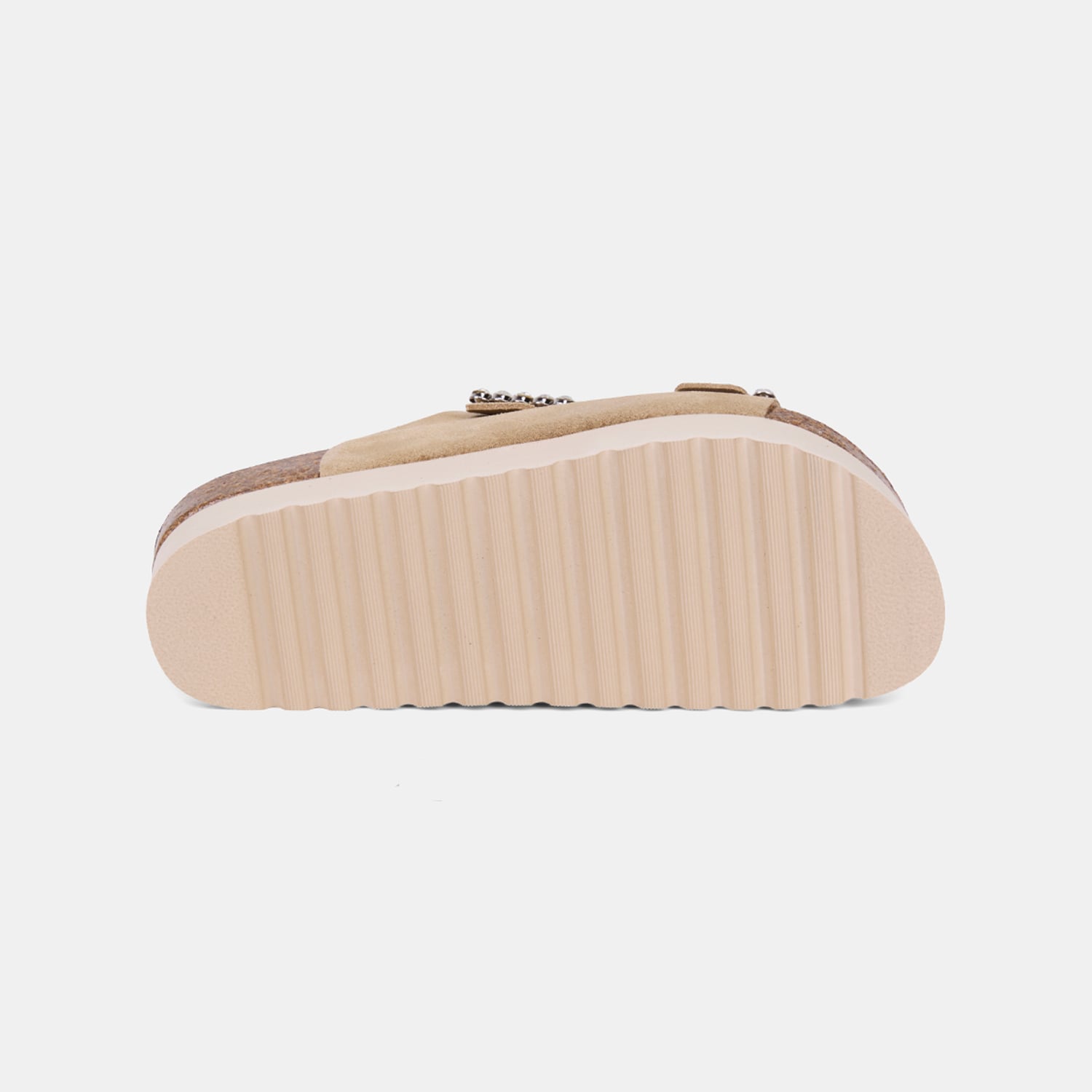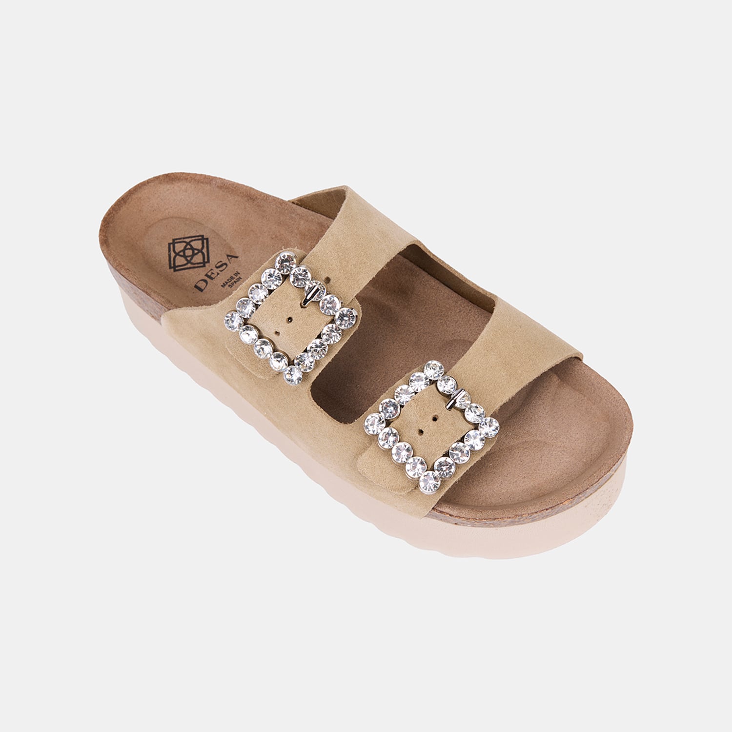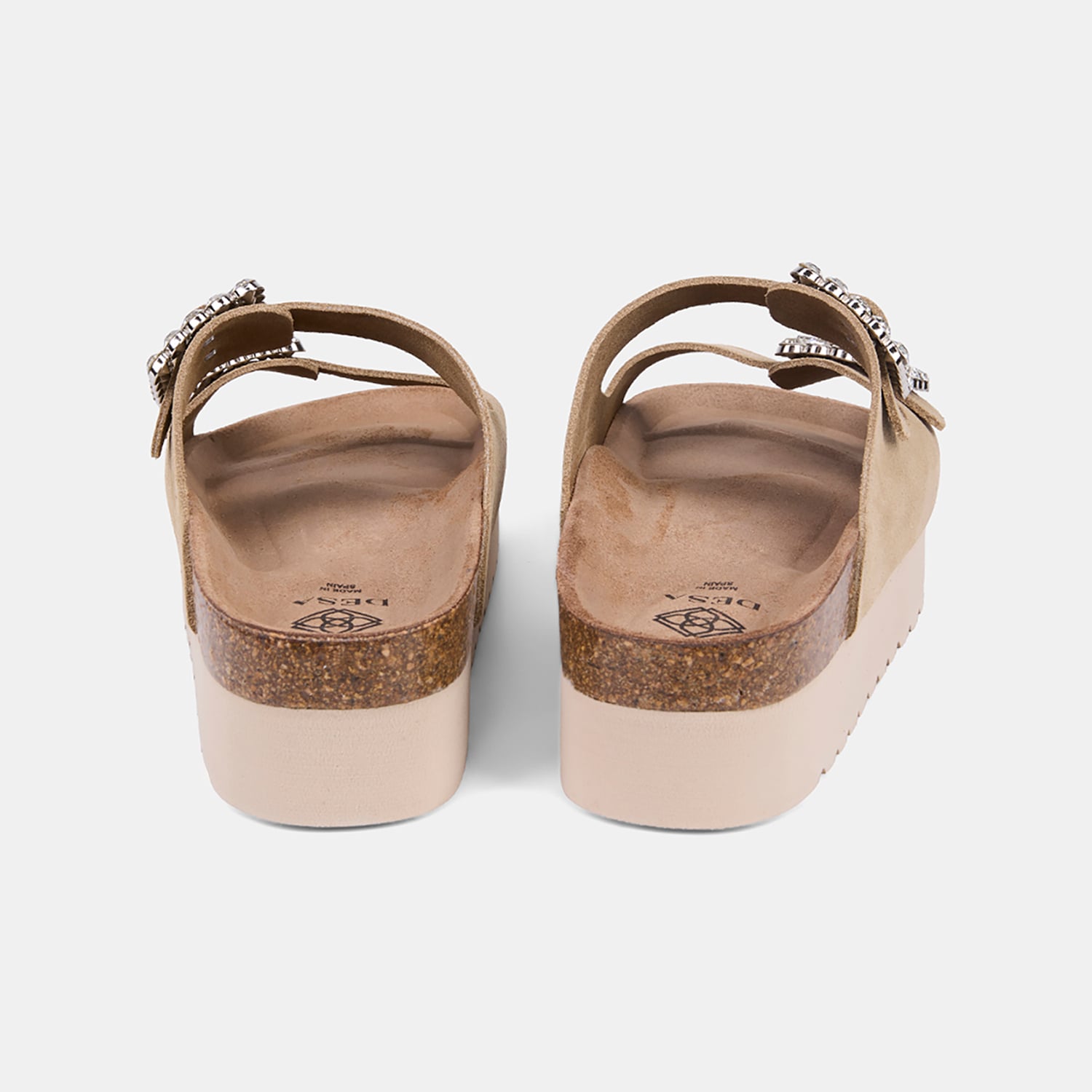 Kadın Bej Taşlı Toka Aksesuarlı Platform Topuklu Süet Terlik