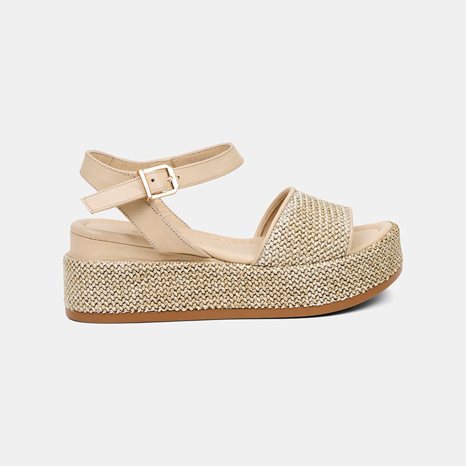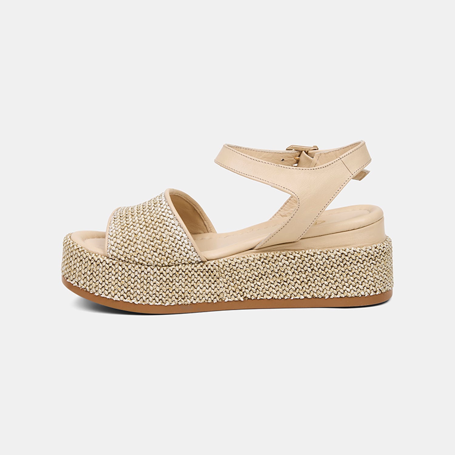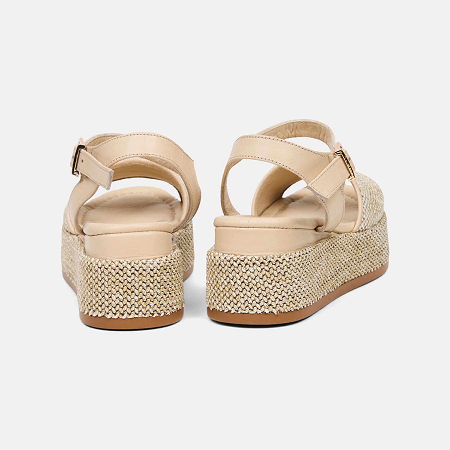 Hasır sargılı dolgu topuk tasarımı modele doğal bir bütünlük kazandırır.