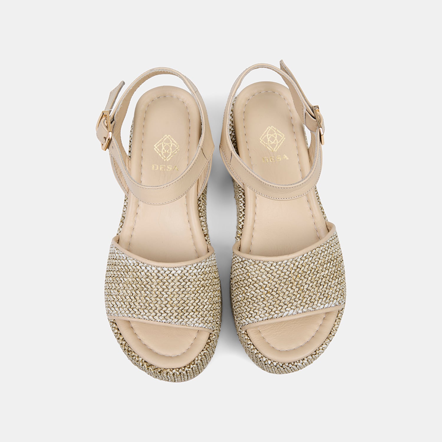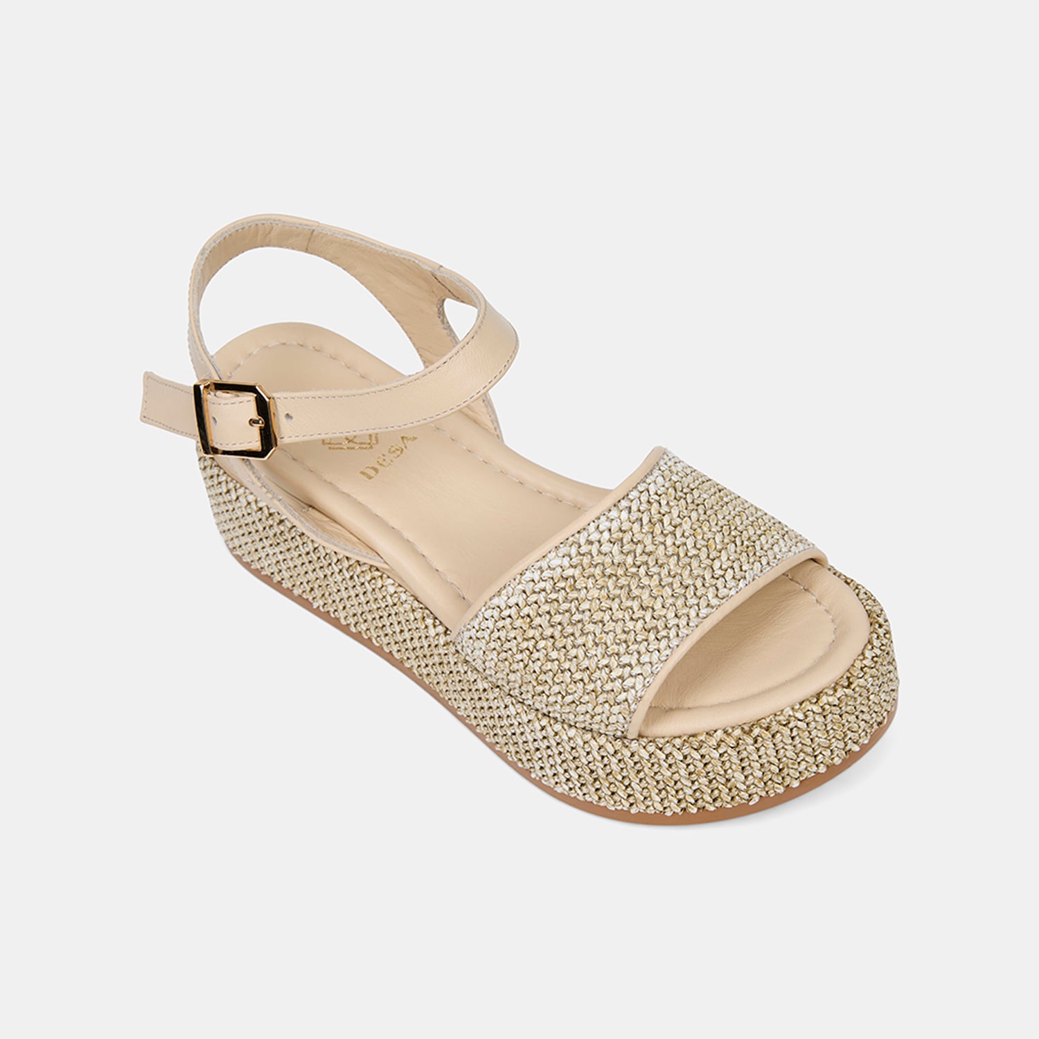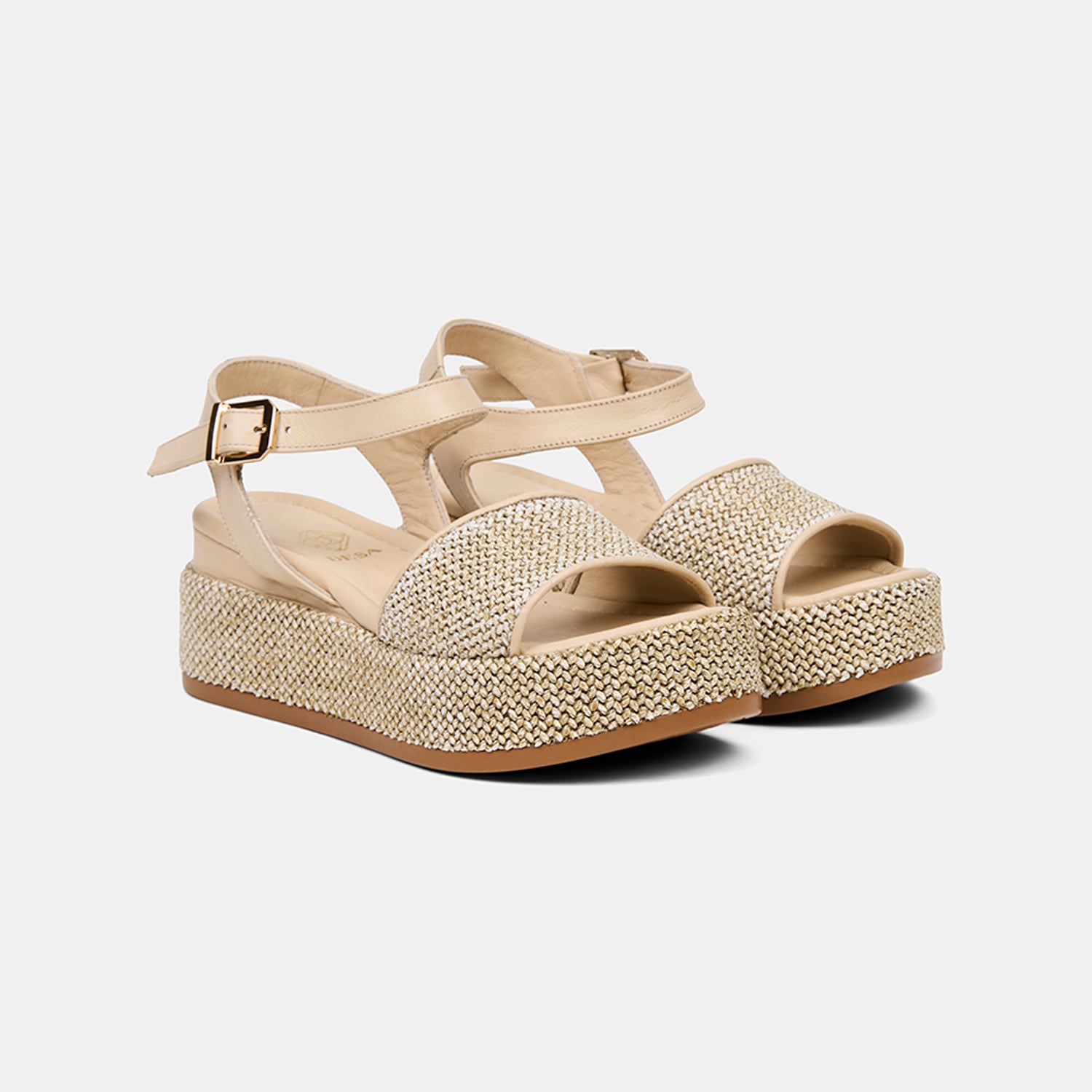 Hasır sargılı dolgu topuk tasarımı modele doğal bir bütünlük kazandırır.