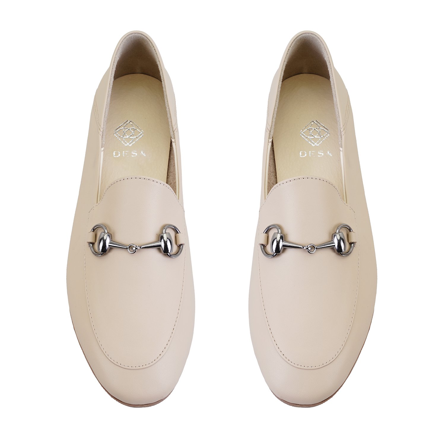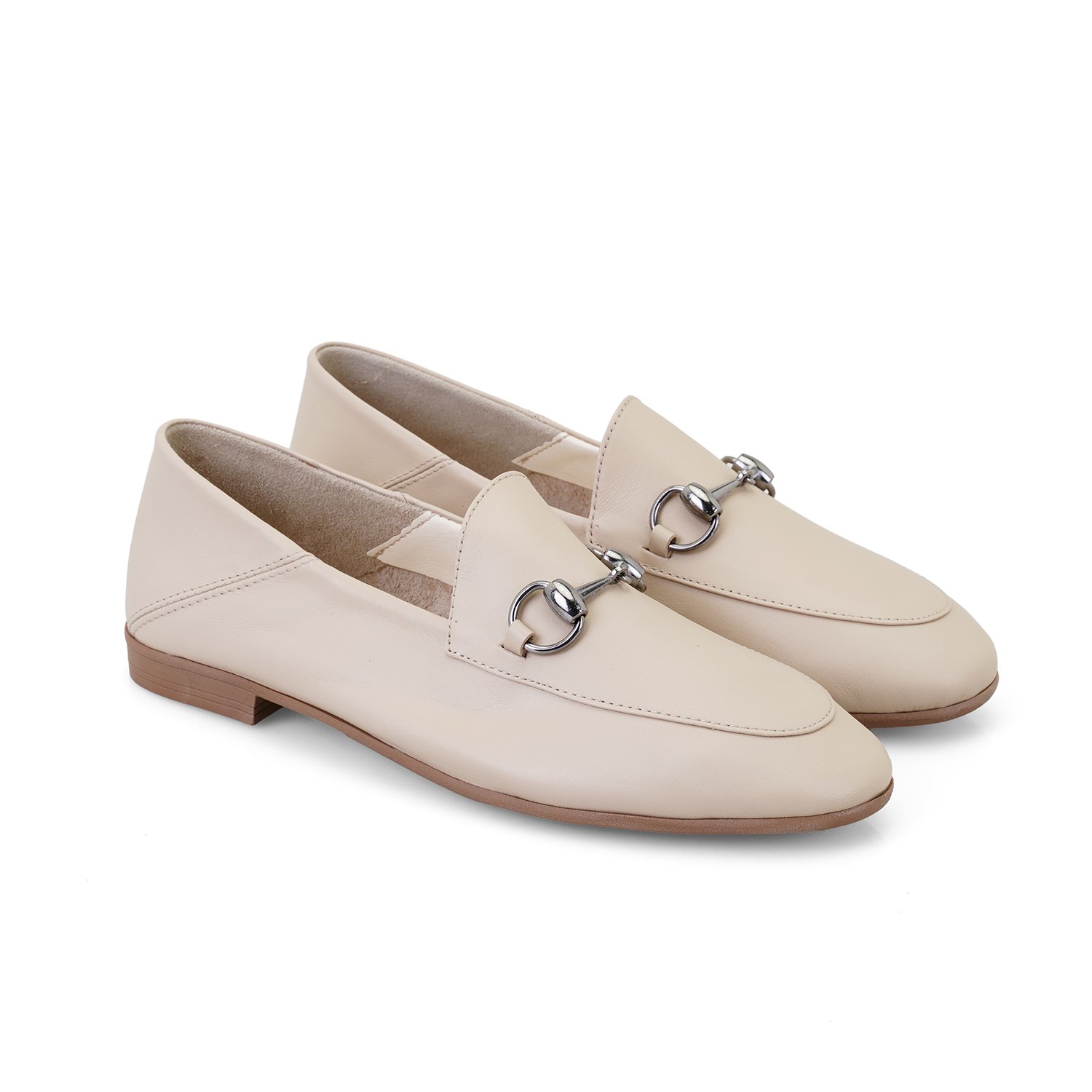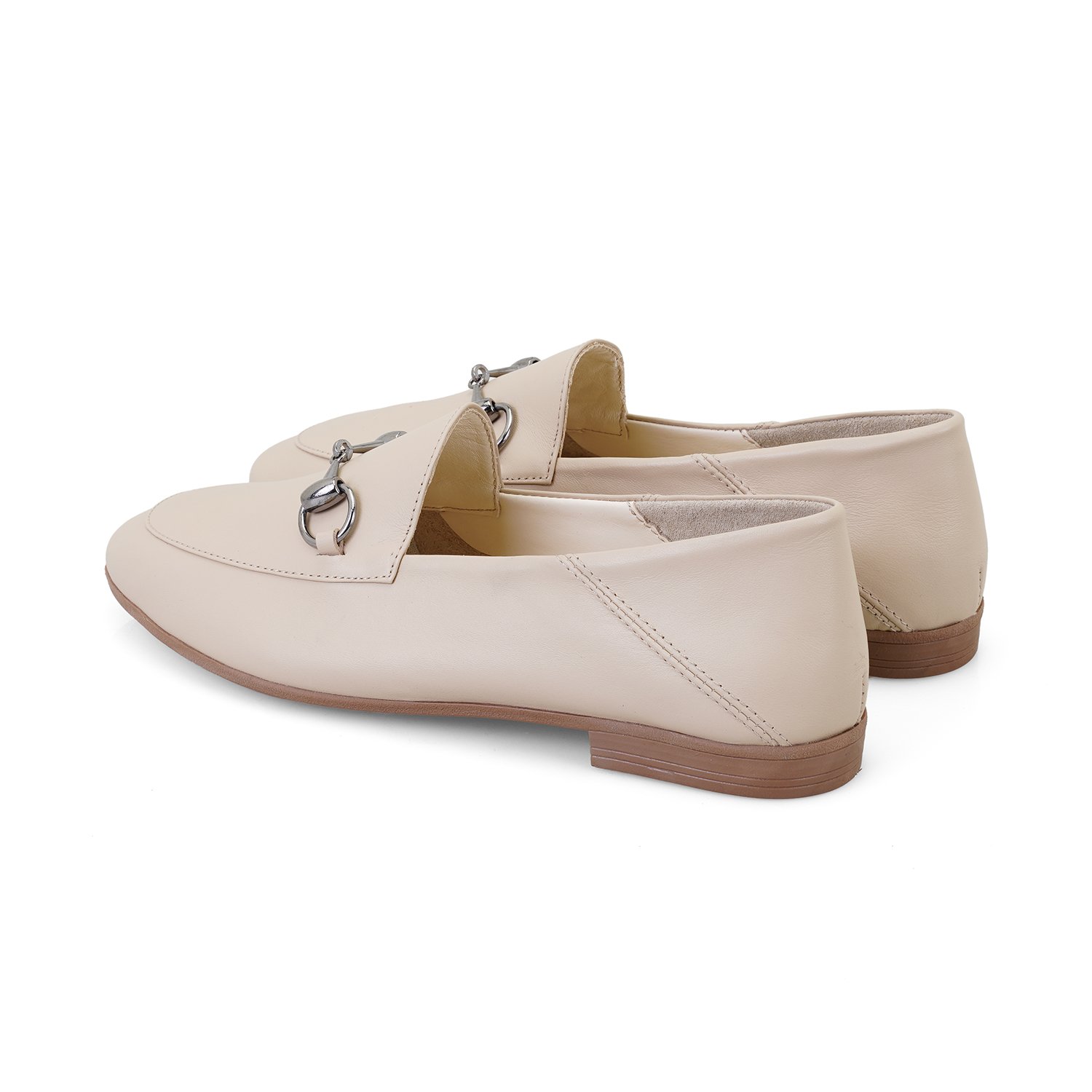 Kadın Bej Toka Aksesuarlı Deri Babet