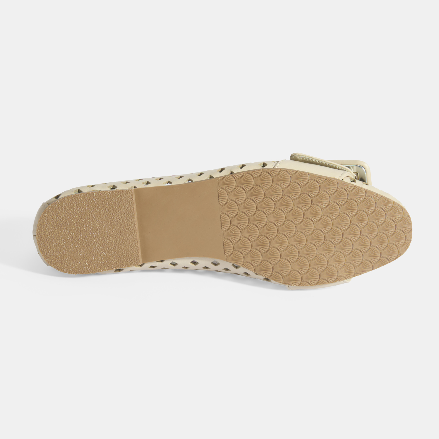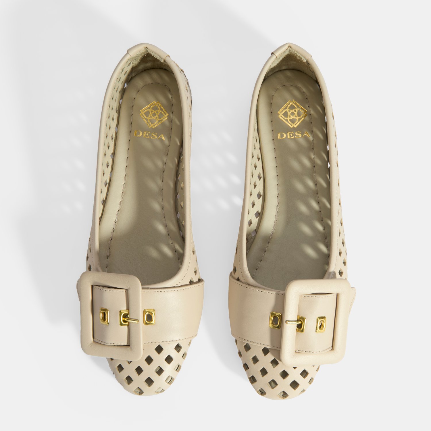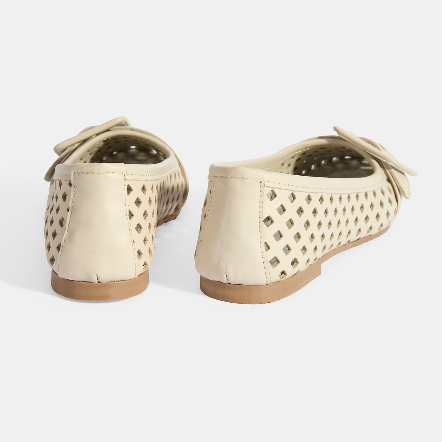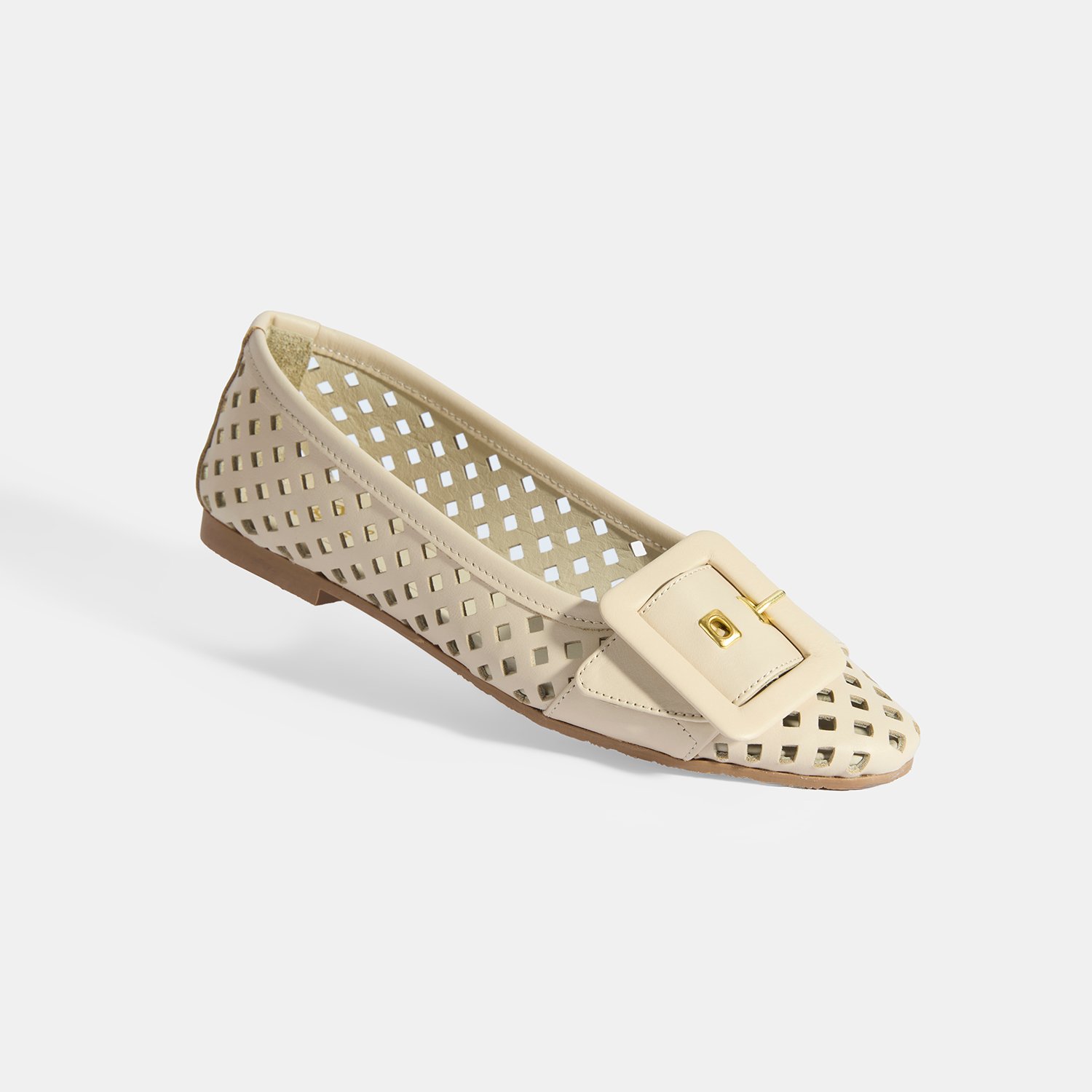 Kadın Bej Toka Aksesuarlı Perforeli Deri Babet
