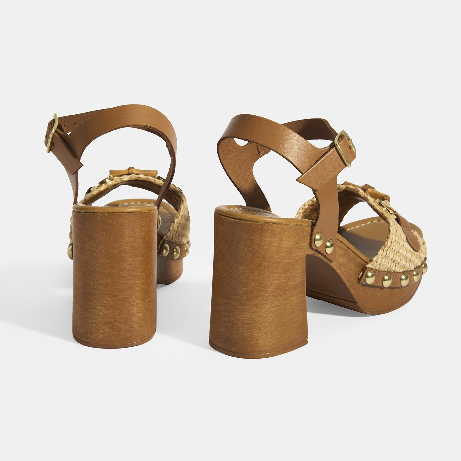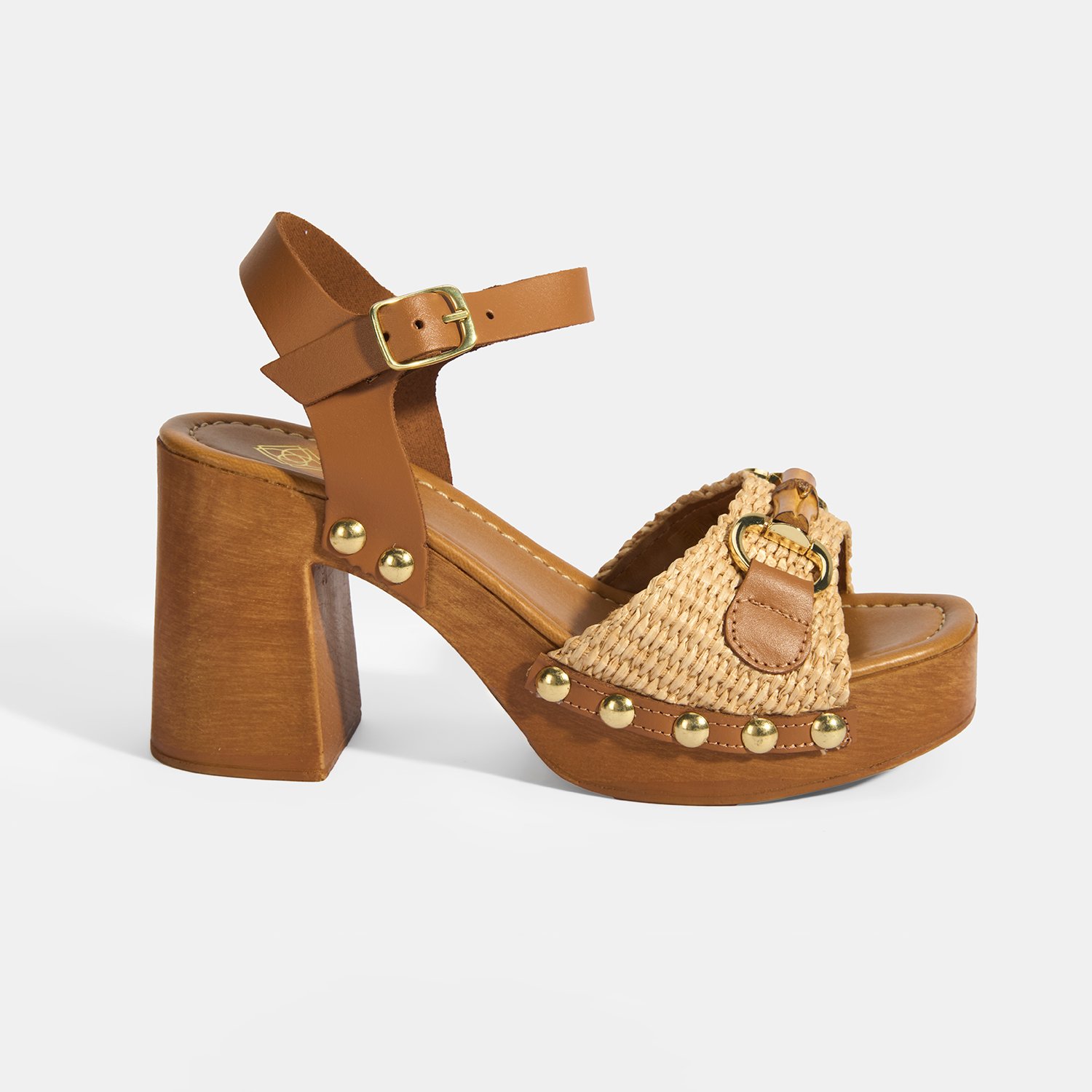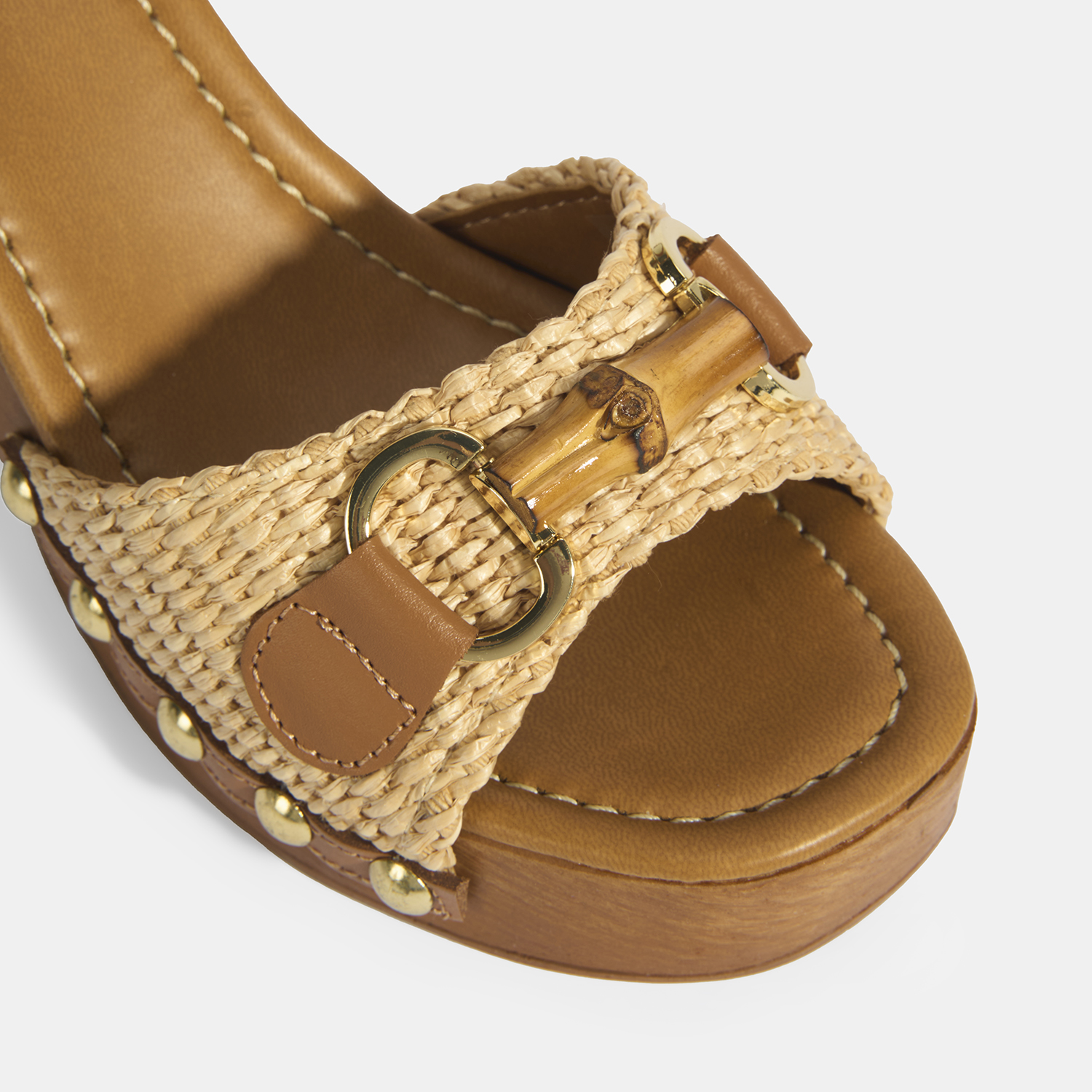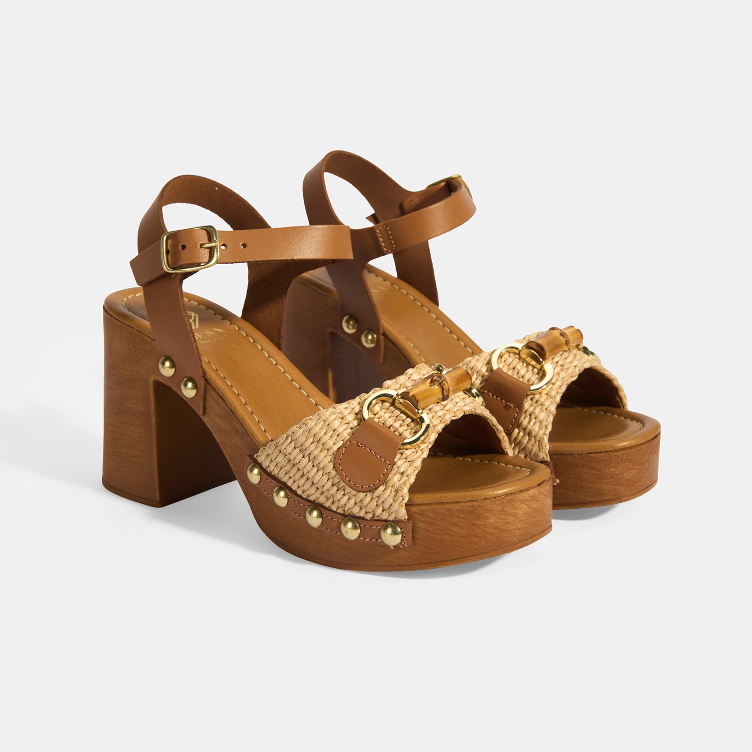 %60 deri, %40 rafya malzemeden üretilmiştir, deri astarlı, pu iç tabanlı, pu tabanlı, ayarlanabilir metal tokalı, kemik aksesuar toka deatylı, kadın topuklu sandalet.