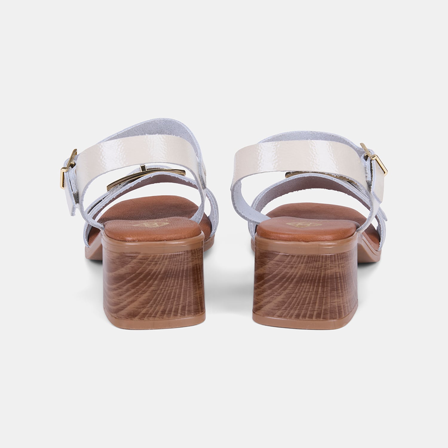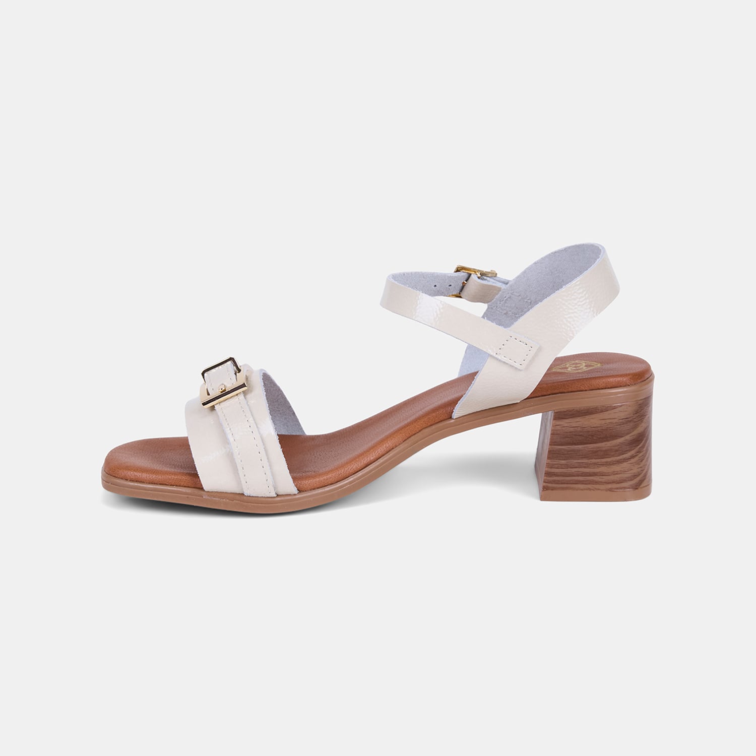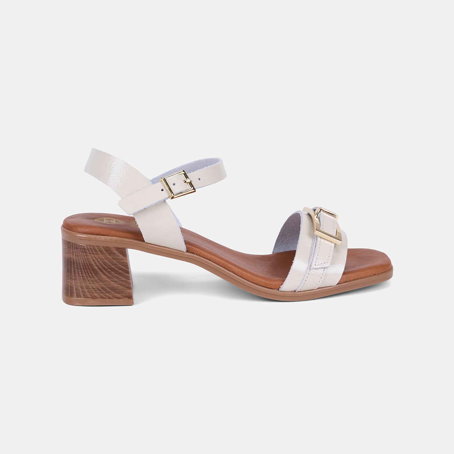 Kadın Bej Tokalı Kalın Topuklu Rugan Deri Sandalet