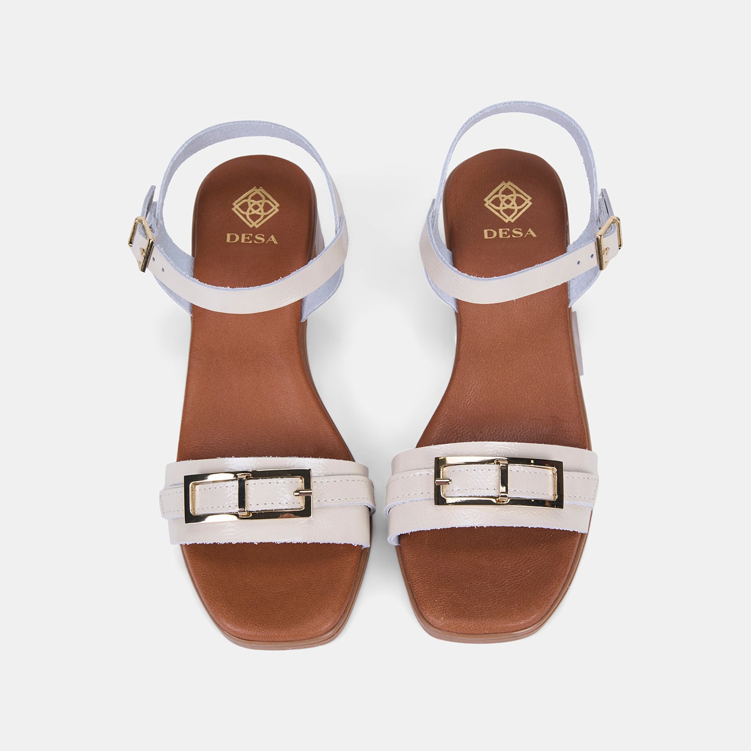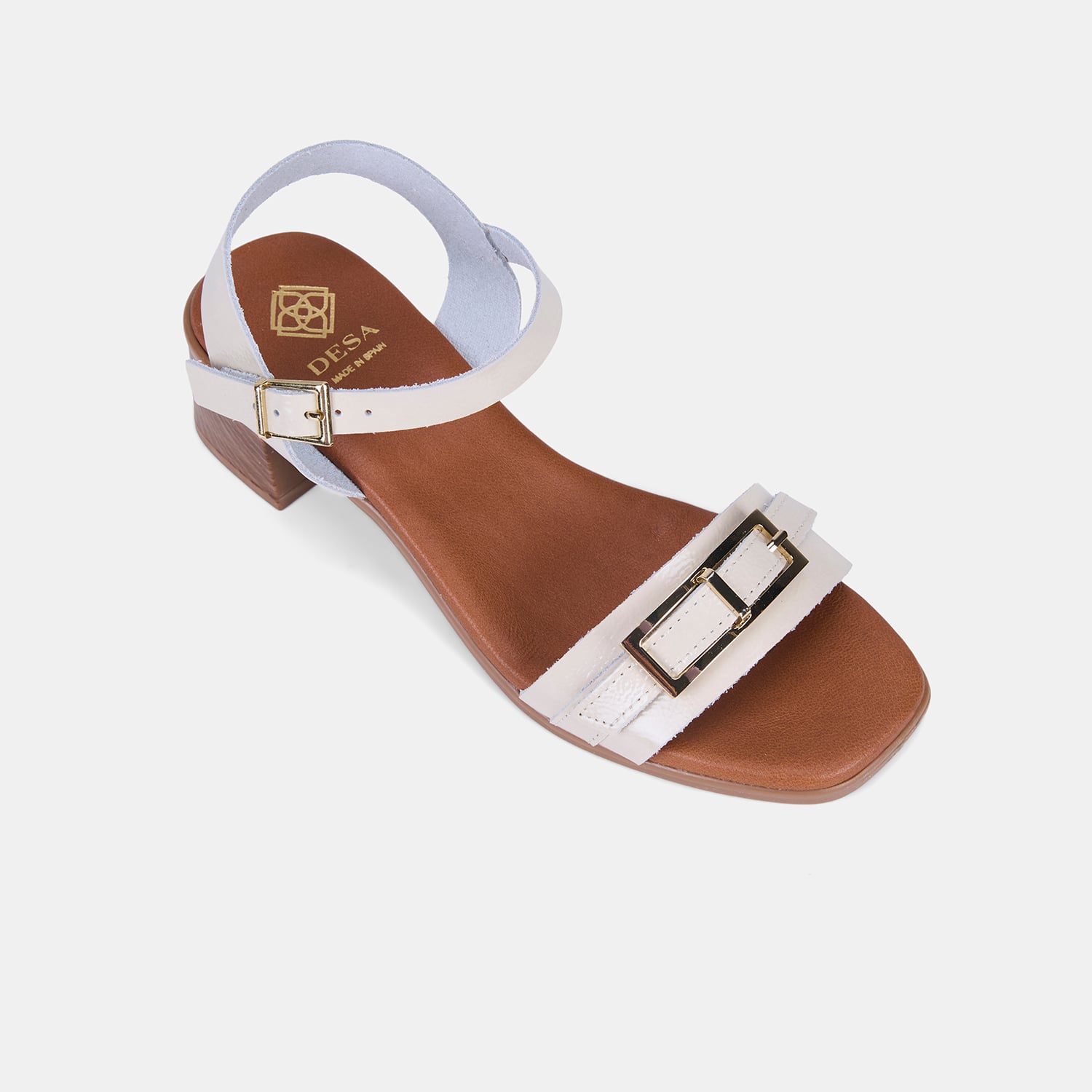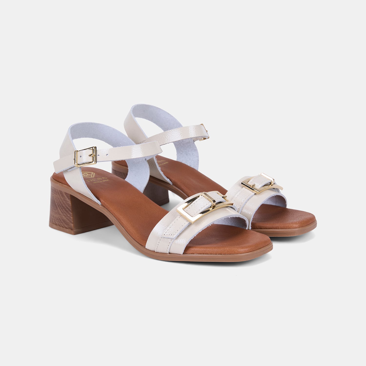Kadın Bej Tokalı Kalın Topuklu Rugan Deri Sandalet