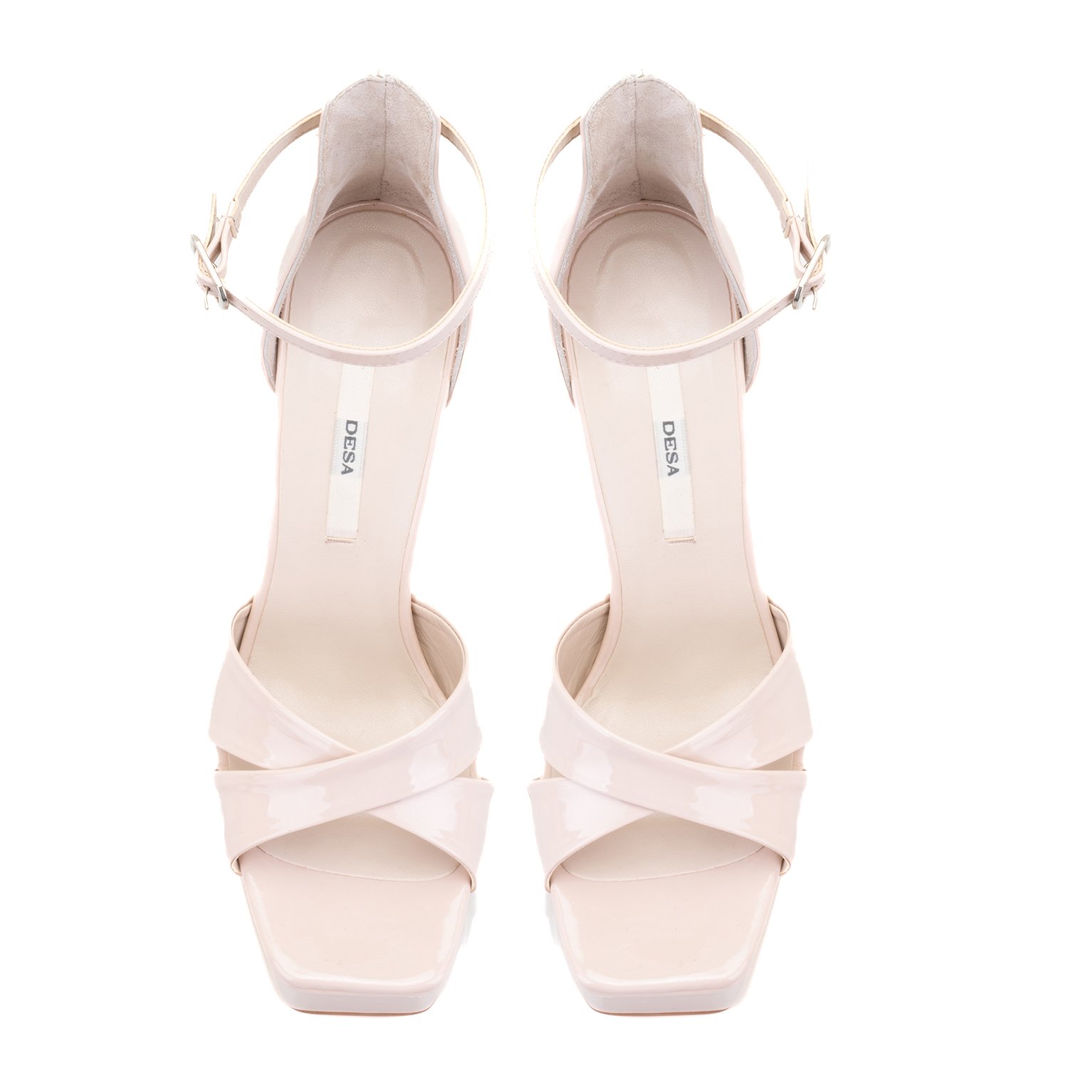 Pu iç astarlı, pu iç tabanlı, neolit tabanlı, platform tabanlı topuklu kadın sandalet.