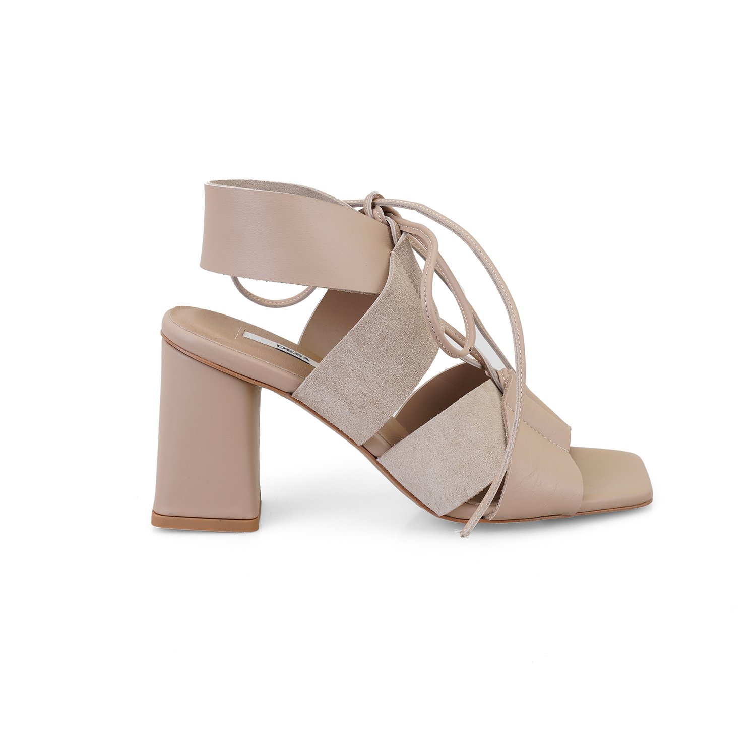 %100 deri, bağcık detaylı, iç astarlı, mostra deri, neolit taban, kadın topuklu süet deri sandalet.