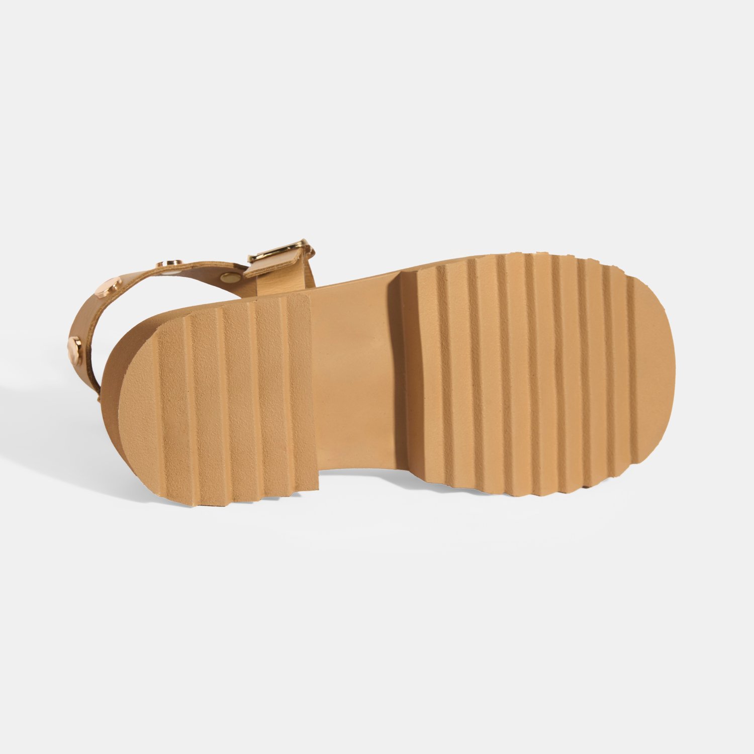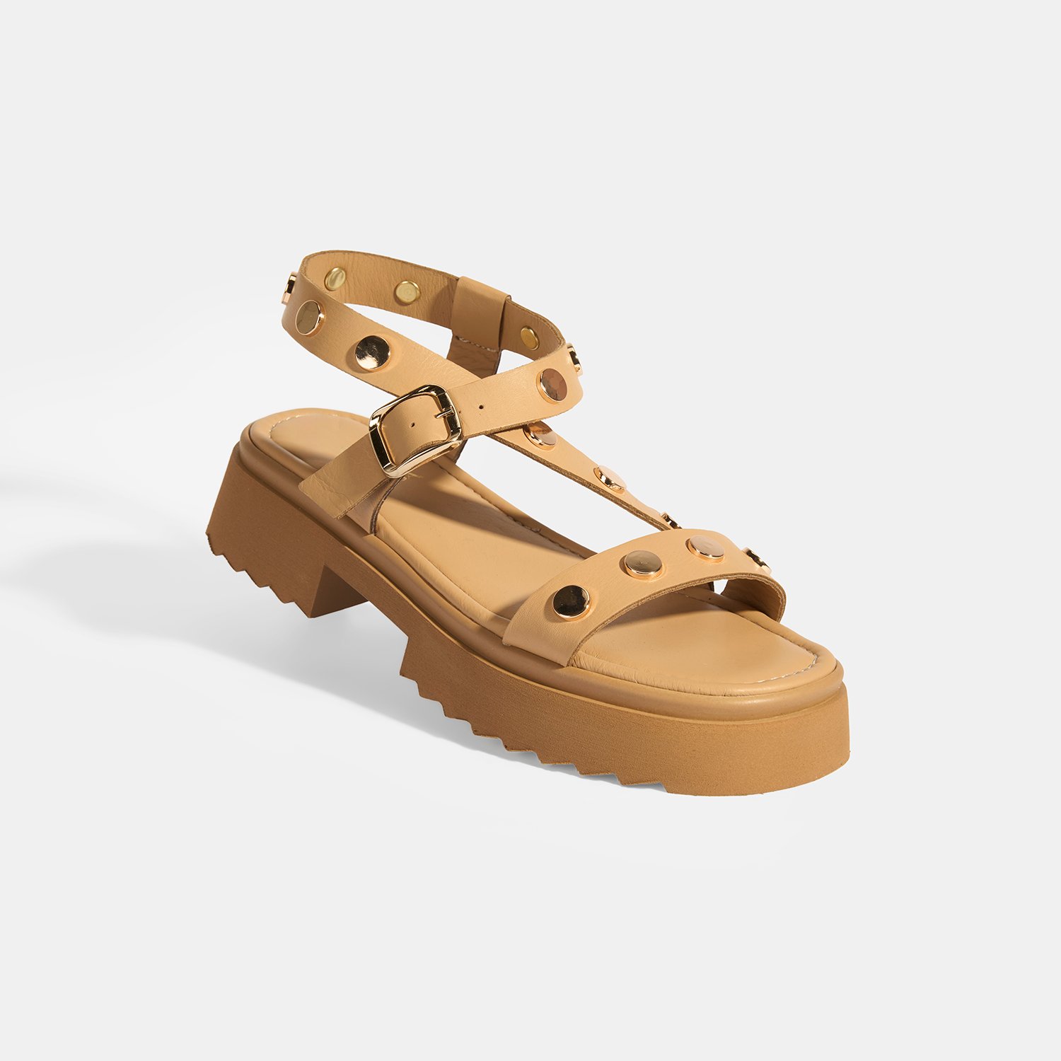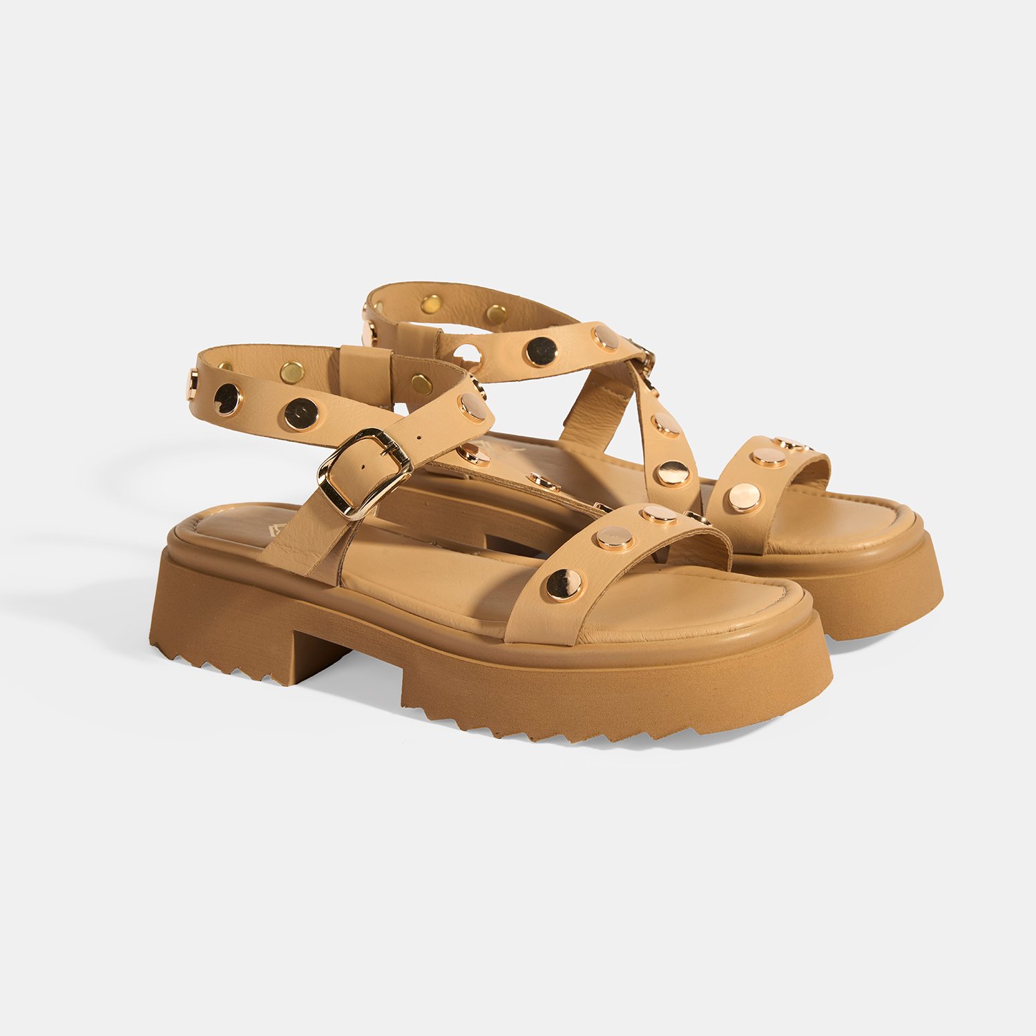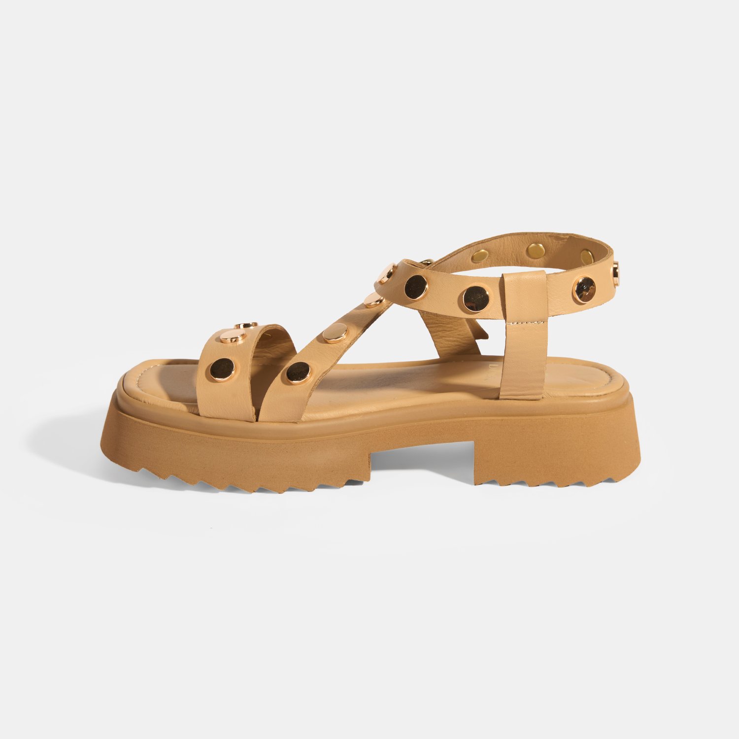 Kadın Bej Zımba Detaylı Deri Sandalet