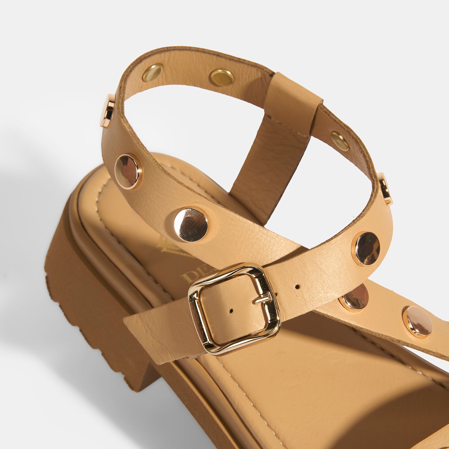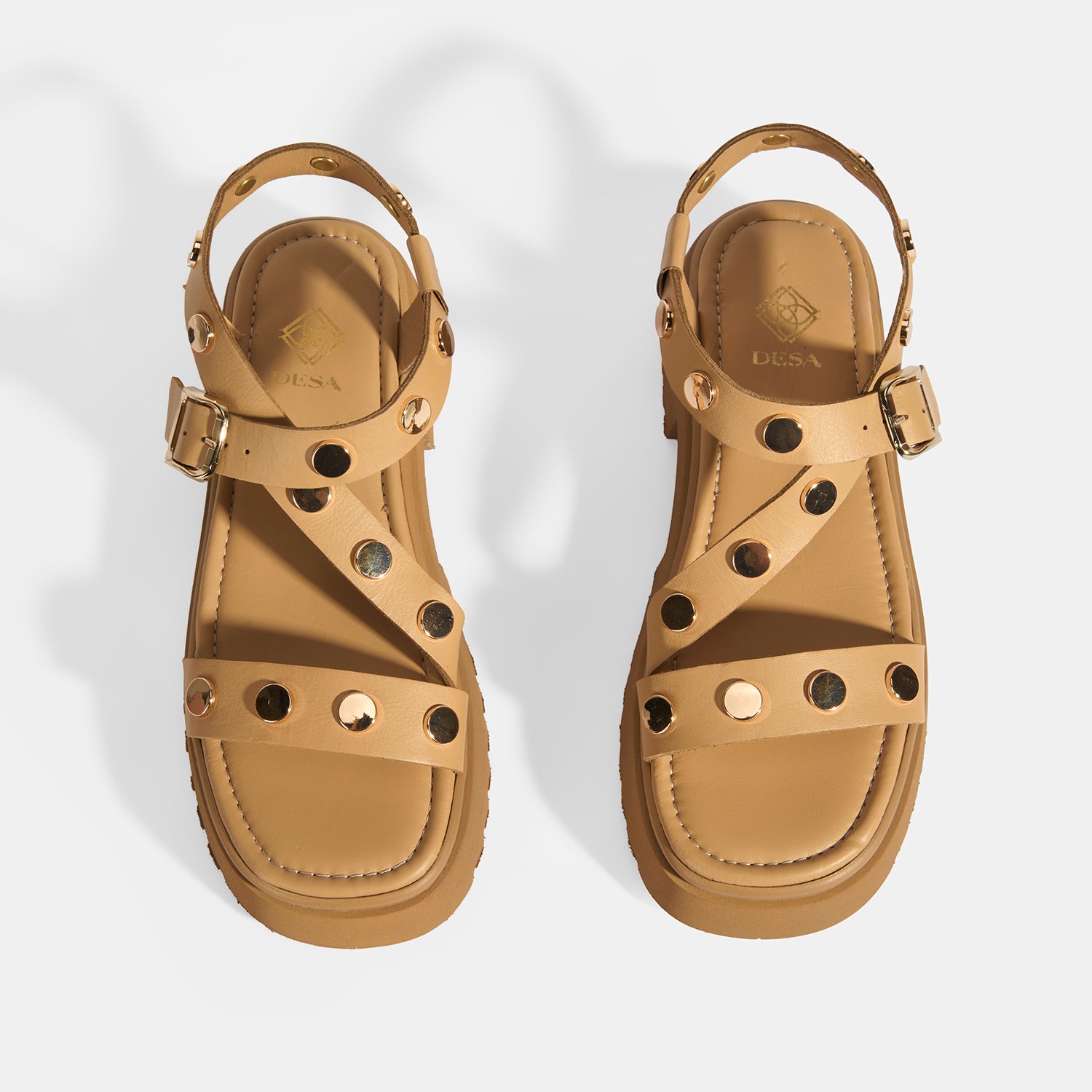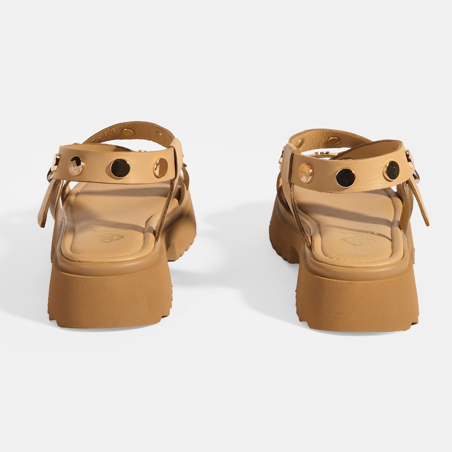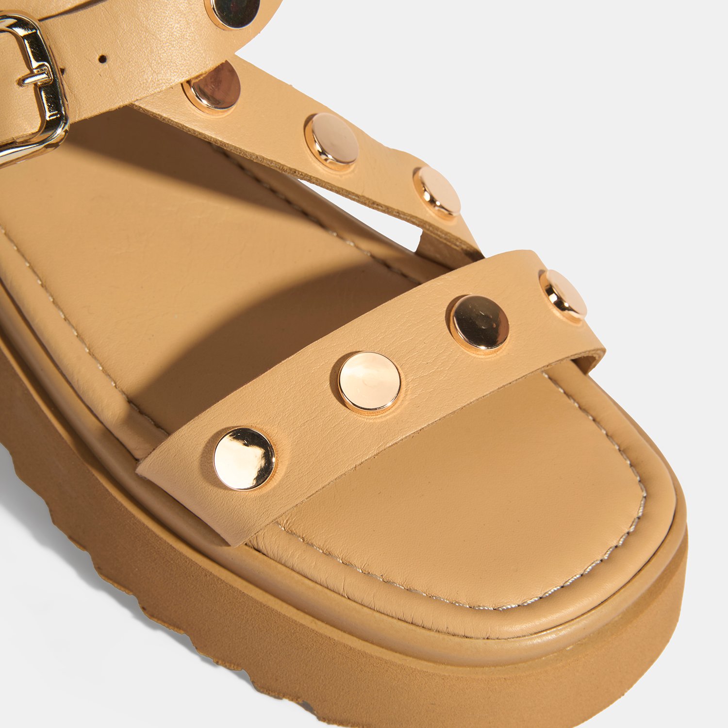 Kadın Bej Zımba Detaylı Deri Sandalet