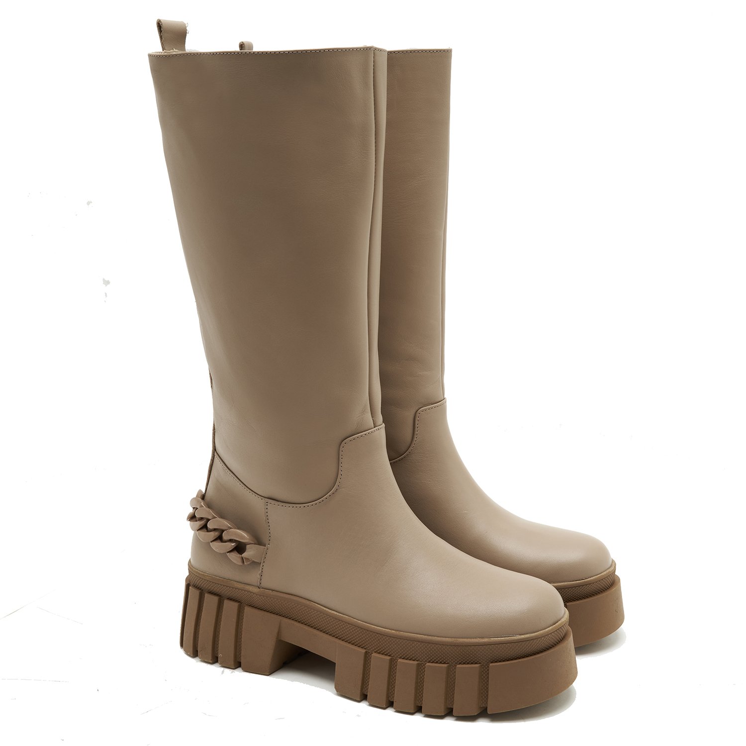 Napa deri,deri iç tabanlı ,zincir aksesuar detaylı,dayanıklı termo tabanlı kadın çizme .