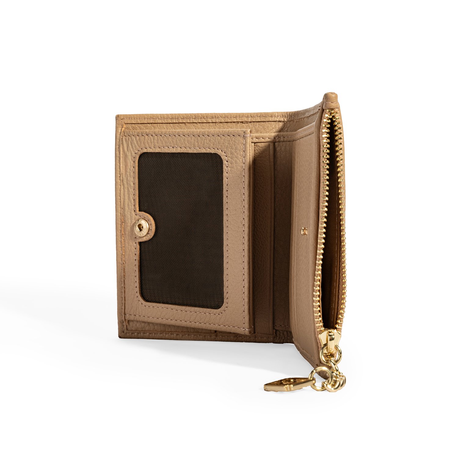Sıcak bej tonuyla dikkat çeken bu deri cüzdan, şıklığı ve kullanışlılığı bir araya getiriyor.