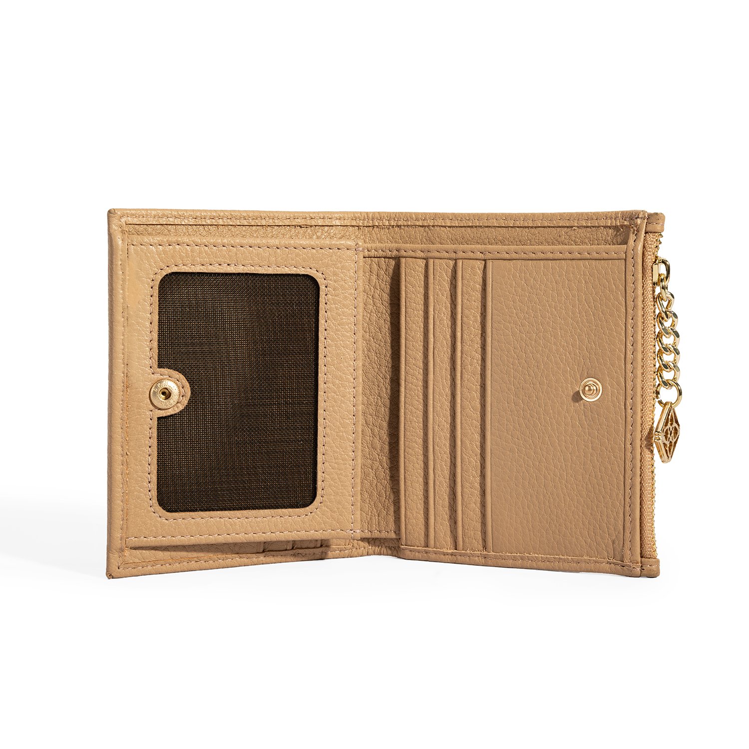 Kadın Bej Zincir Detaylı Deri Cüzdan