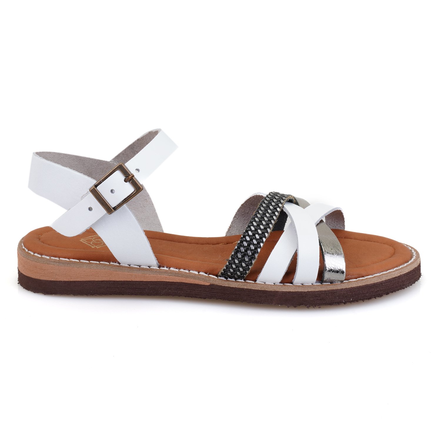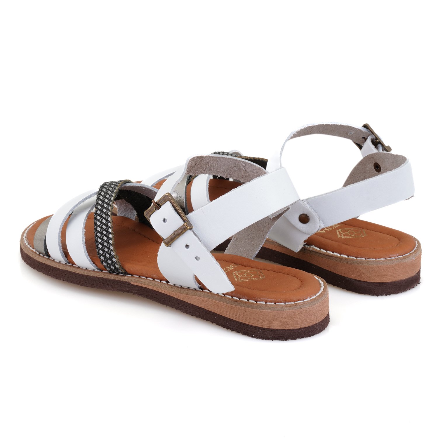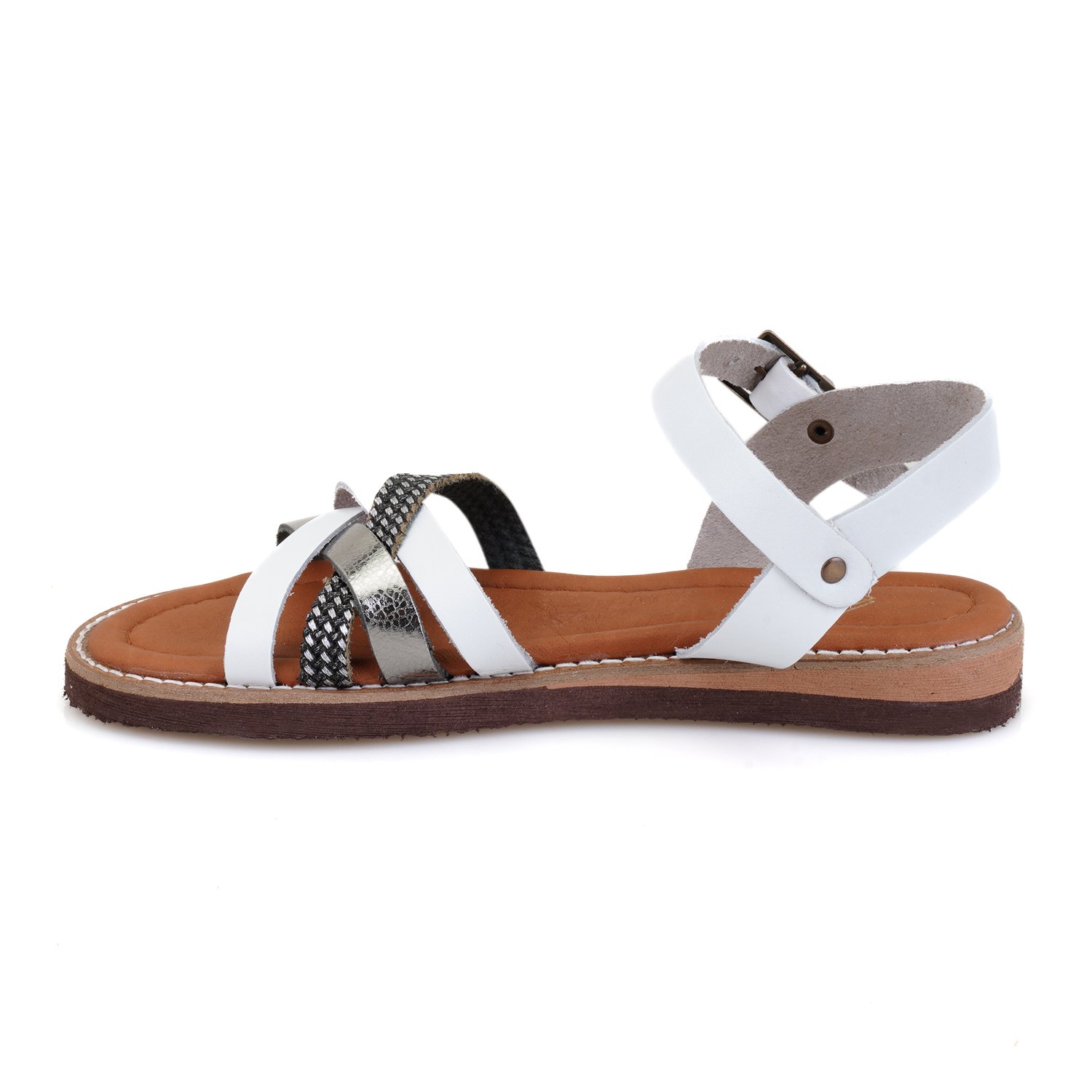 Kadın Beyaz Ayarlanabilir Tokalı Deri Sandalet