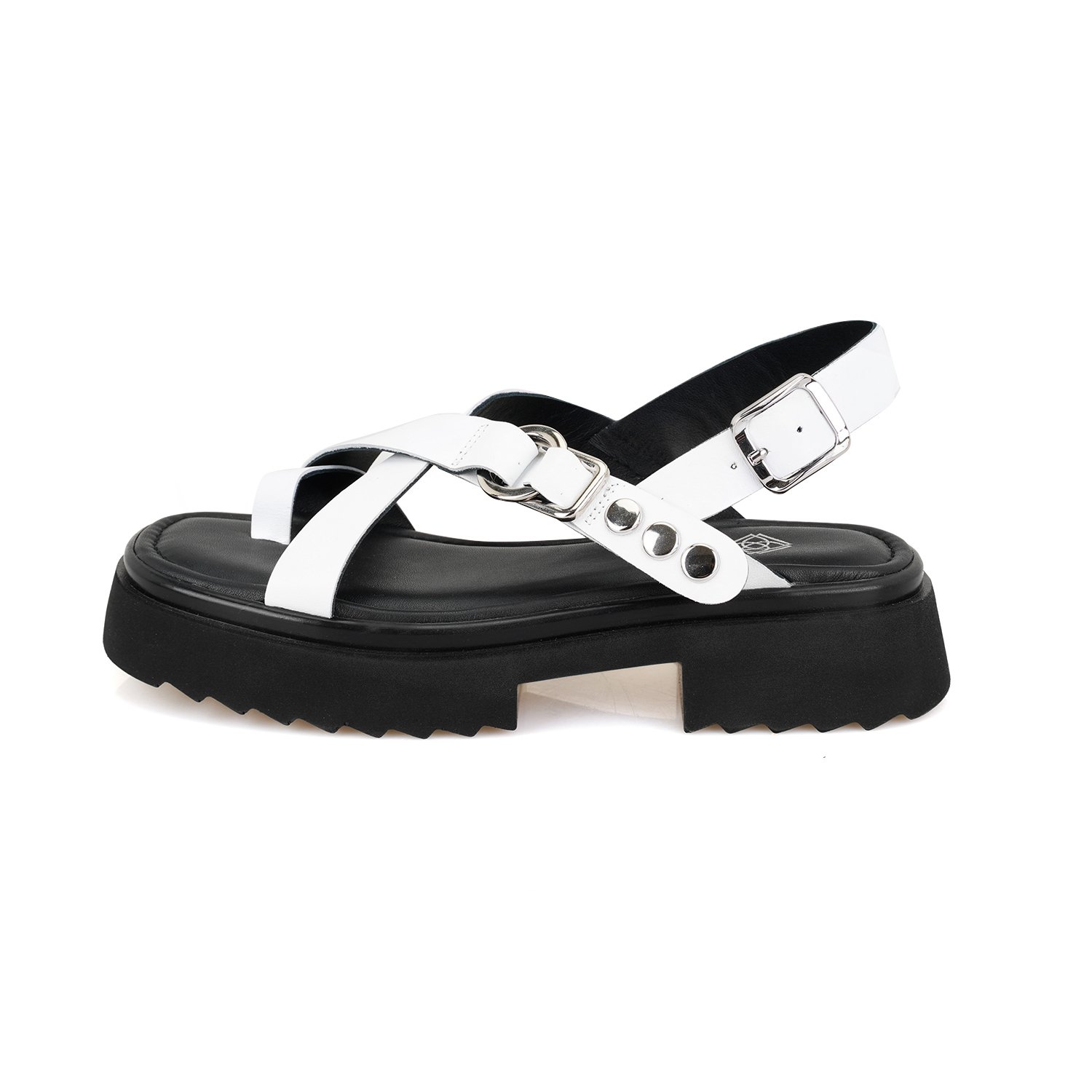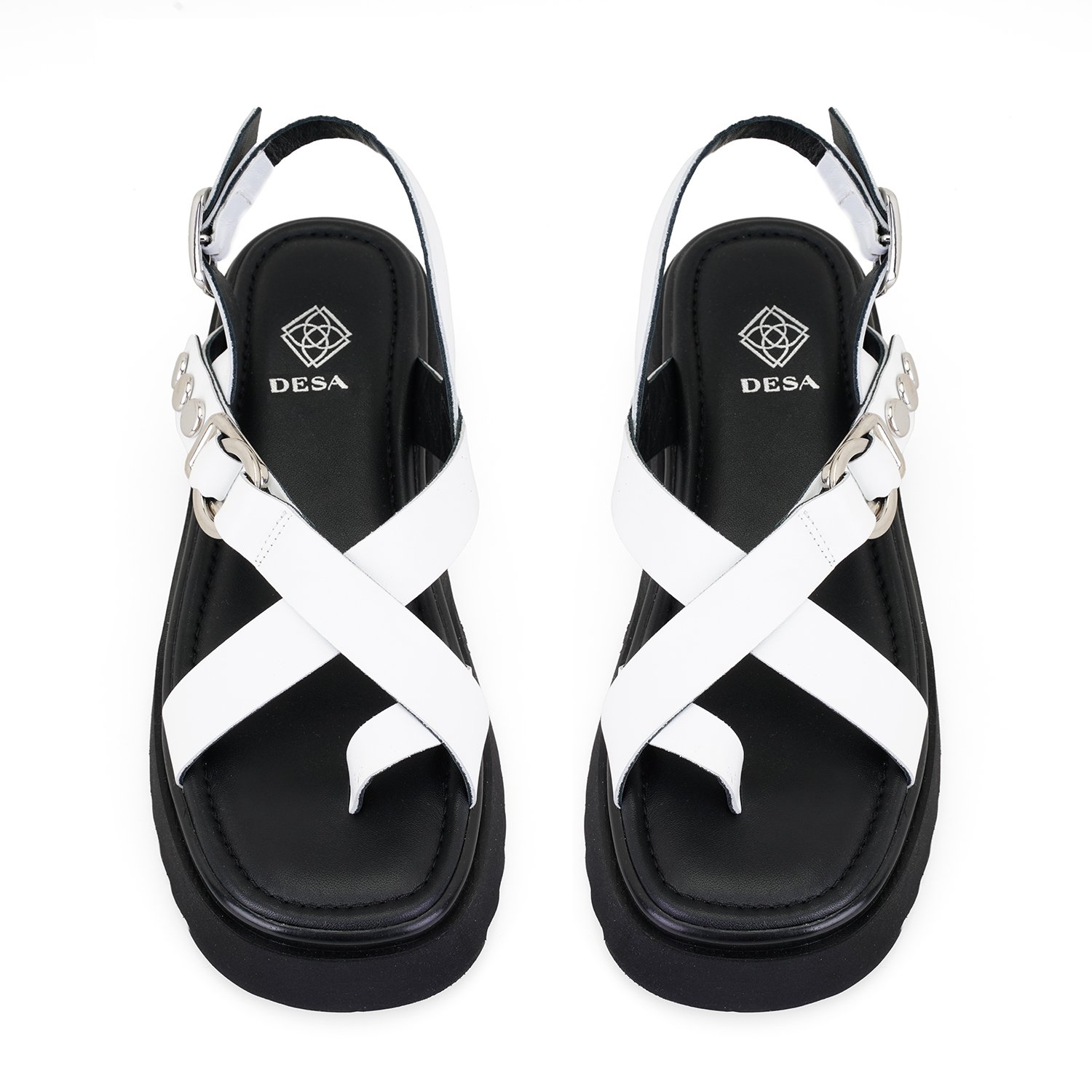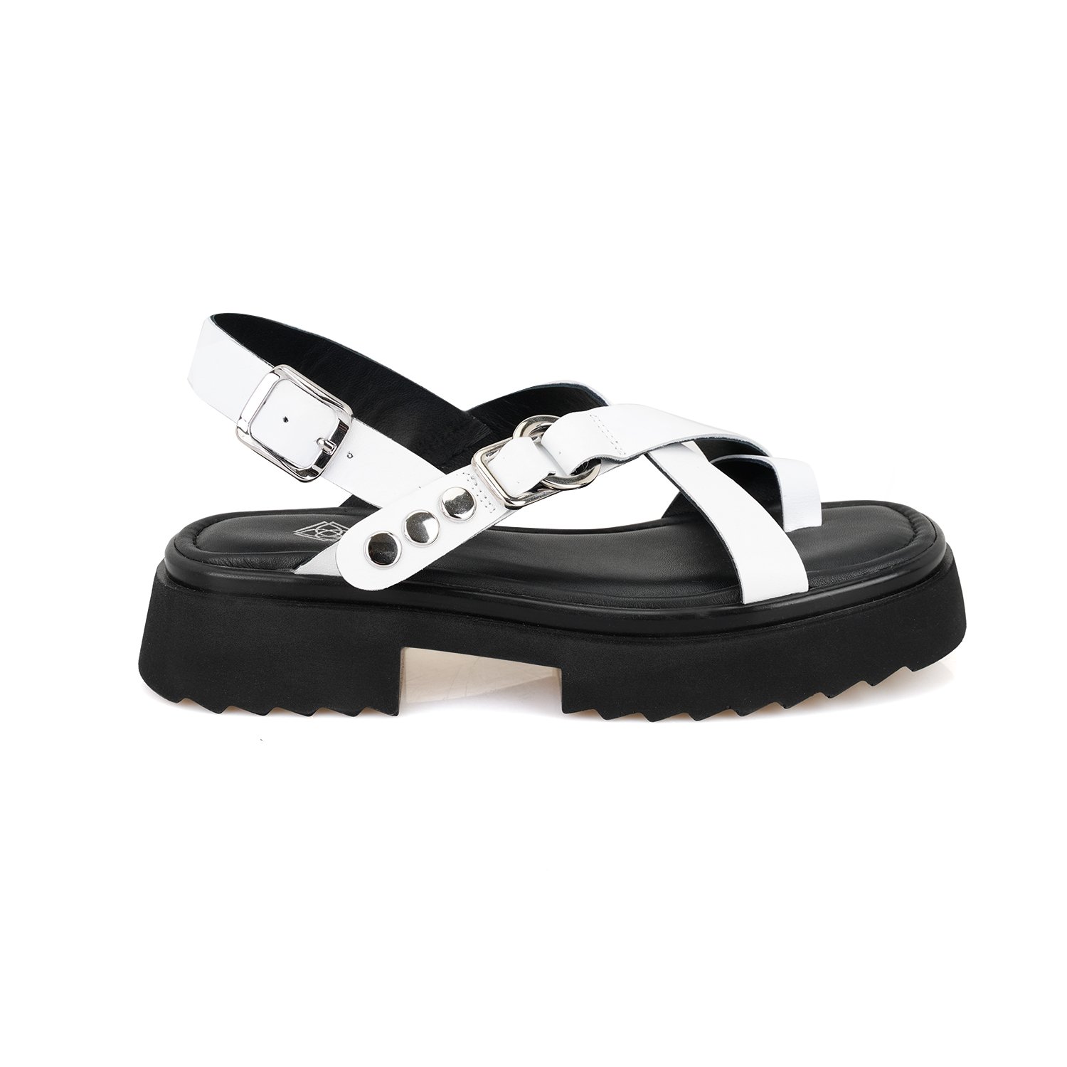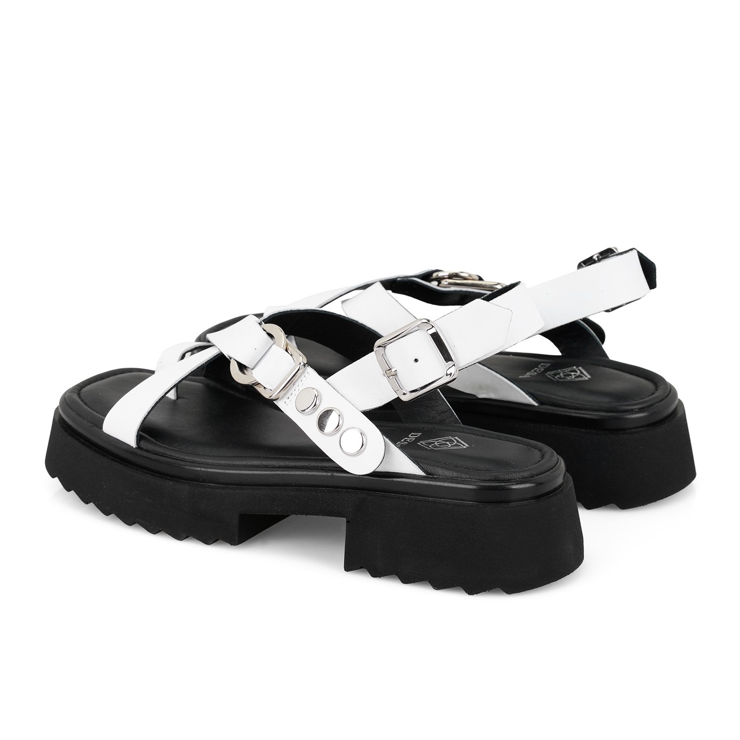 Kadın Beyaz Ayarlanabilir Tokalı Deri Sandalet