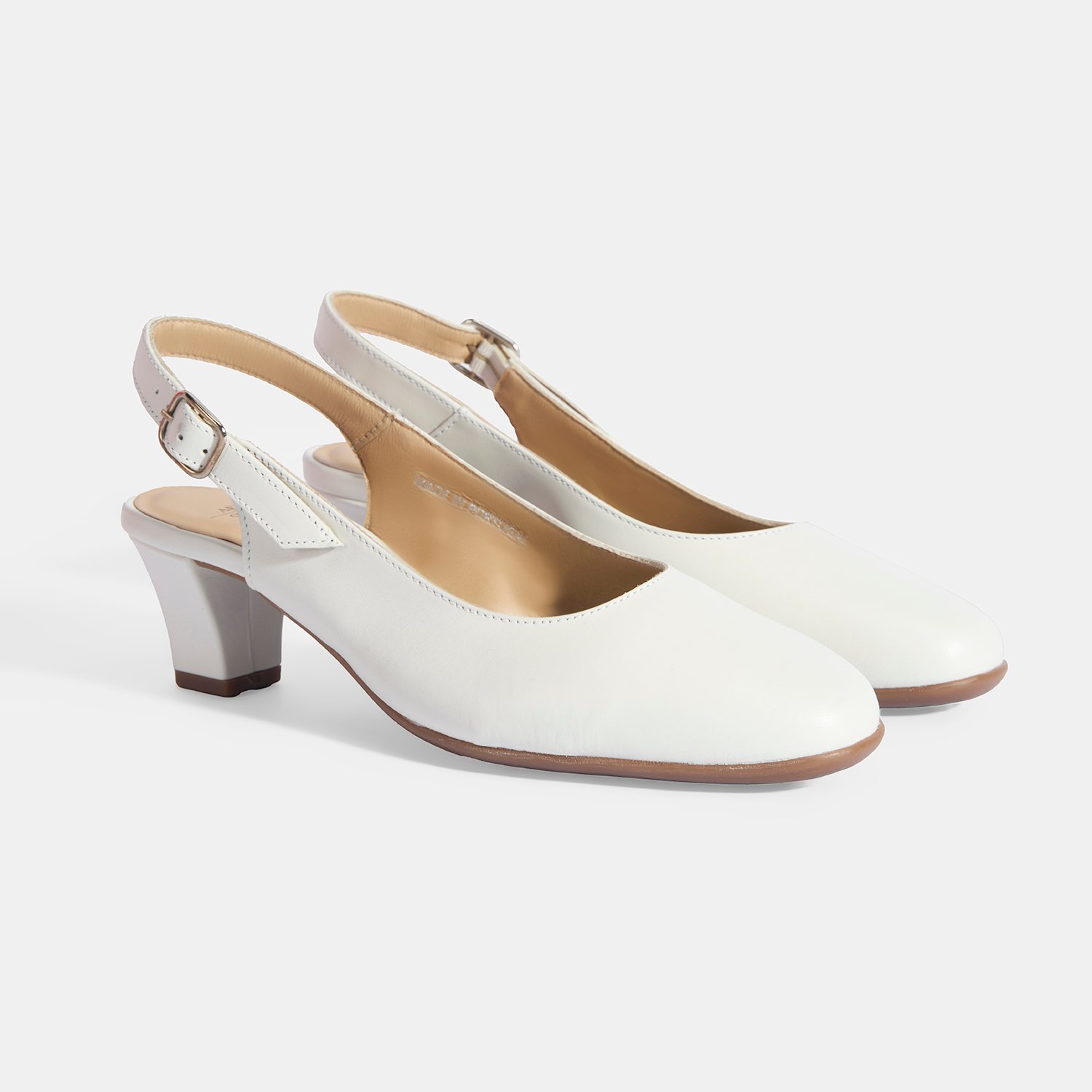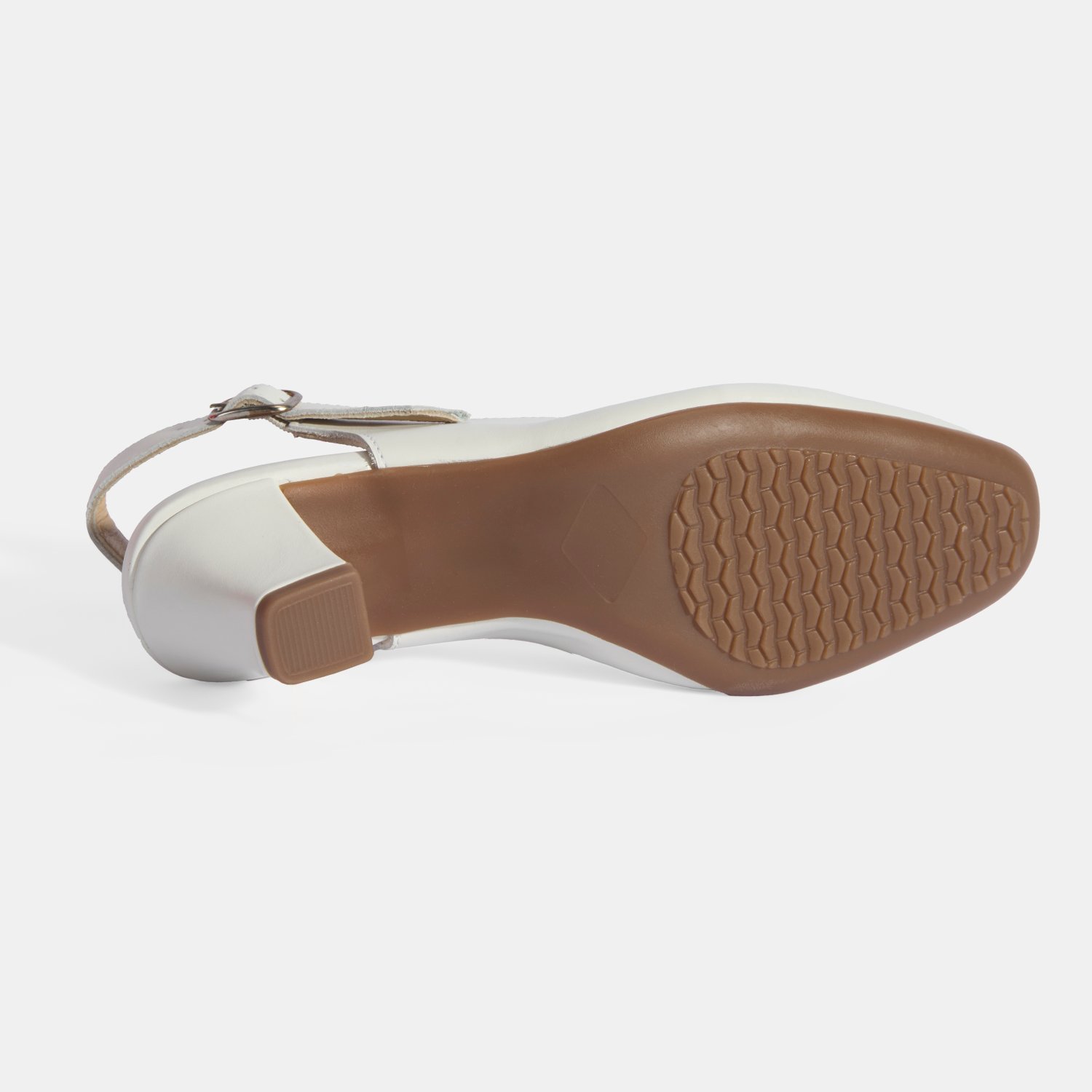 Kadın Beyaz Ayarlanabilir Tokalı DesaComfort Deri Topuklu Ayakkabı