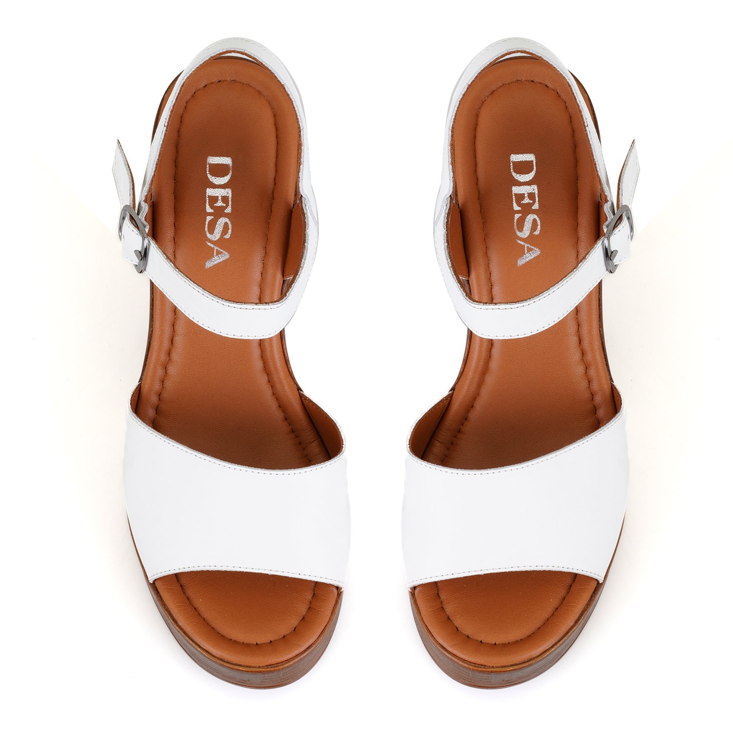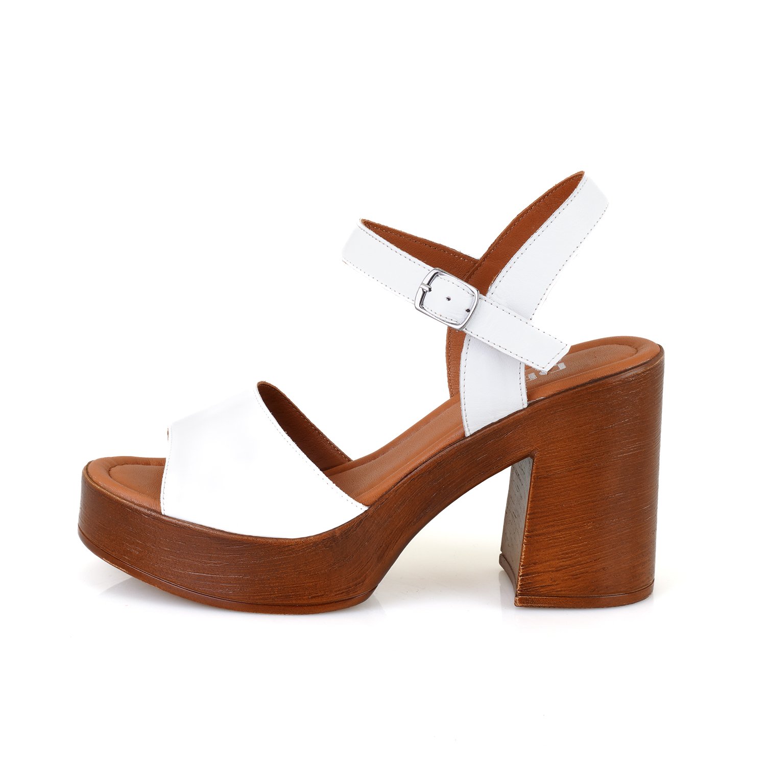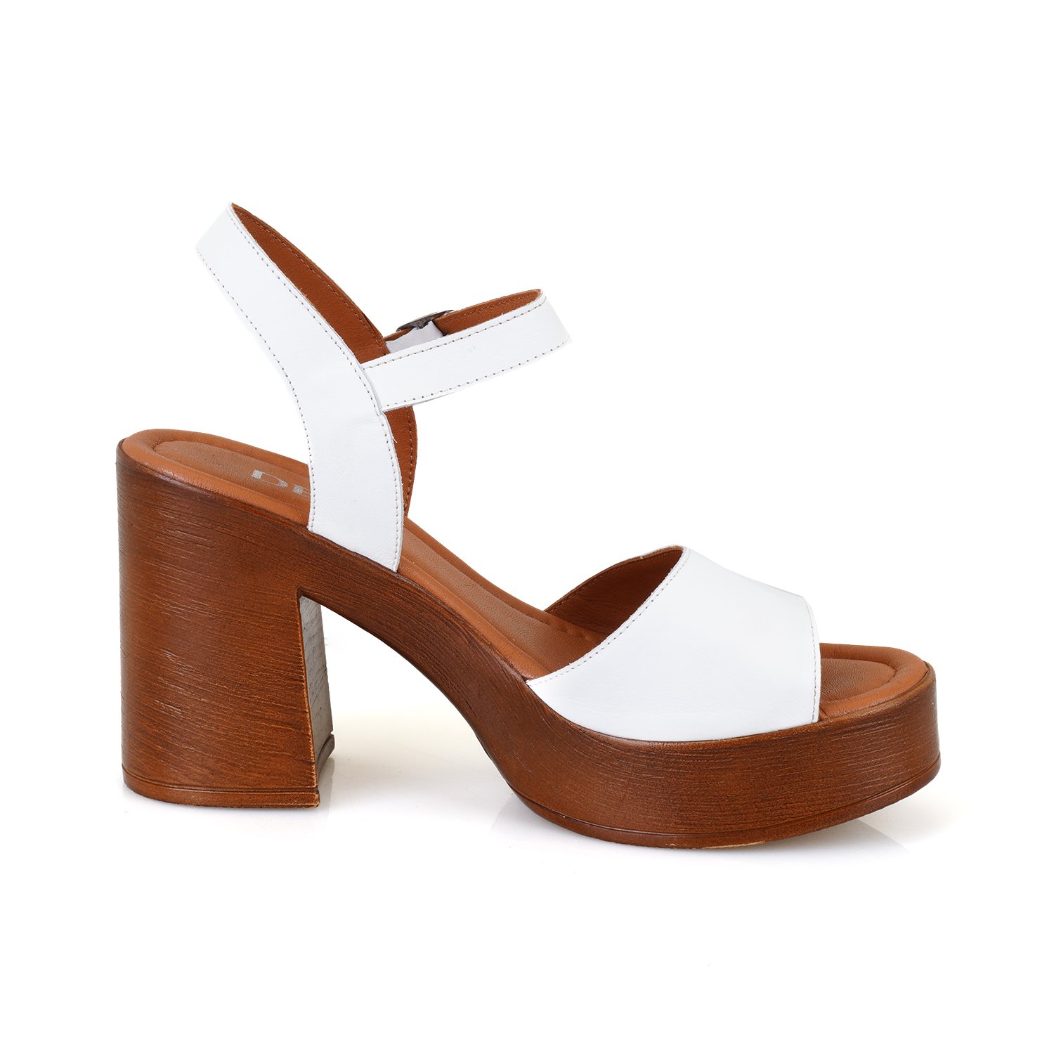 Kadın Beyaz Ayarlanabilir Tokalı Topuklu Deri Sandalet